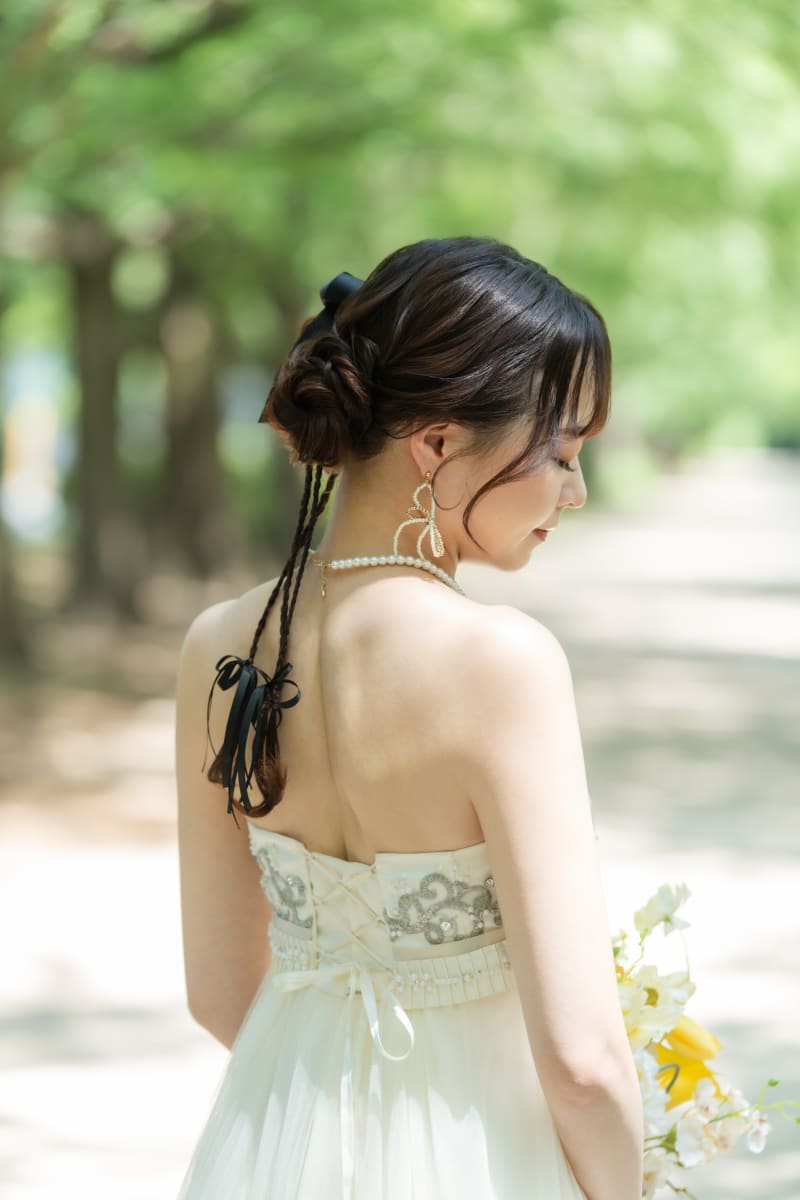 ✧༚全国指名ランキング2位˚✧₊⁎ カジュアルでおしゃれなヘアや柔らかい感じのメイクが得意です♡ ラフなヘアにたっぷりの後毛も◎ ツヤ感のある多幸感ヘアメイクや可愛いけど甘すぎないスタイル ちょっと個性が出るようなヘアも似合うようにご提案します:) リボンや水引を使ったヘア大好きです、こだわってつけるので是非お任せください🎗️ お二人のお衣装からヘアメイク、アクセサリーまで是非一緒にコーディネート考えさせてください☺︎ お話するのが好きなのでたくさんお話して特別でキラキラした1日にしましょう〜✧₊