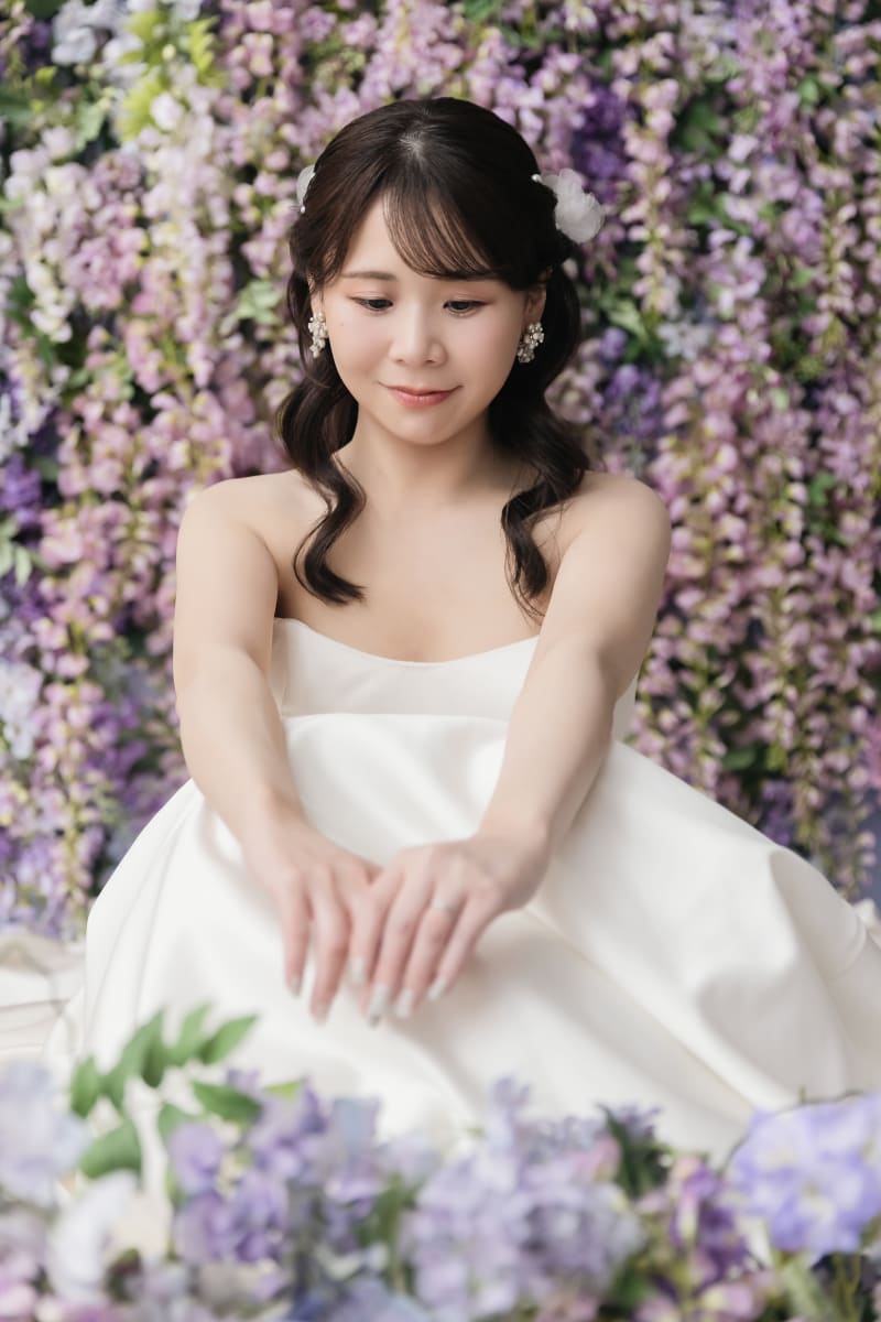 ヘアメイクの道越です ࣪₊♡ 多幸感ある可愛いスタイルや大人っぽい綺麗なスタイルが得意です🤍 好みの雰囲気やこだわりなどなんでもご相談してください*。゚ お二人の思い出に残る撮影になるように精一杯お手伝いさせていただきます☺︎