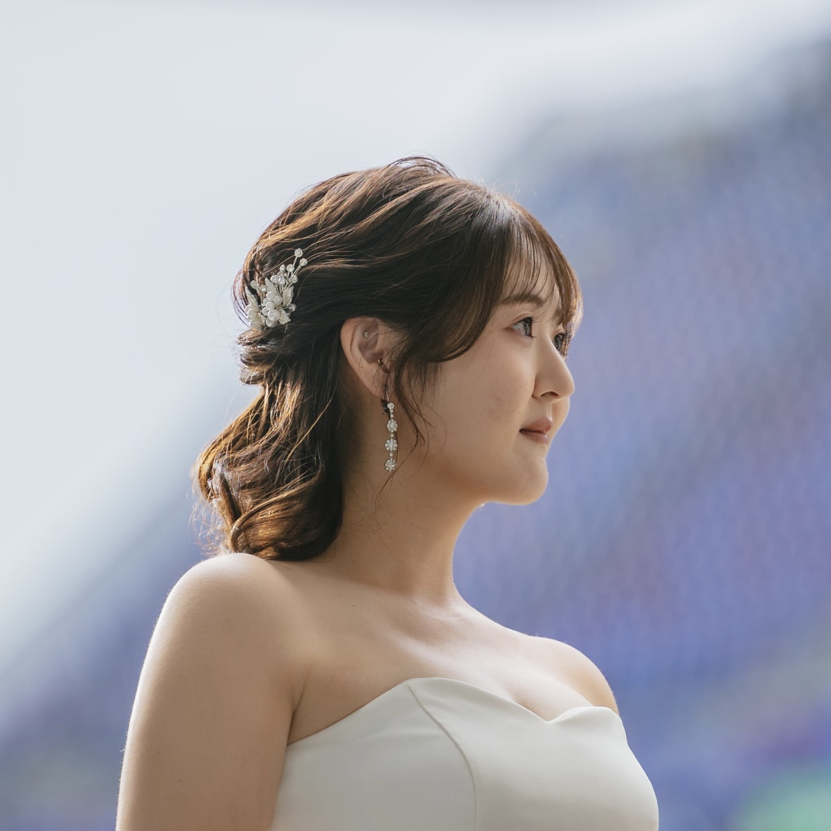 大人かわいいナチュラル系、 上品なツヤ感のあるハイライト好きです! 新婦様の持つ可愛らしさを活かしながら、 さらに可愛く仕上げていきます🤍 素敵な1日のお手伝いさせてください!