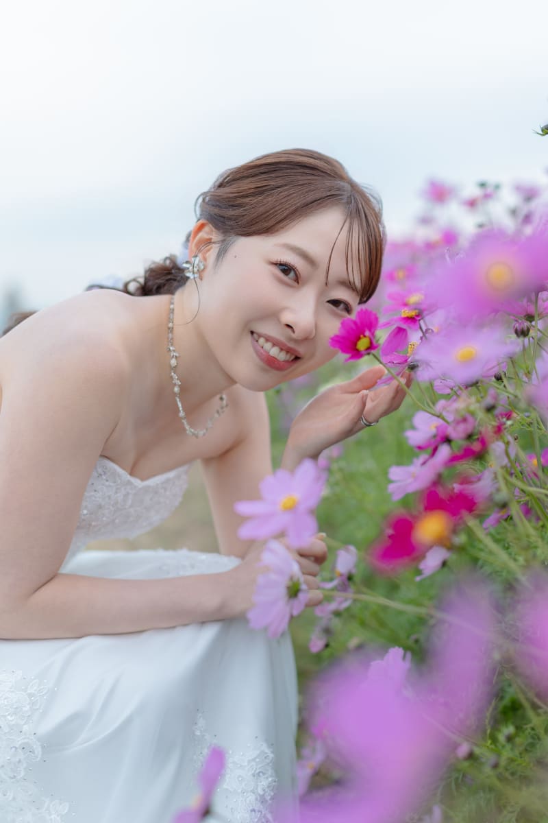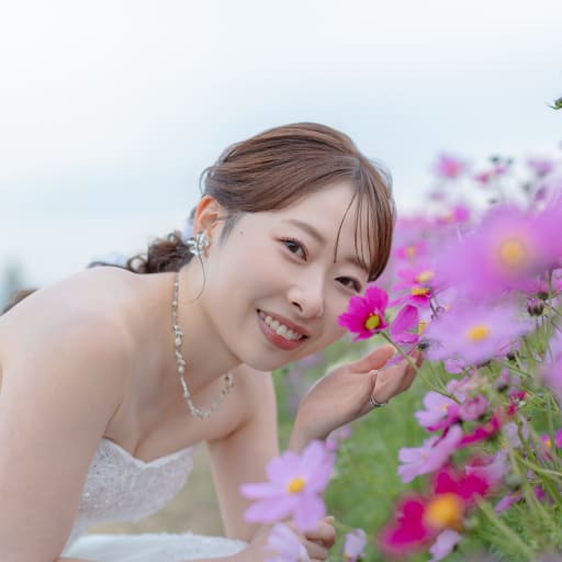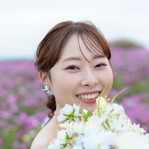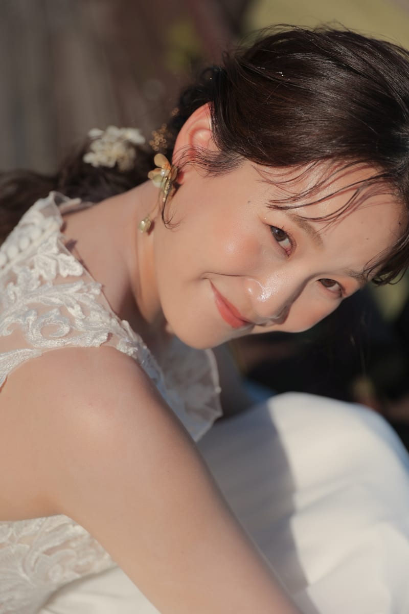 ゆるふわヘアアレンジとツヤっとした多幸感メイク大好きです໒꒱· ゚ 花嫁様の「かわいい」「好き」を大切にしながら、その人らしさがふんわり伝わるスタイルをご提案します♩ 当日は緊張もほぐれるよう全力で盛り上げておふたりのサポートをさせていただきますので、一緒に撮影楽しみましょう!^^