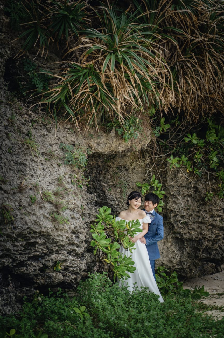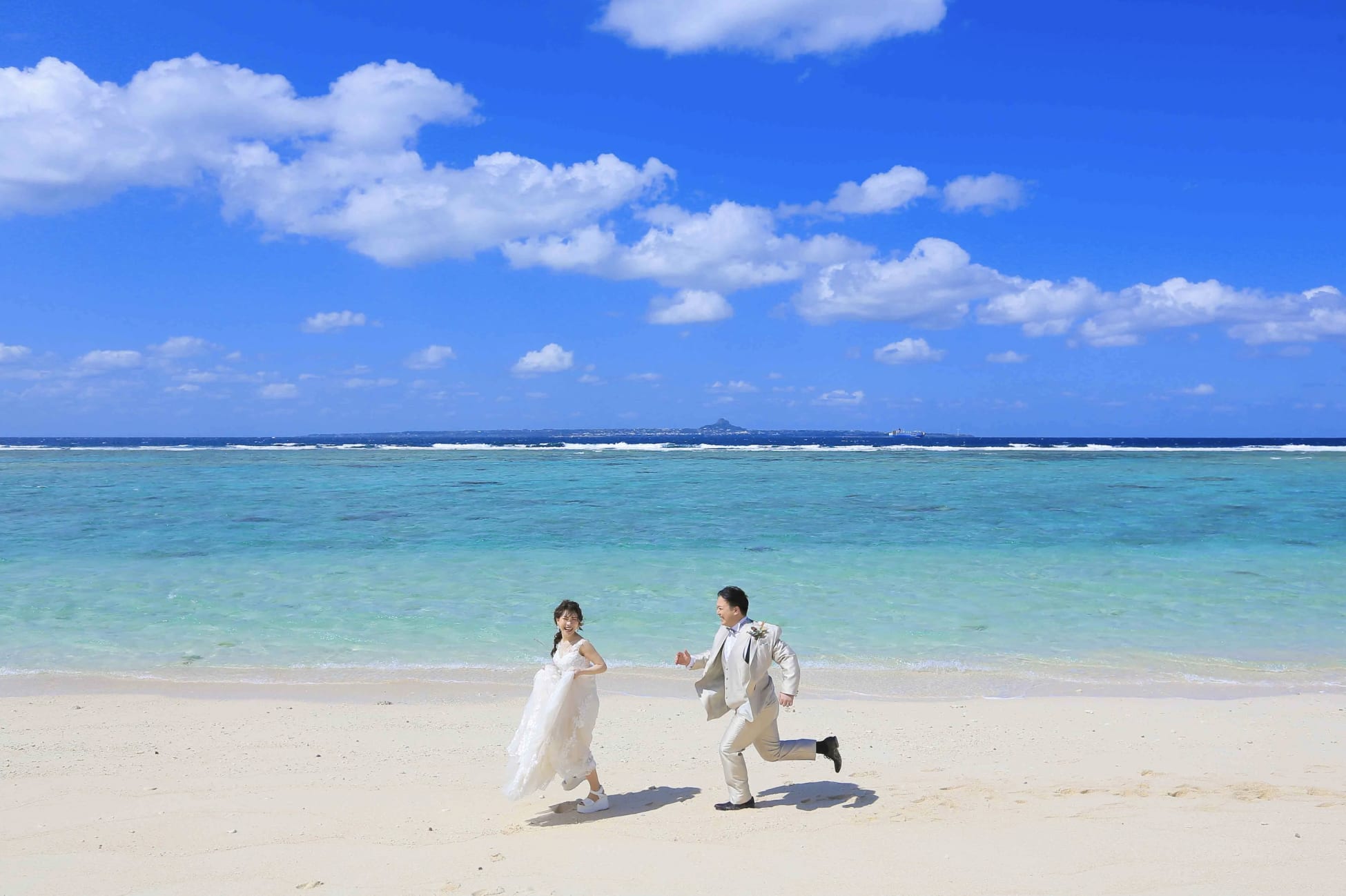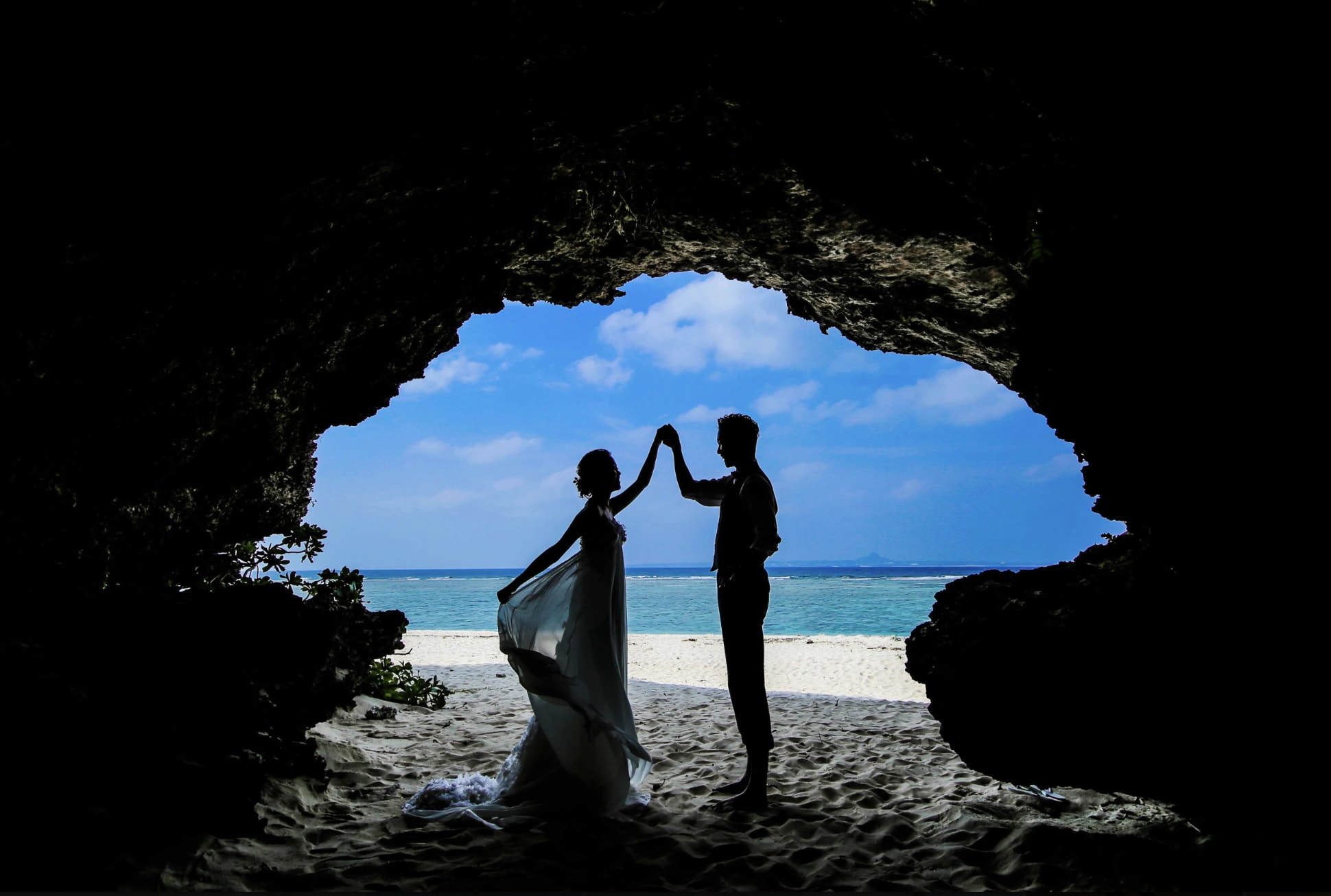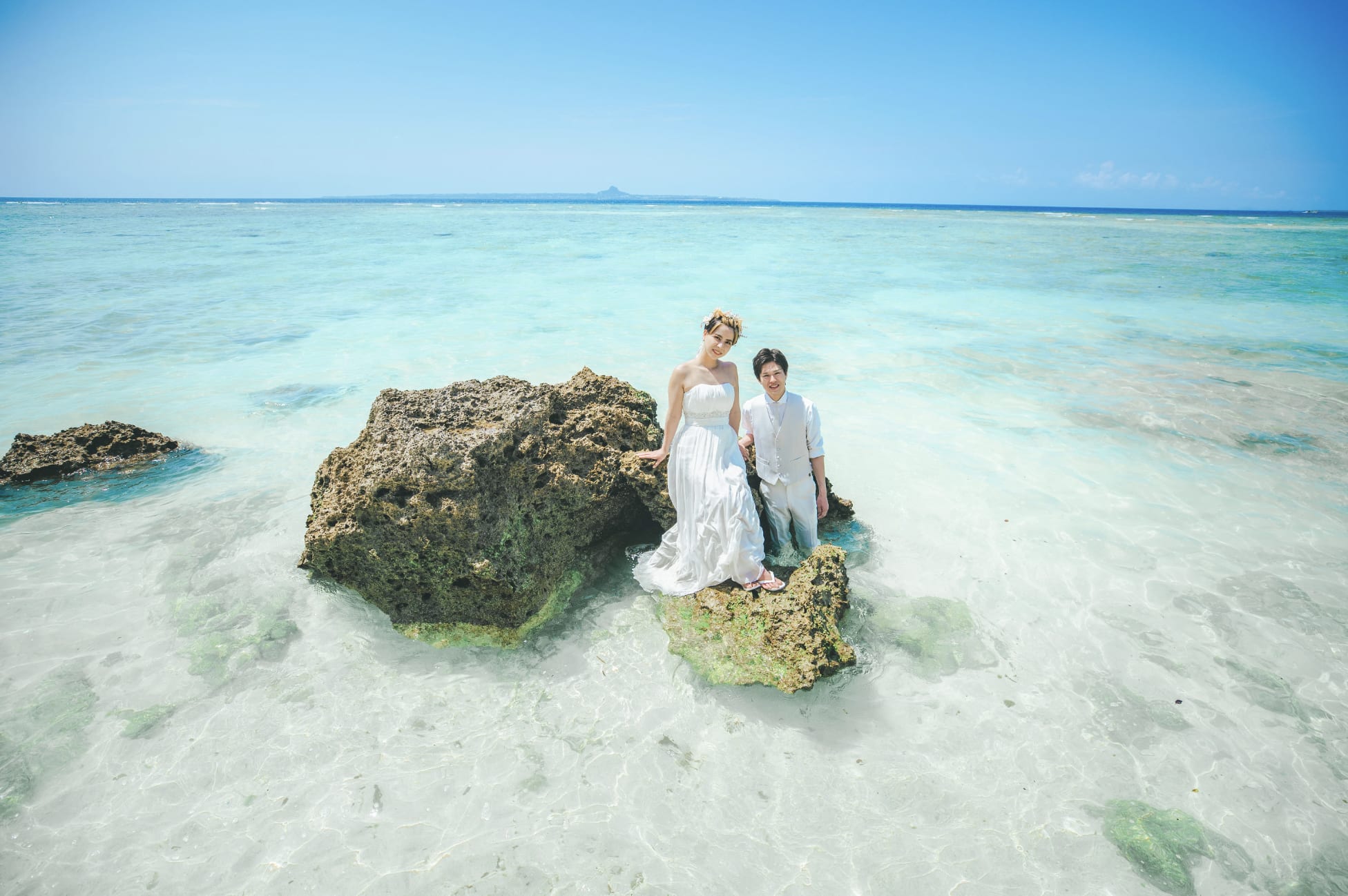 古宇利島是以鮮豔海藍著稱的離島,能以著名的大橋與淺灘海灘作為背景,拍攝充滿張力的婚紗照。海水的漸層藍與廣闊天空共同營造出戲劇性的畫面。