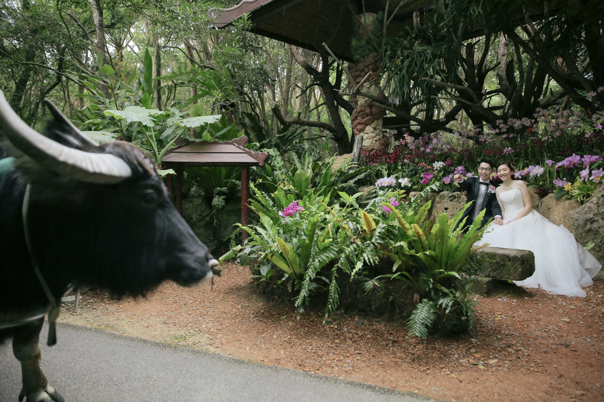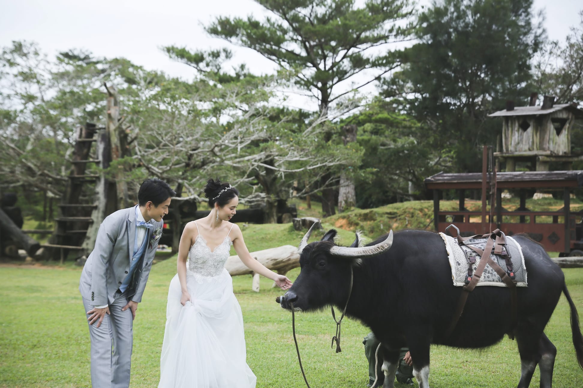 古宇利島是以鮮豔海藍著稱的離島,能以著名的大橋與淺灘海灘作為背景,拍攝充滿張力的婚紗照。海水的漸層藍與廣闊天空共同營造出戲劇性的畫面。