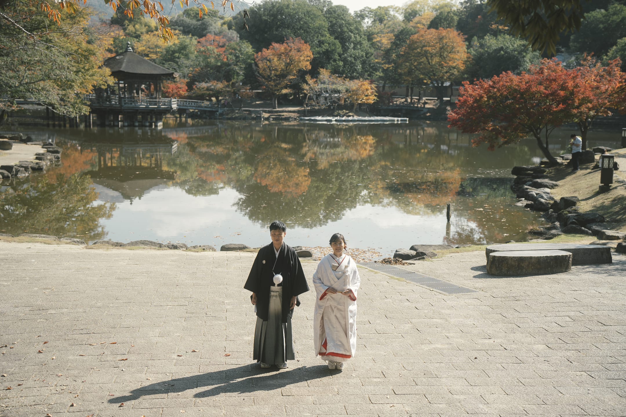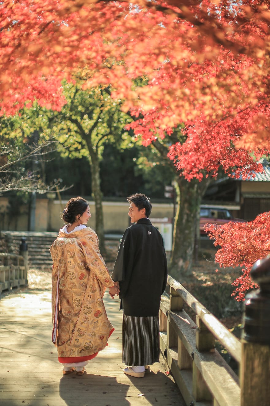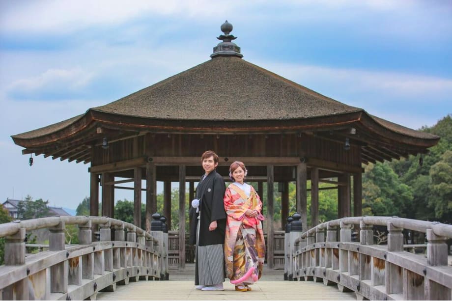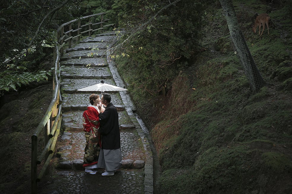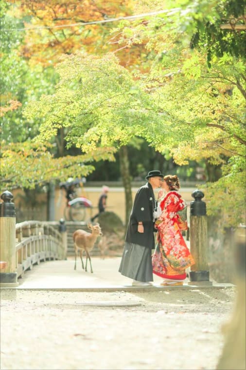 奈良公園以廣大綠地與自由漫步的鹿聞名。自然光與歷史氣息交融,是自然、富動感的預拍首選。與鹿互動的場景也能留下獨特回憶。
