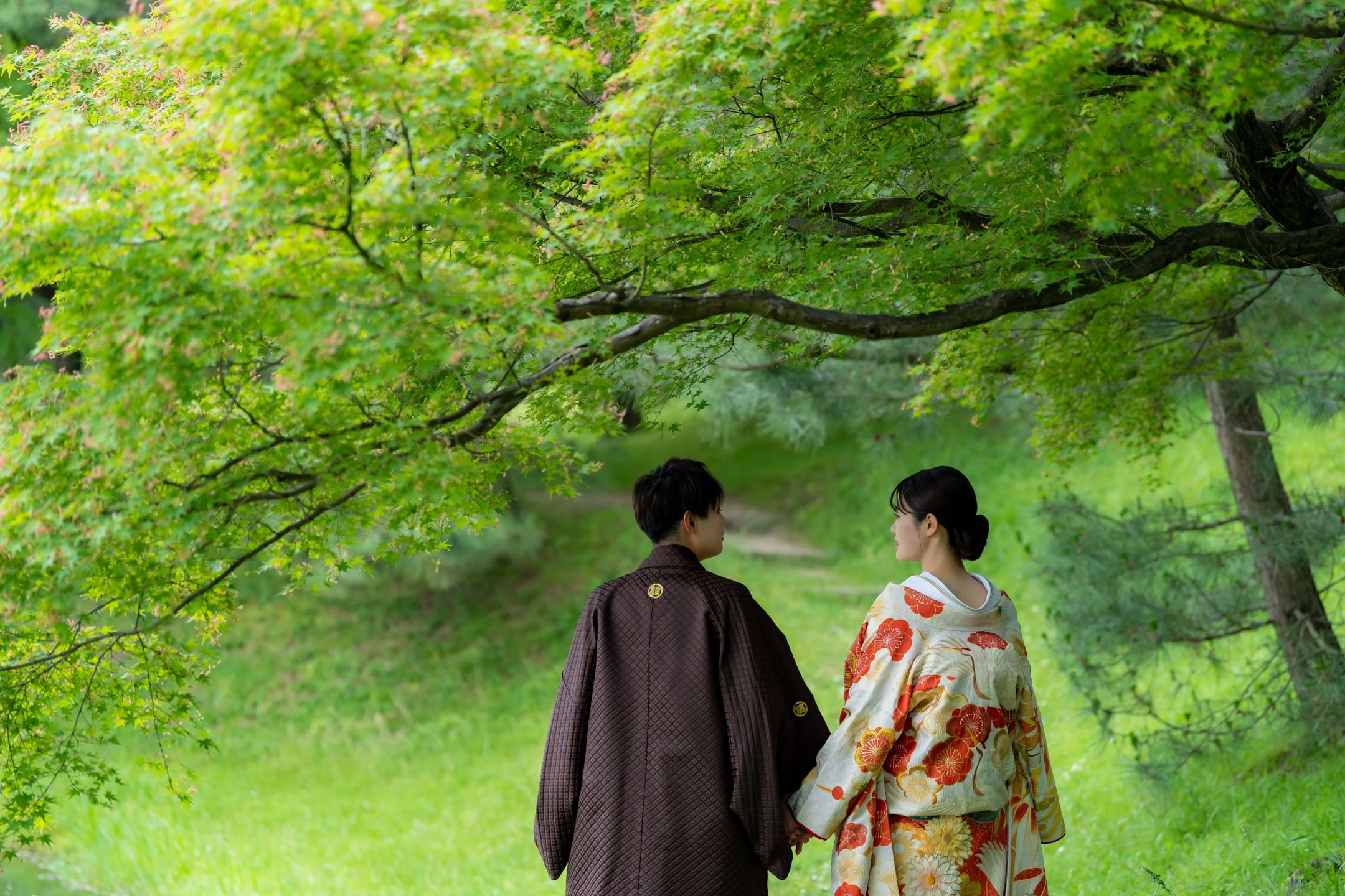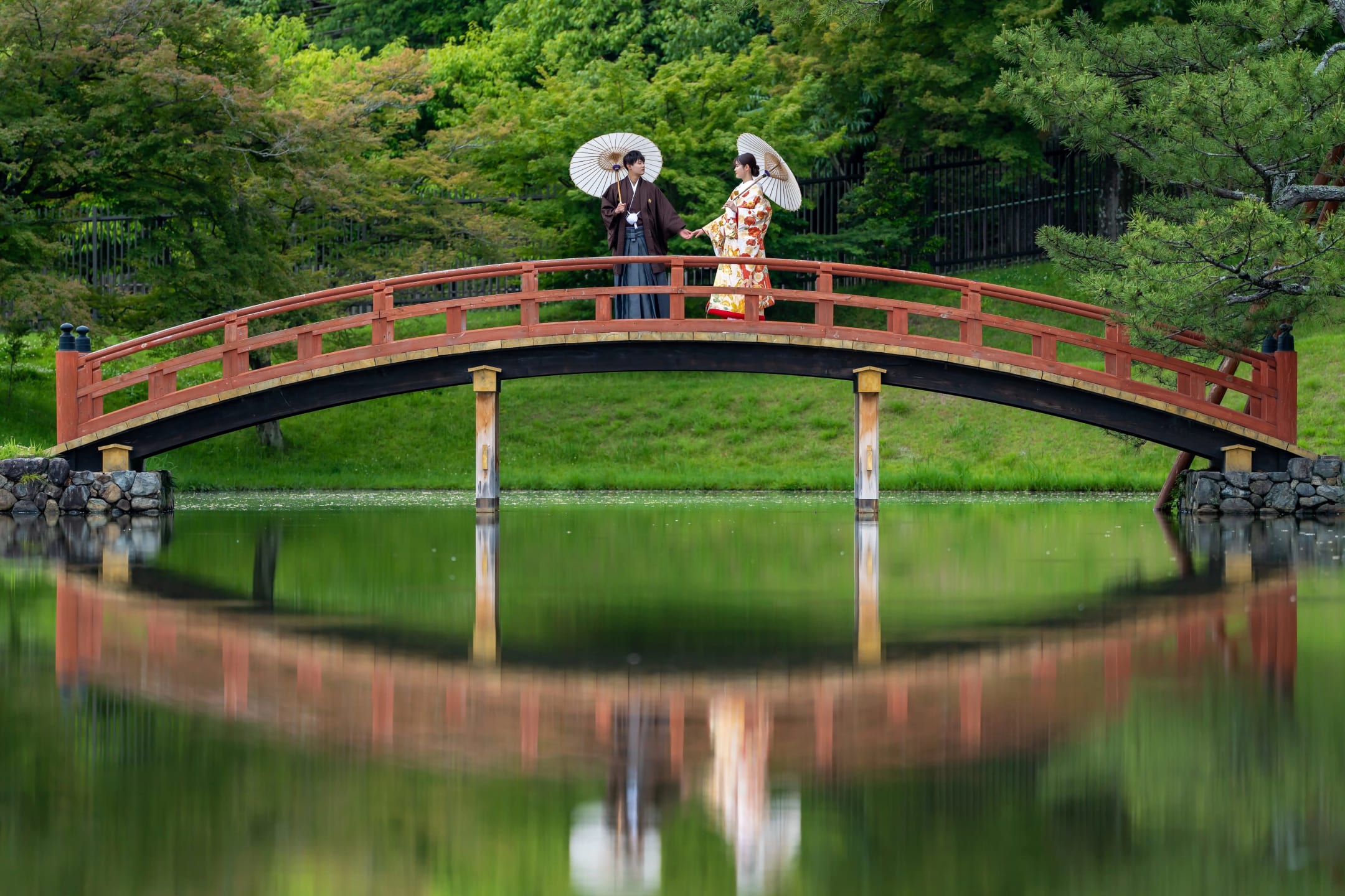 大乘院庭園是傳統日本庭園的靜謐場所。苔地、樹木與水邊景觀能完美襯托和服預拍,可在柔和光線下呈現細膩照片。
