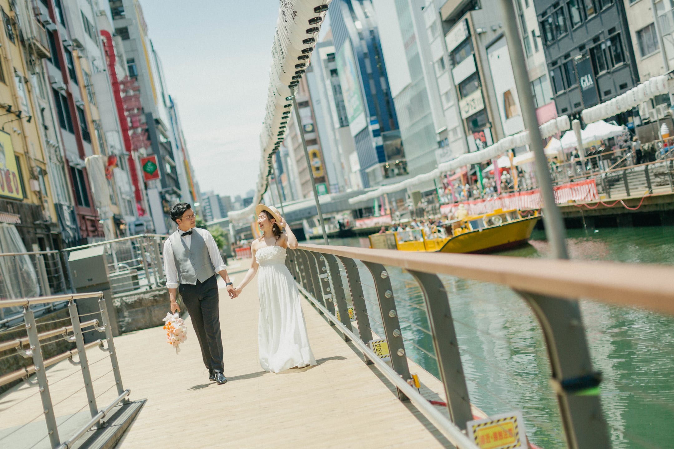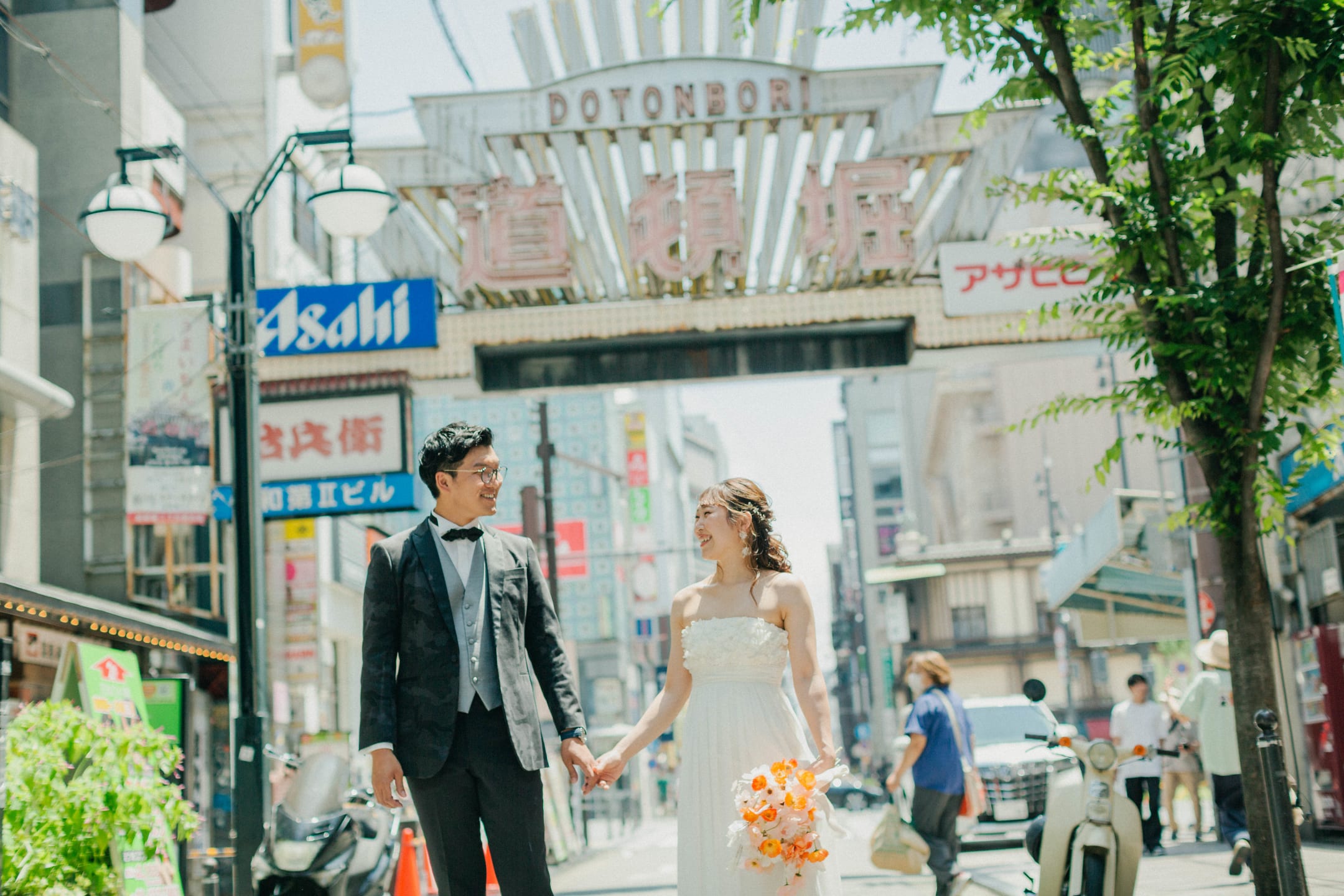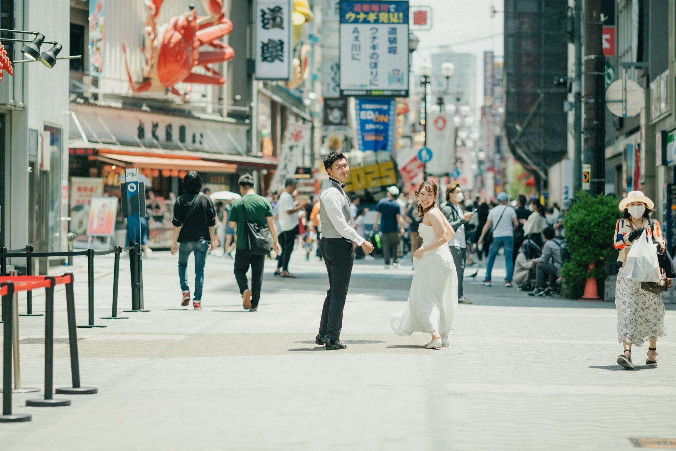 道頓堀以霓虹燈與色彩鮮明的廣告牌聞名,是大阪最具代表性的繁華街區。適合夜景拍攝,可展現熱鬧都市感,打造動感又吸睛的婚紗照。