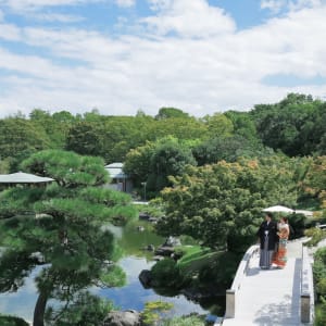 大仙日本庭園擁有以四季自然交織而成的典雅庭園景觀,其池泉迴遊式造景、苔癬與楓葉等植栽營造出沉穩氣質。不僅適合和服拍攝,穿著西式禮服也能留下經典而優雅的婚紗照。