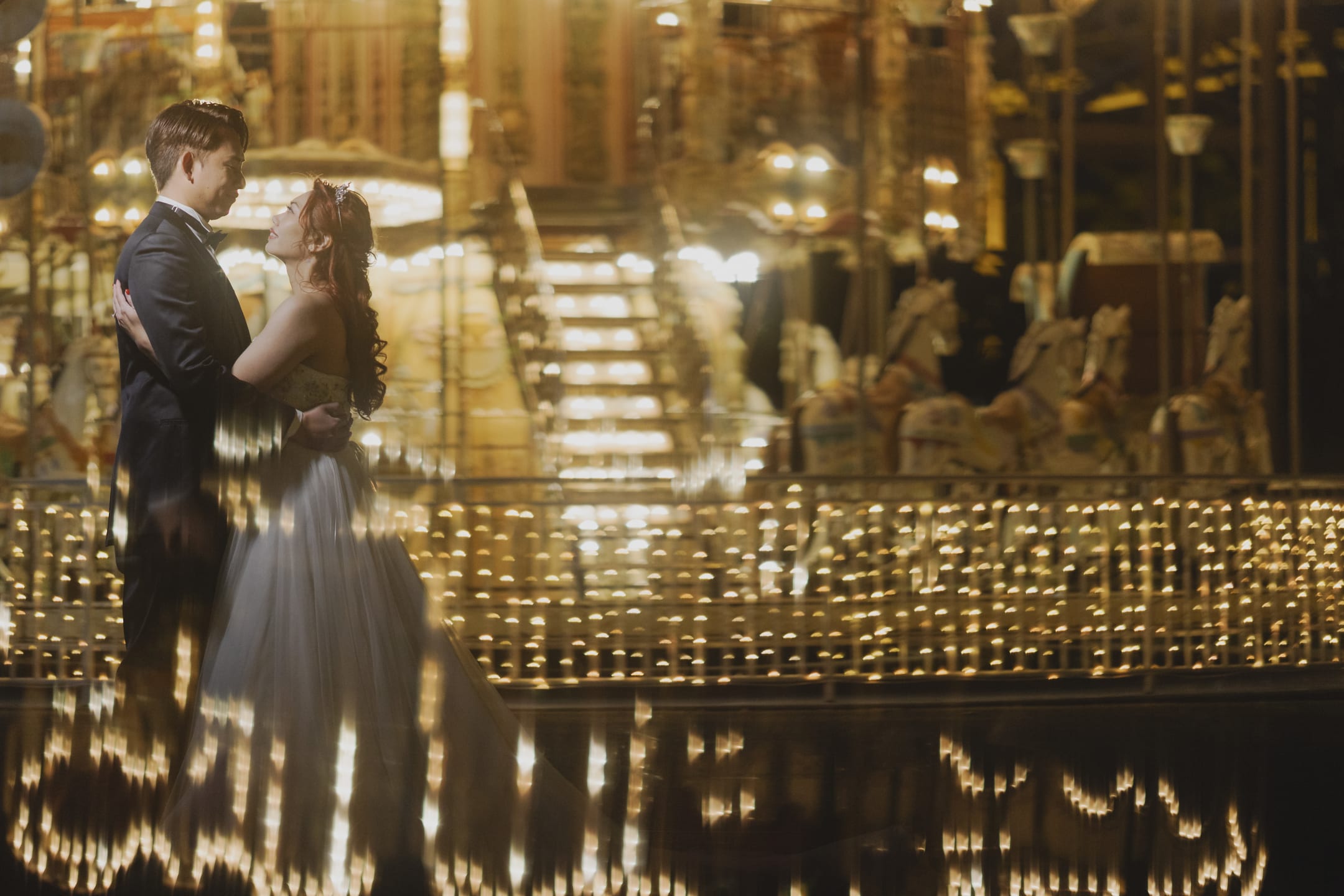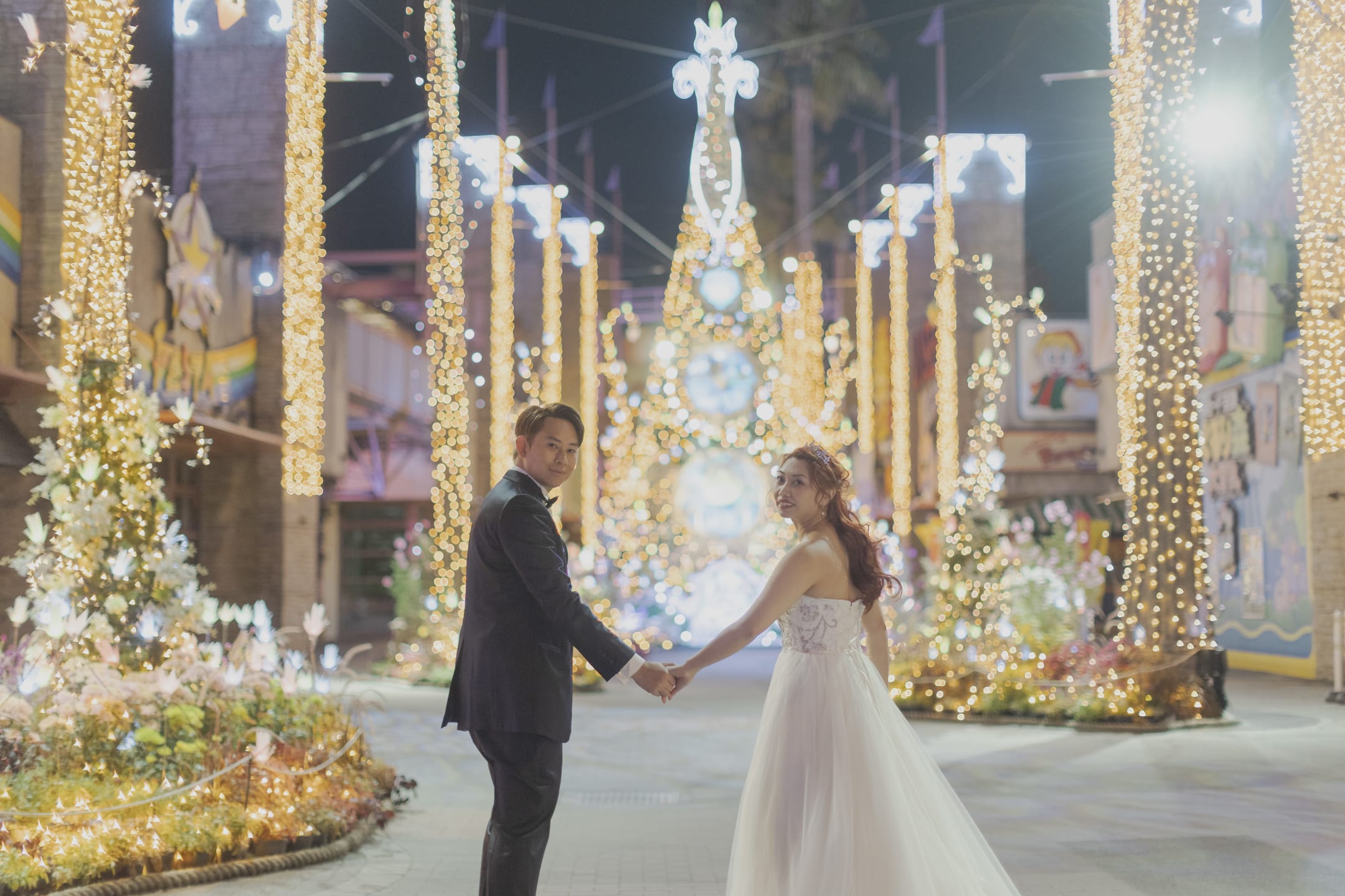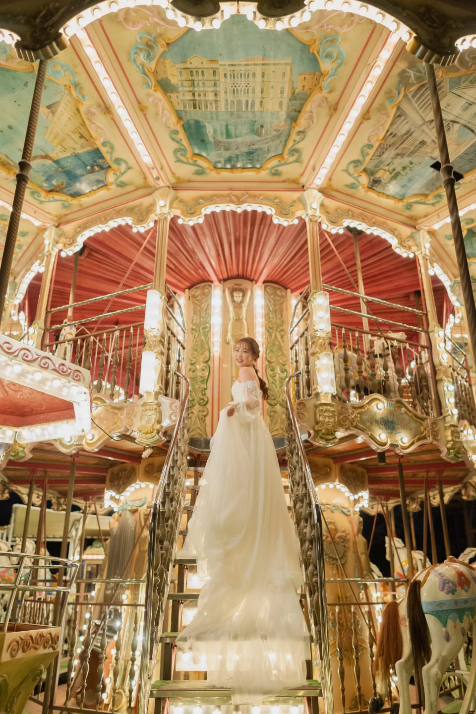 冬季的遊樂園呈現季節限定的夢幻氛圍。以雪景或燈光點綴為背景,可拍出獨特且充滿戲劇性的照片。