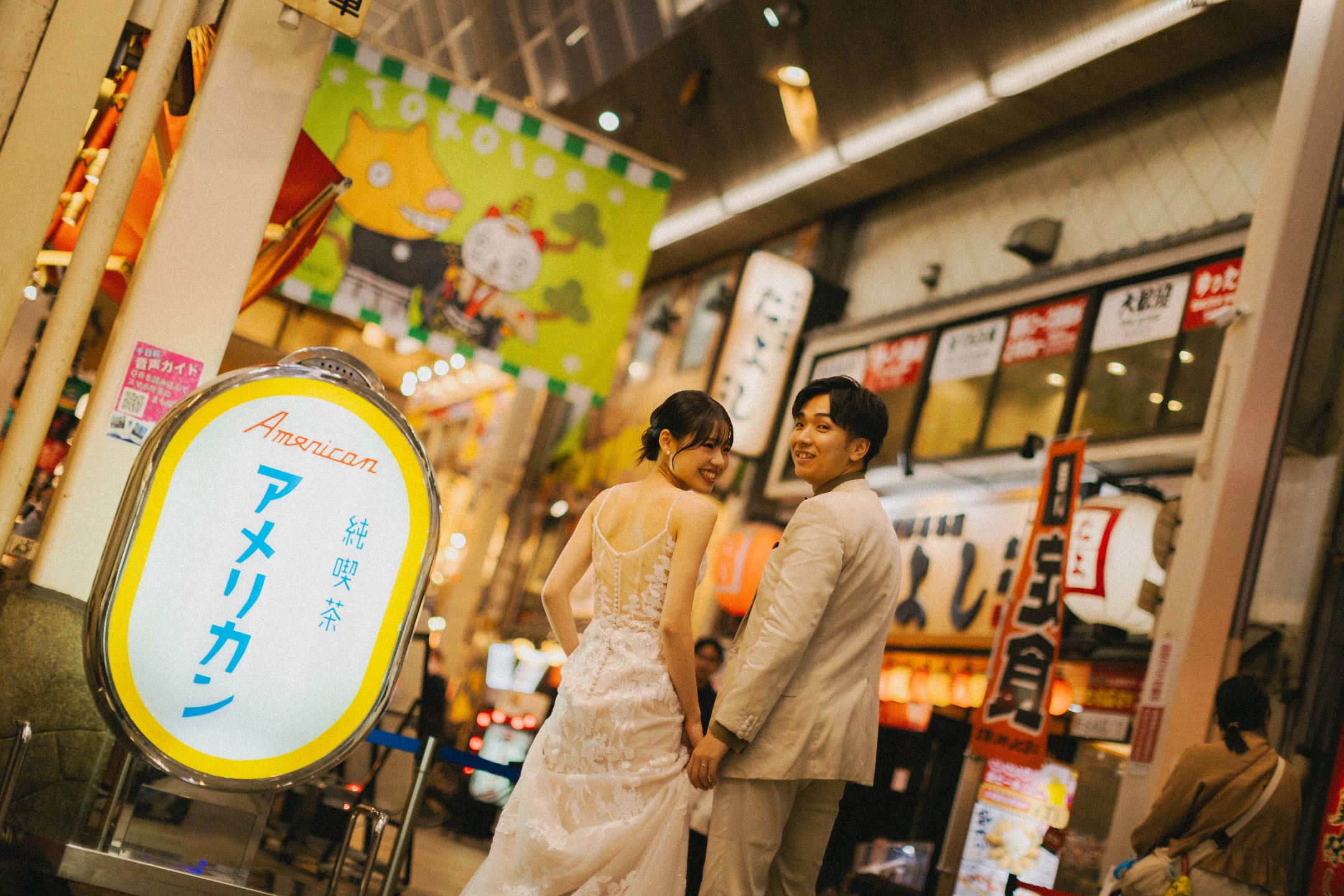 難波街區商業設施密集、人潮川流不息,是充滿活力的城市地帶。以都會、流行的氛圍為背景,可拍攝休閒且時尚的照片。