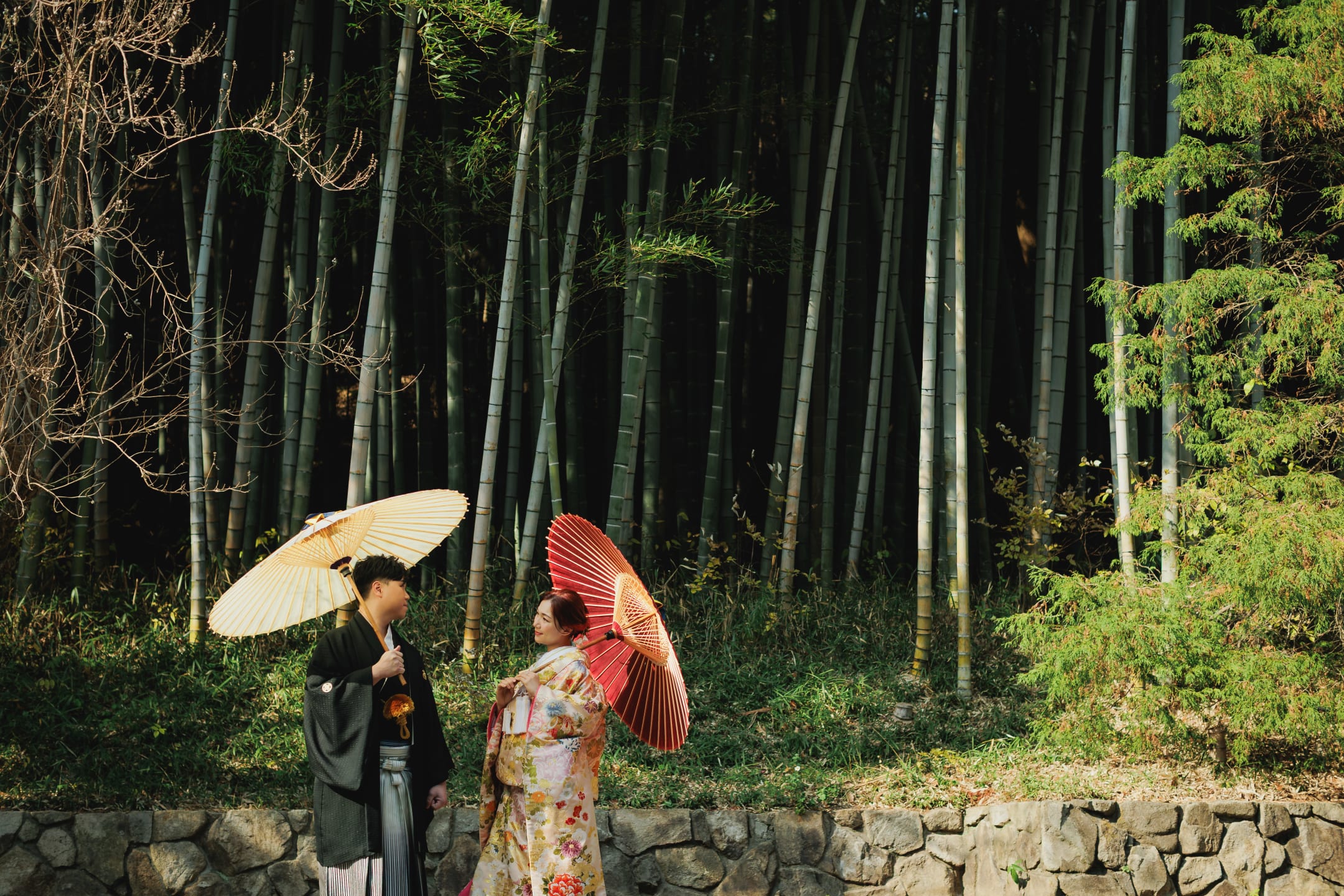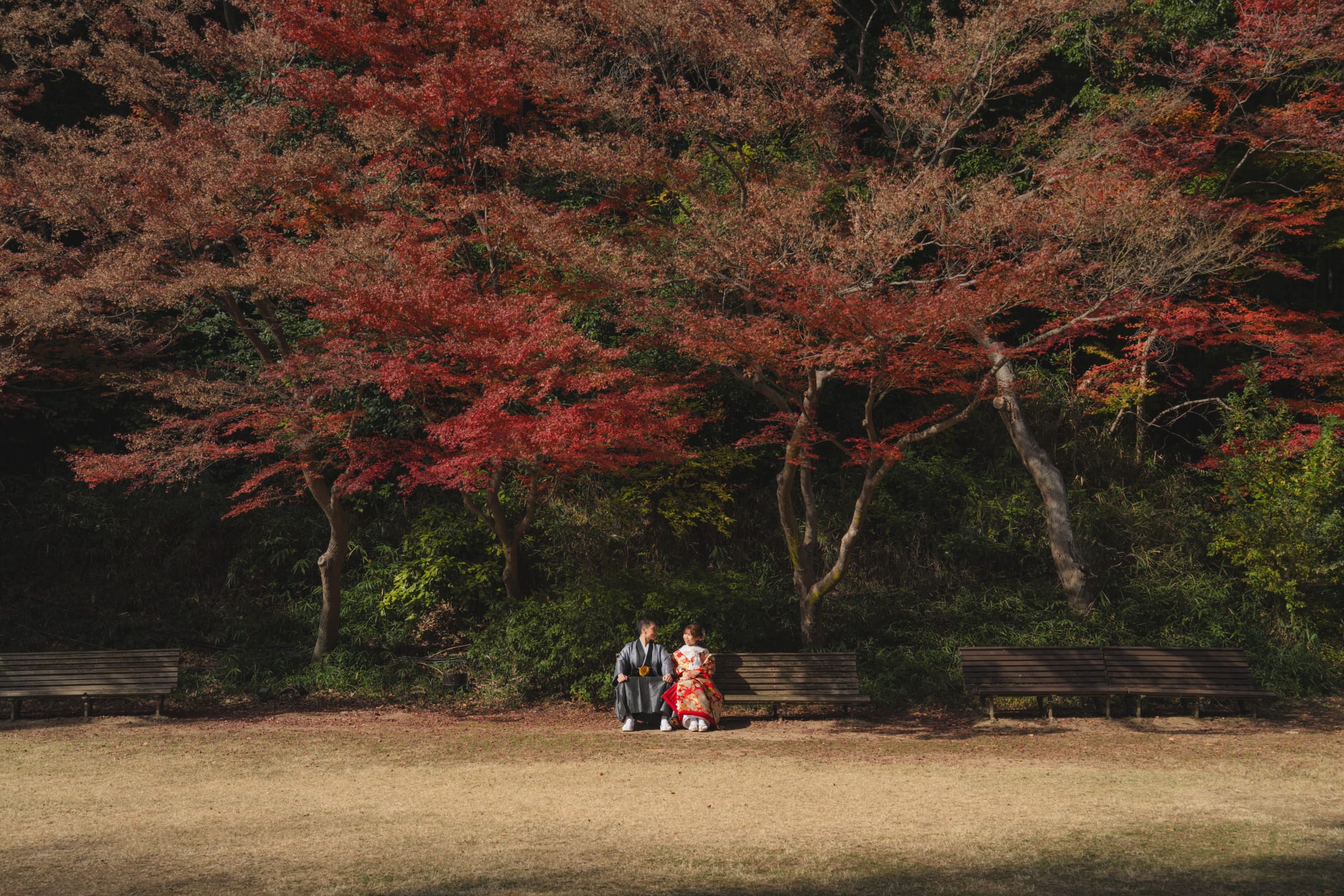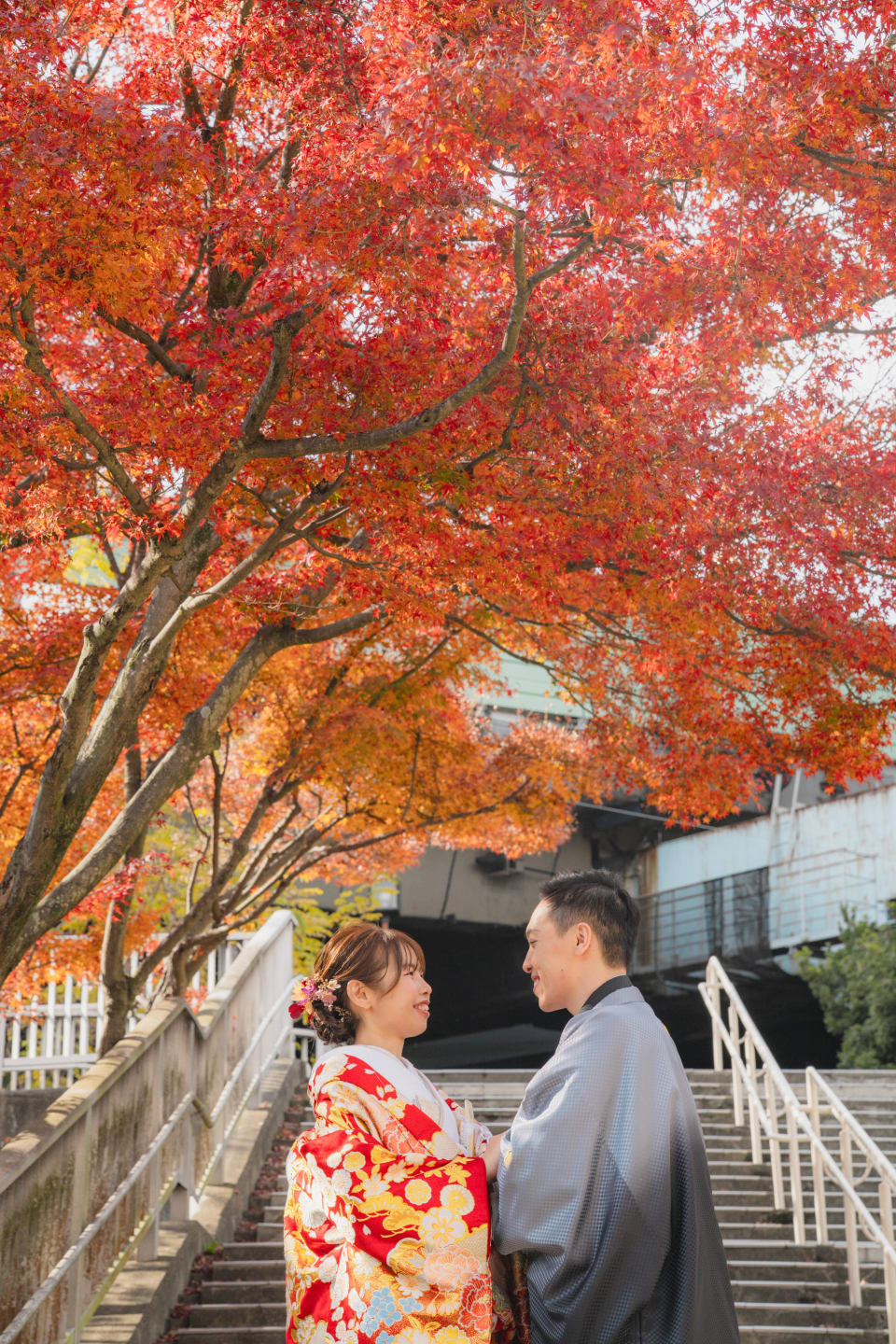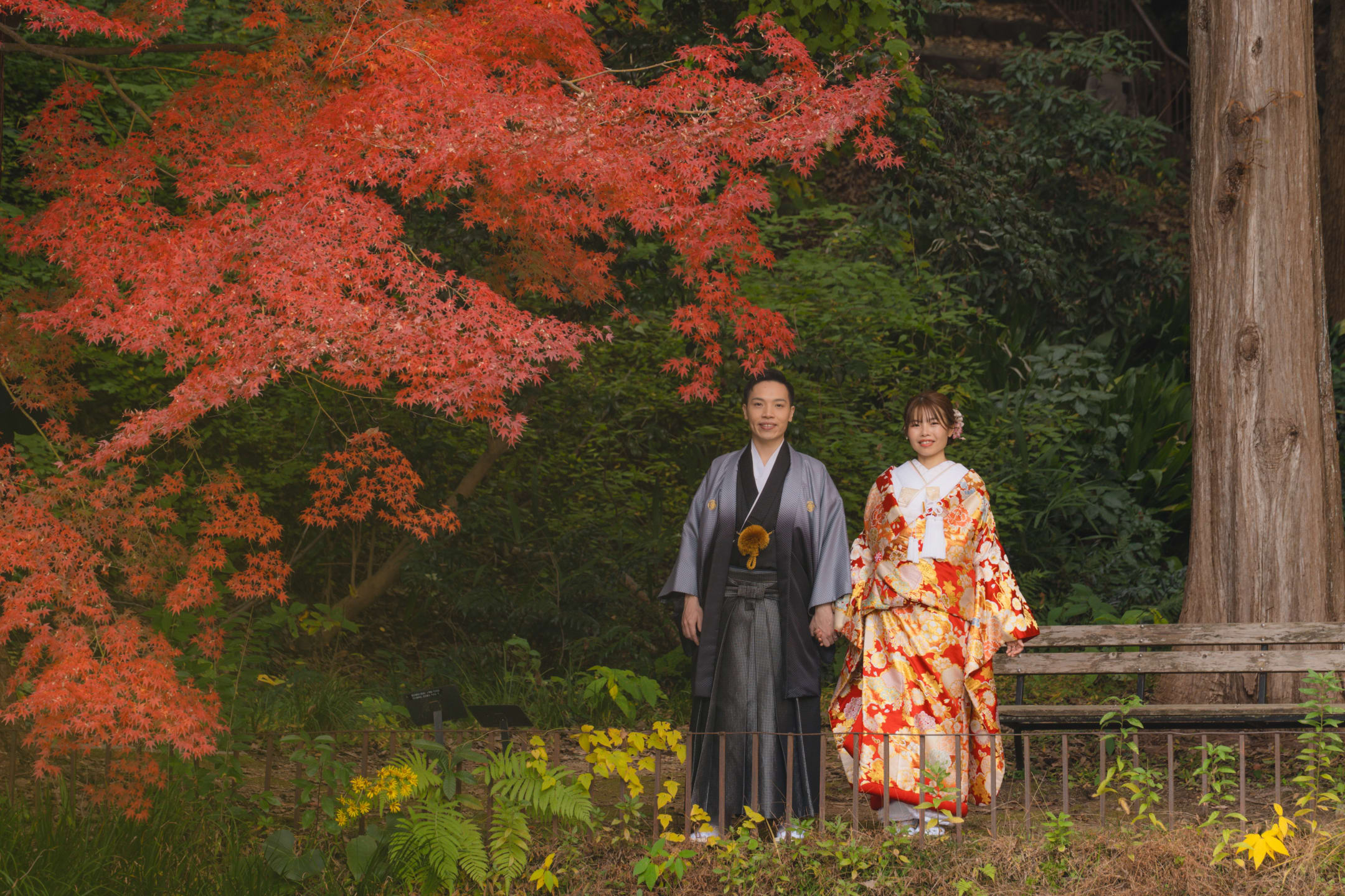 相樂園為四季植栽美麗的日本庭園,以池泉與傳統建築構圖,能拍攝雅致的和裝預拍。自然光與靜謐環境相互襯托。