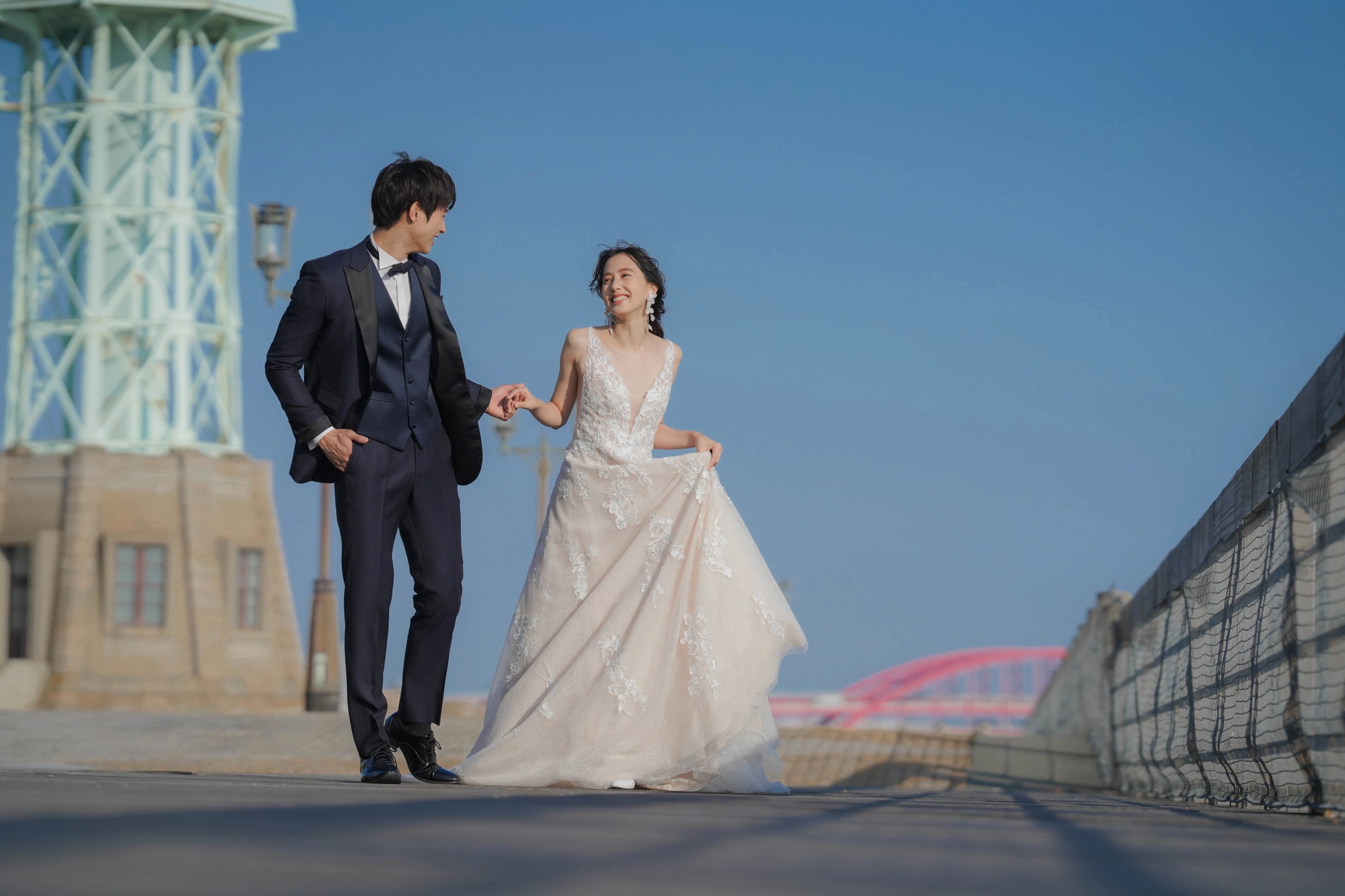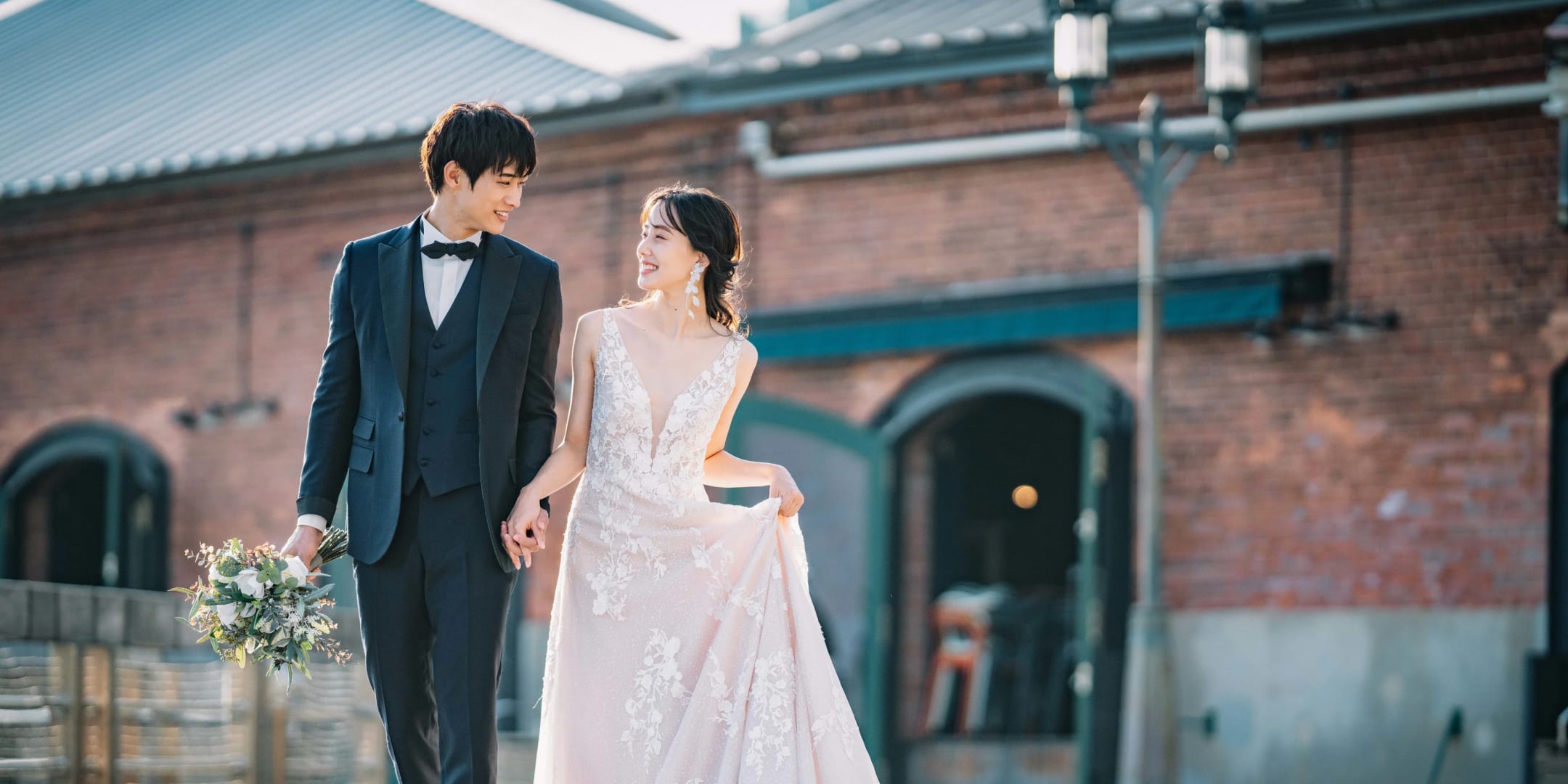 舊居留地為洋風建築林立的區域,以異國街景為背景能拍出洗練且正式的照片。經典磚瓦與柱體特別適合搭配禮服取景。