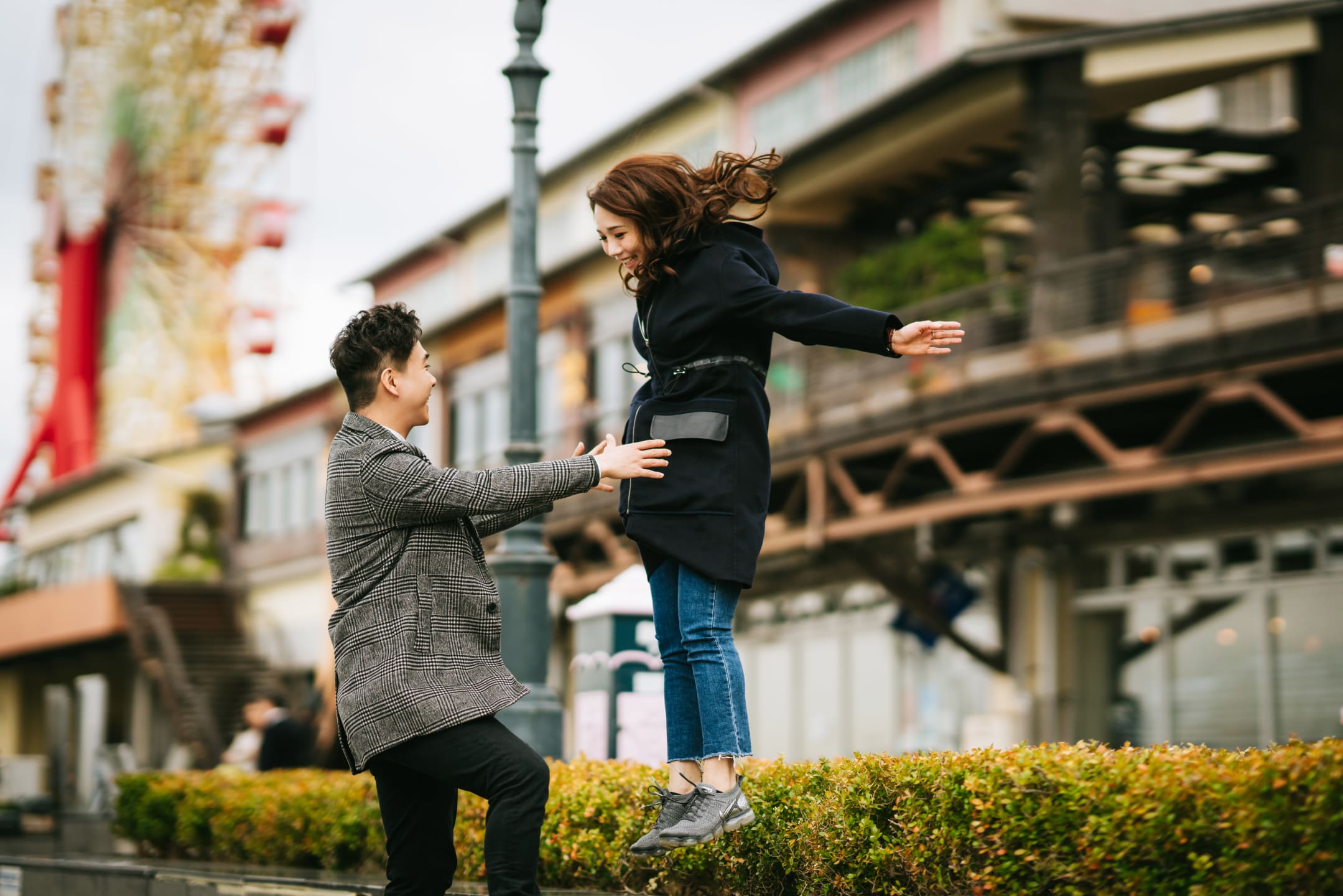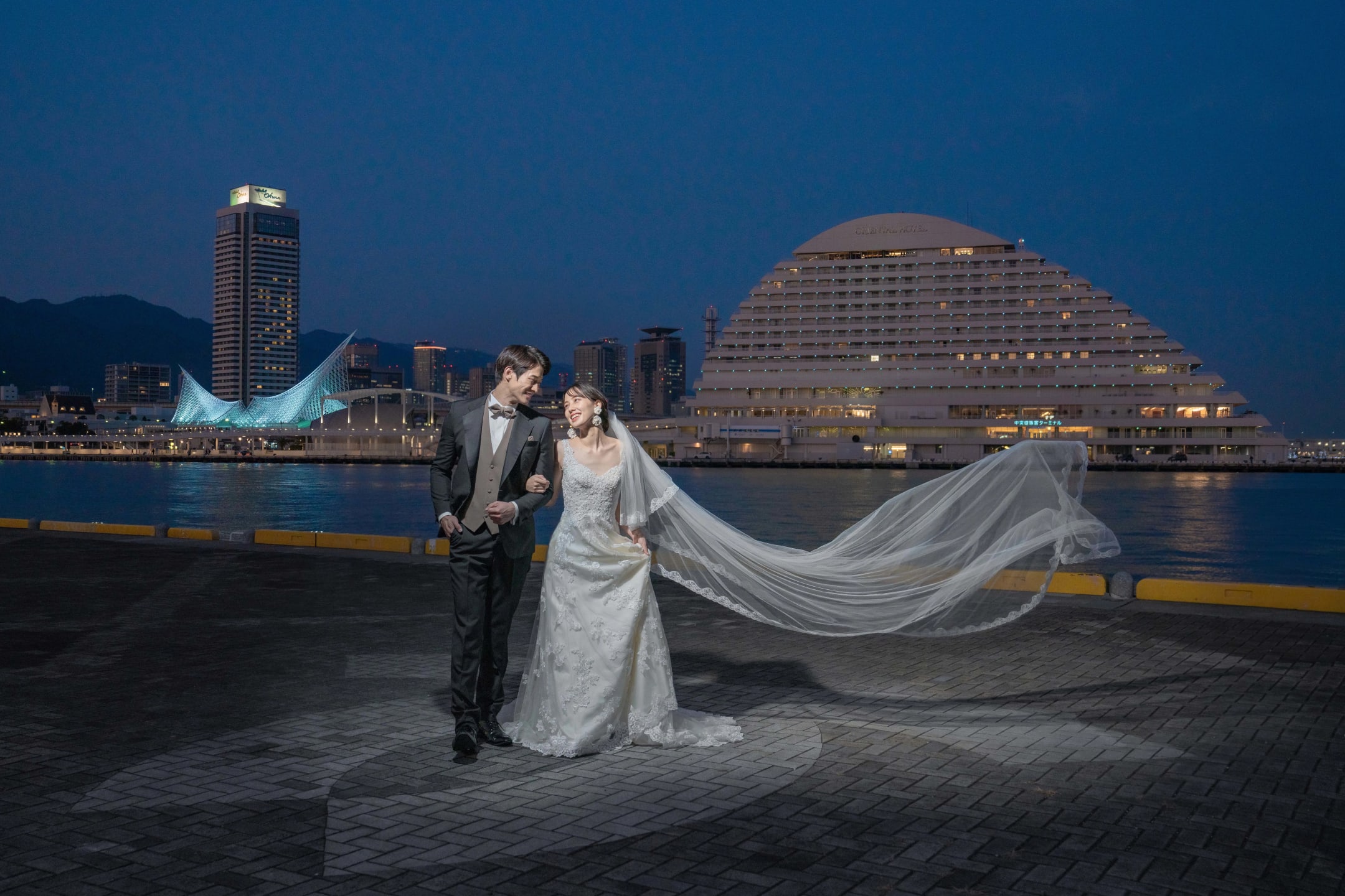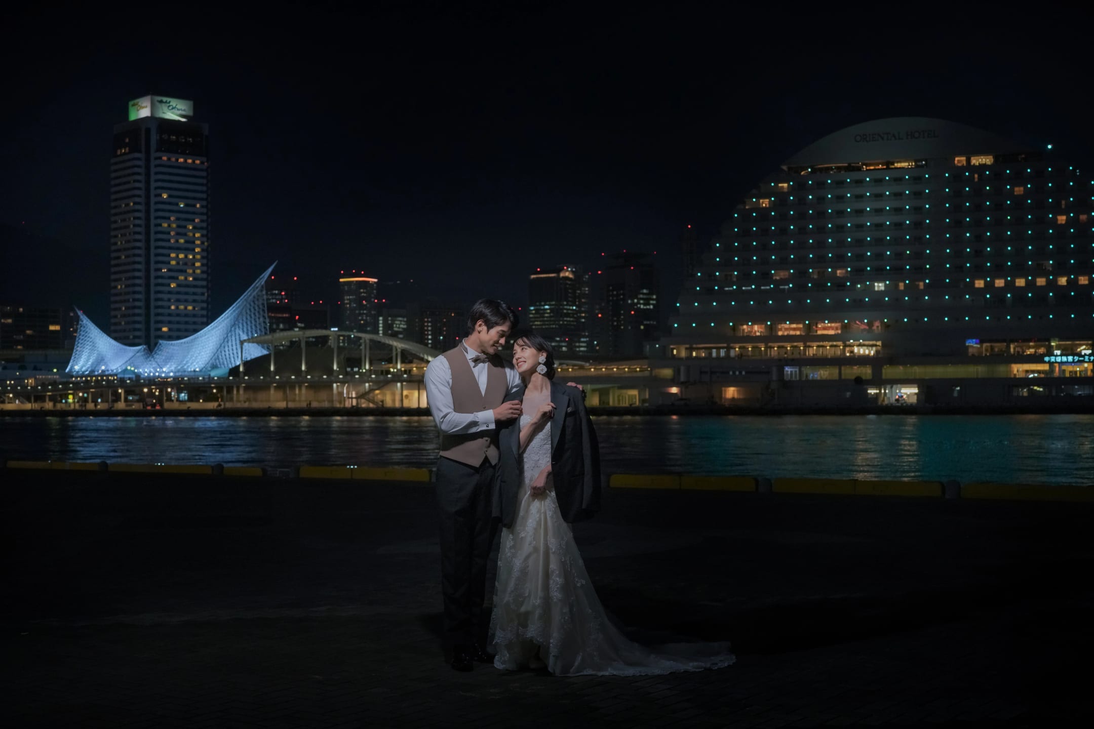 神戶港灣樂園融合海邊開放感與現代街景,可拍攝帶有海風光感的戲劇性影像。利用黃昏剪影與夜景更能呈現浪漫效果。