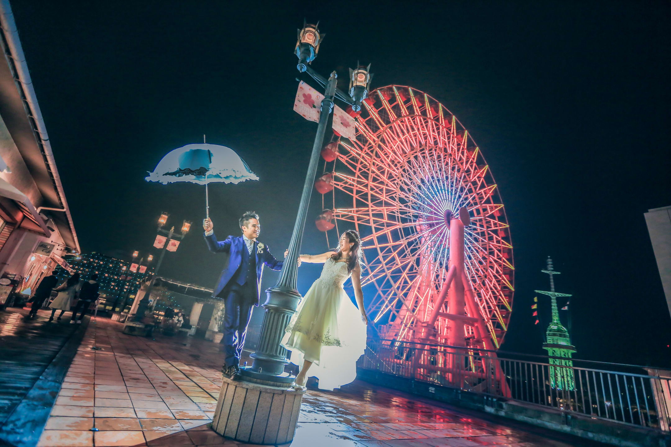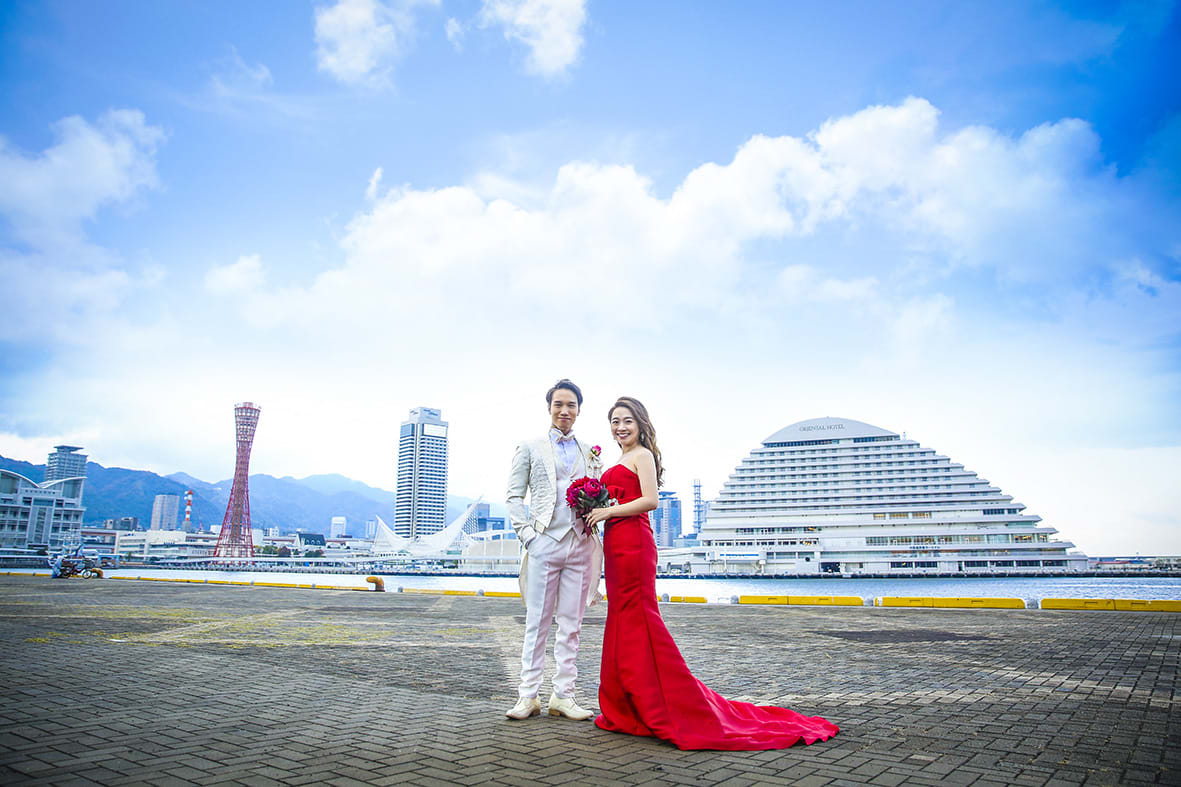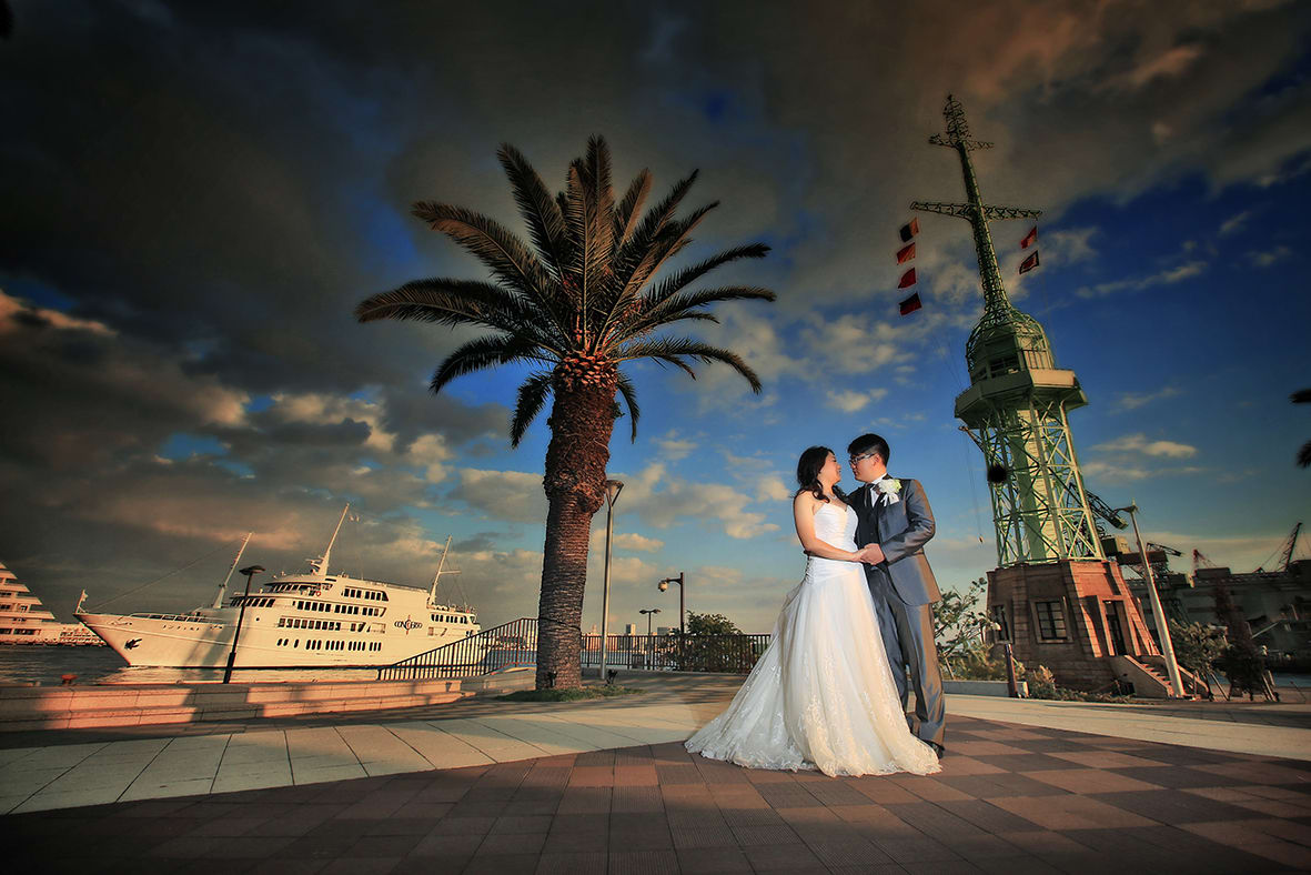神戶港灣樂園融合海邊開放感與現代街景,可拍攝帶有海風光感的戲劇性影像。利用黃昏剪影與夜景更能呈現浪漫效果。