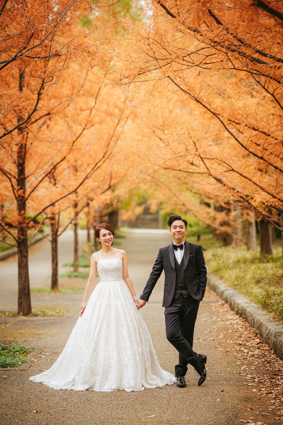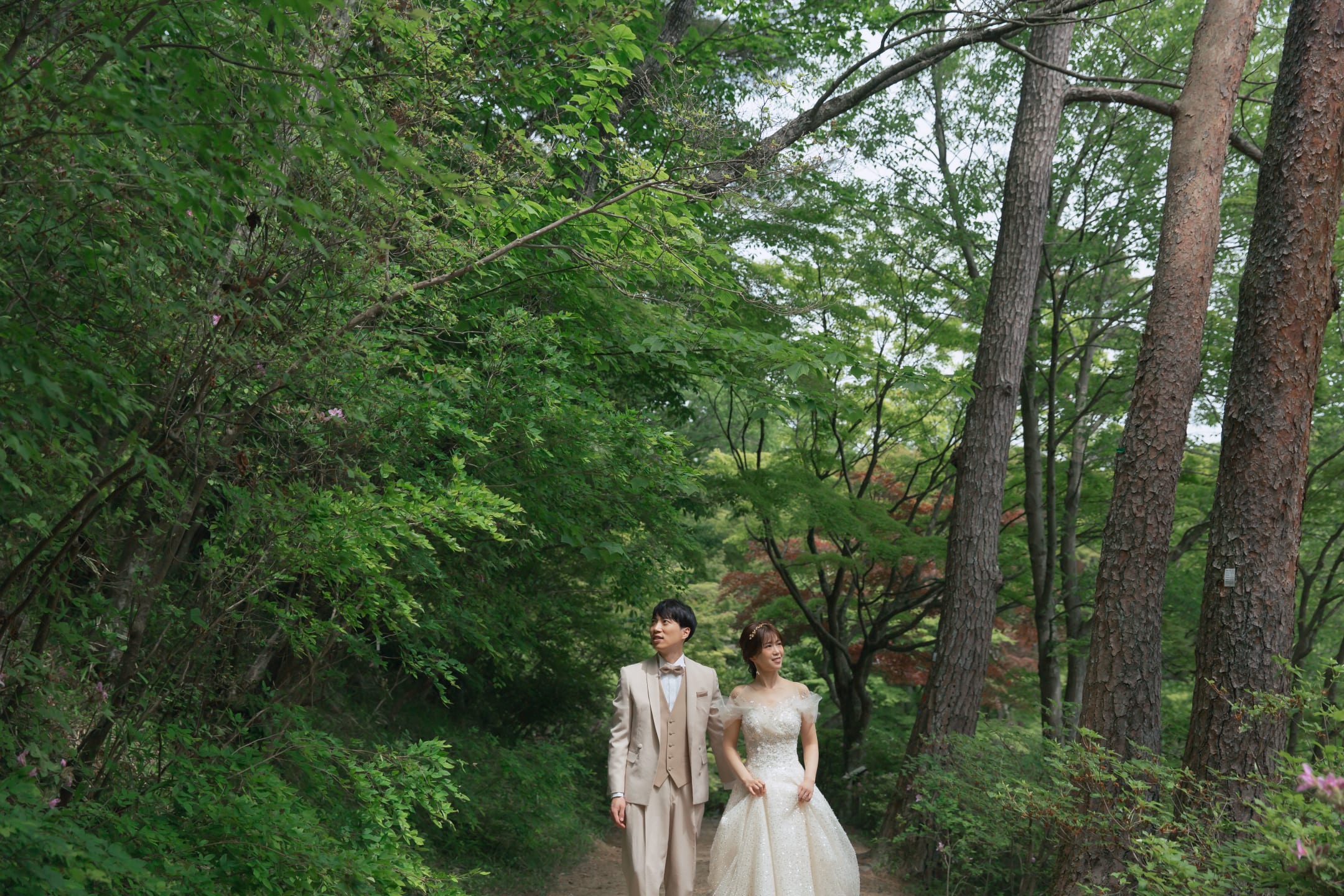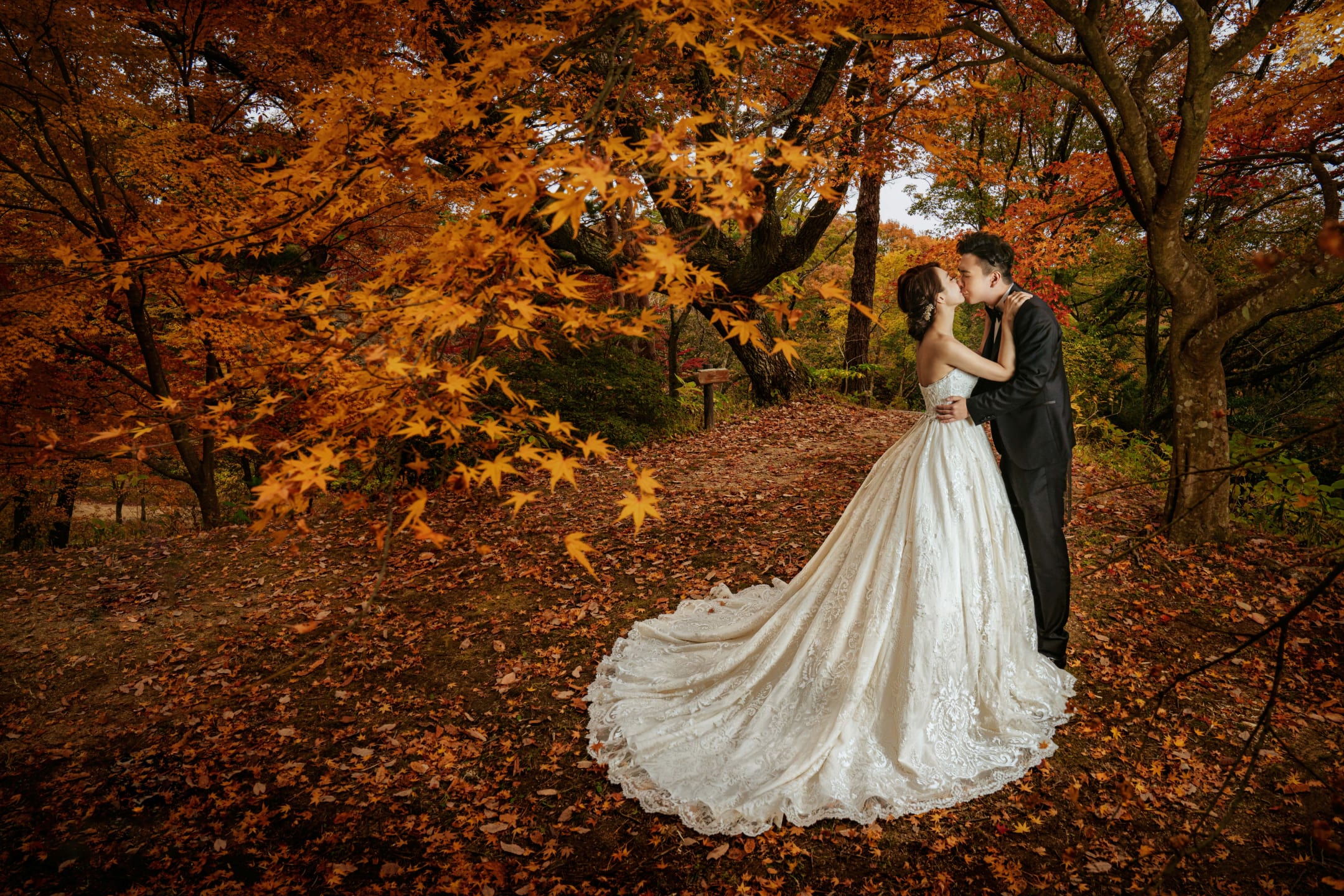 相樂園為四季植栽美麗的日本庭園,以池泉與傳統建築構圖,能拍攝雅致的和裝預拍。自然光與靜謐環境相互襯托。