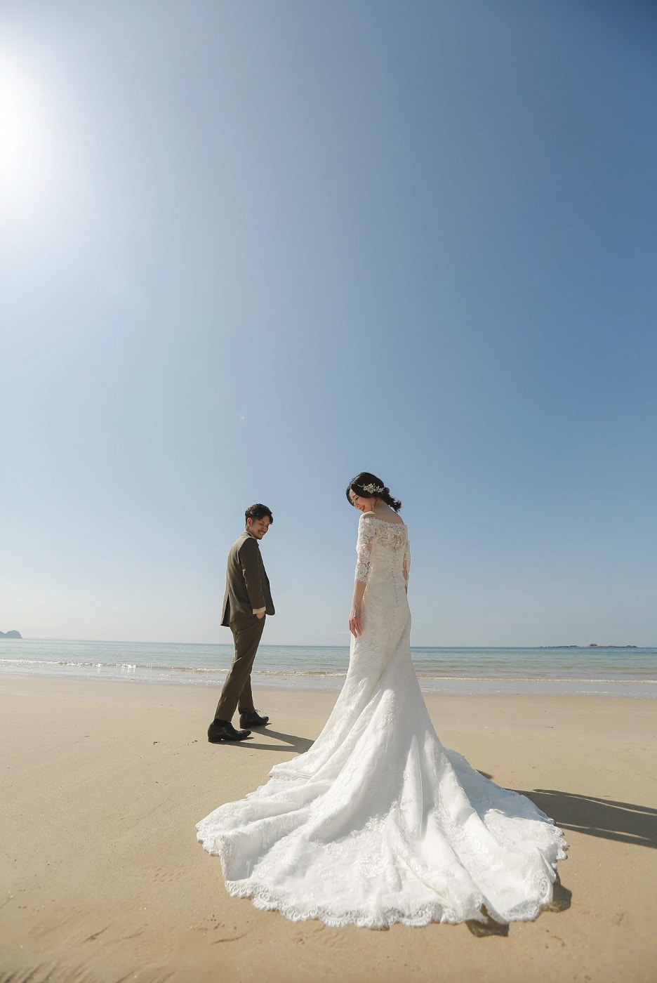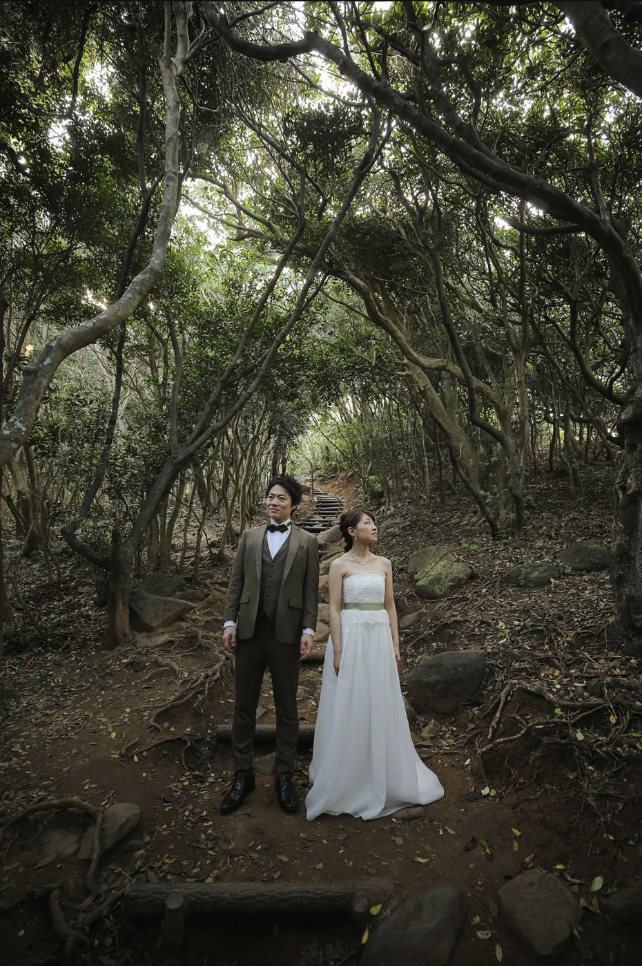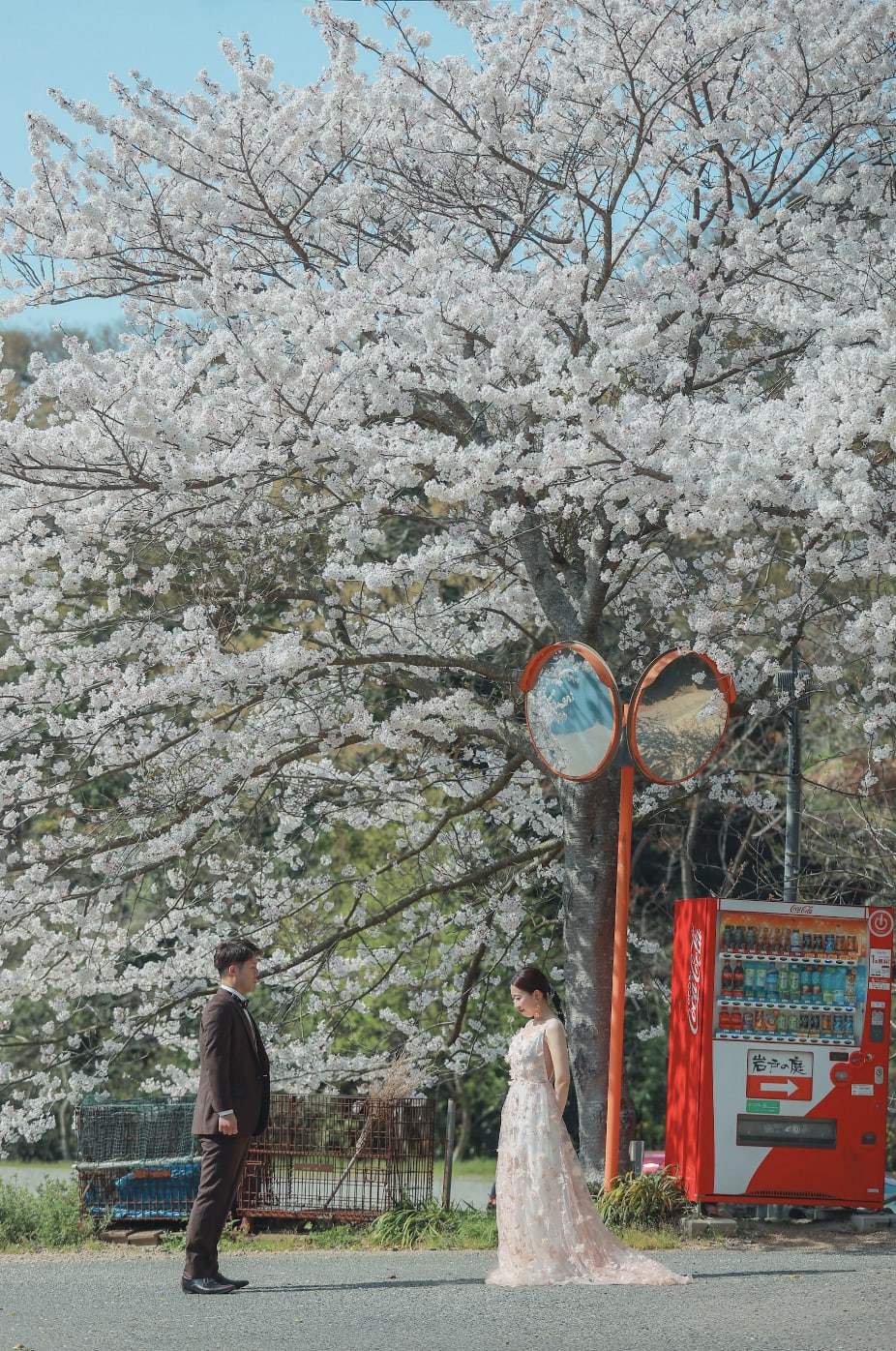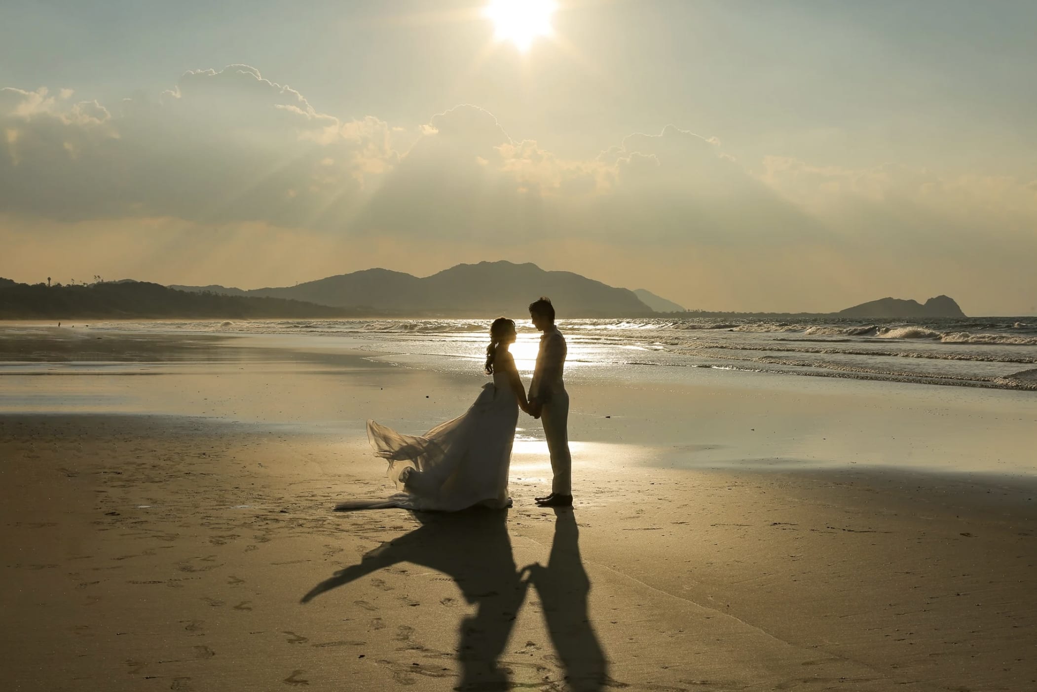 糸島以福岡近郊的自然海灘與里山景觀聞名,是理想的攝影地。夕陽染紅的海岸線與開放感海景非常適合呈現放鬆且自然的婚紗影像。
