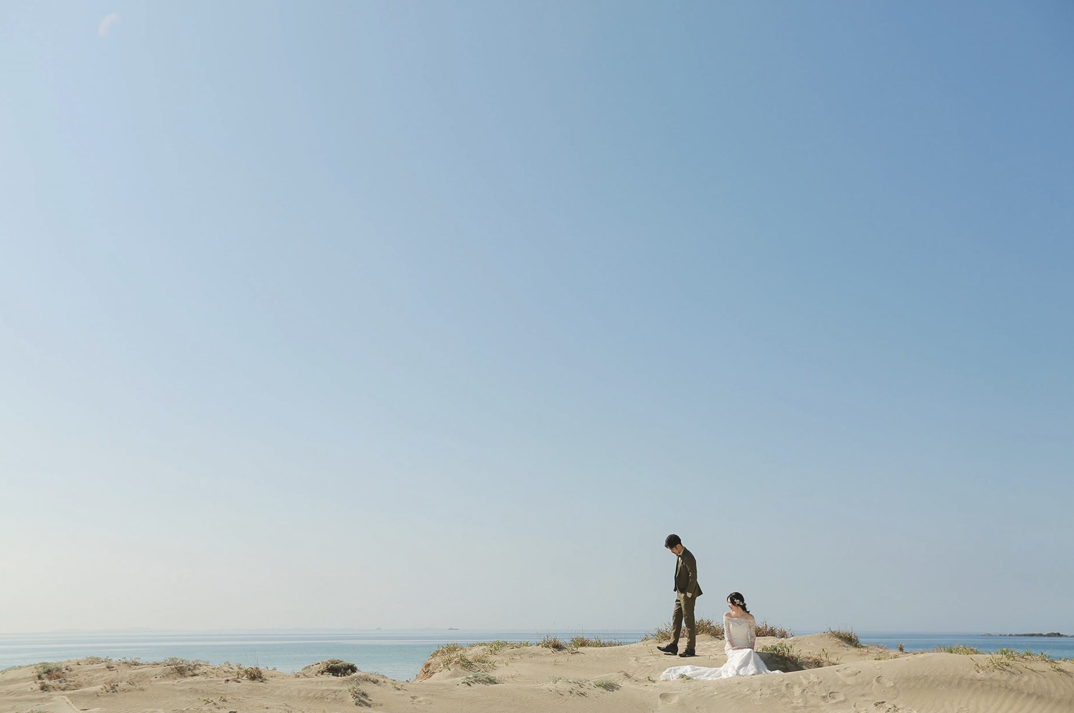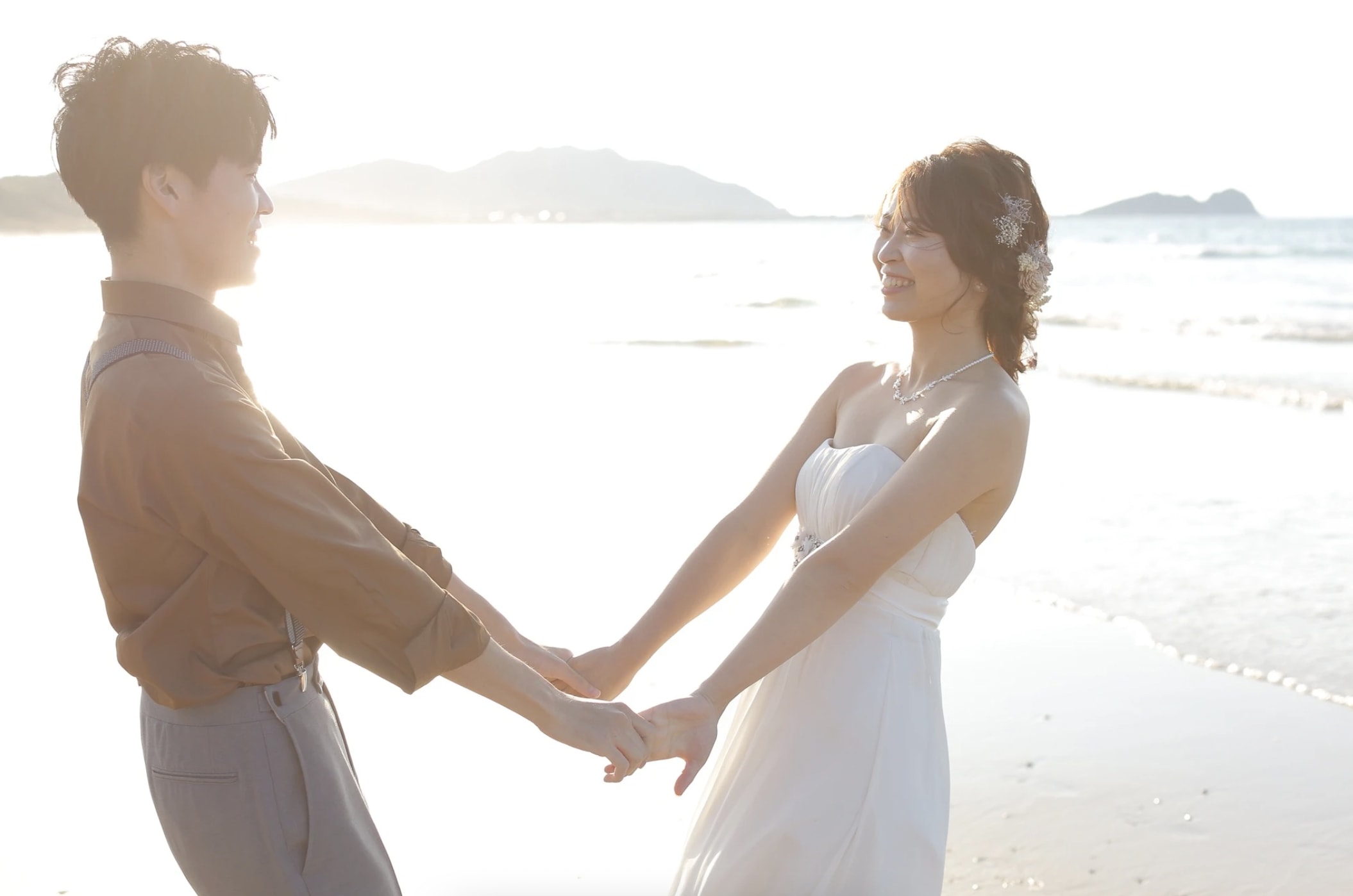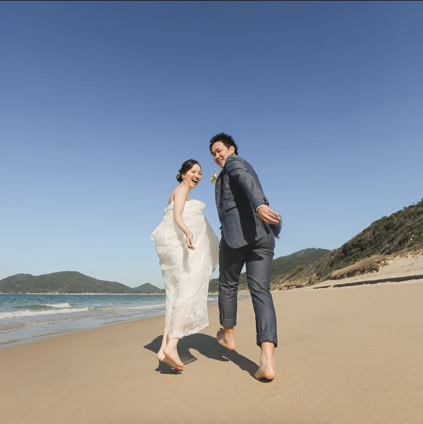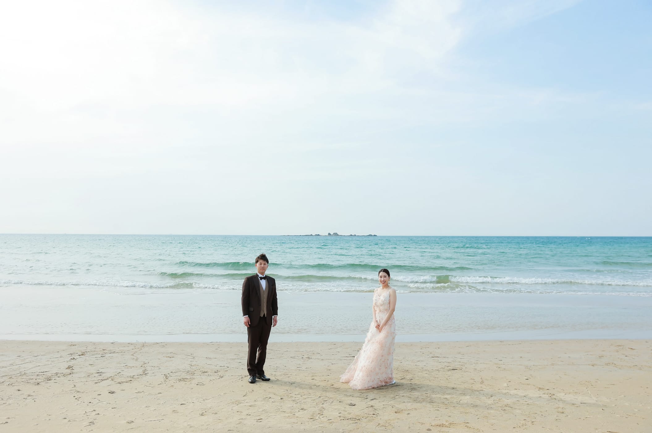 糸島以福岡近郊的自然海灘與里山景觀聞名,是理想的攝影地。夕陽染紅的海岸線與開放感海景非常適合呈現放鬆且自然的婚紗影像。