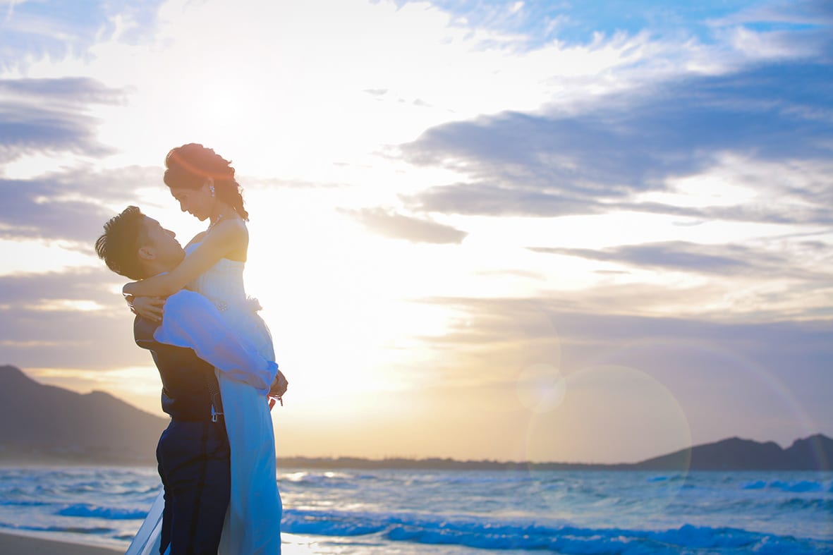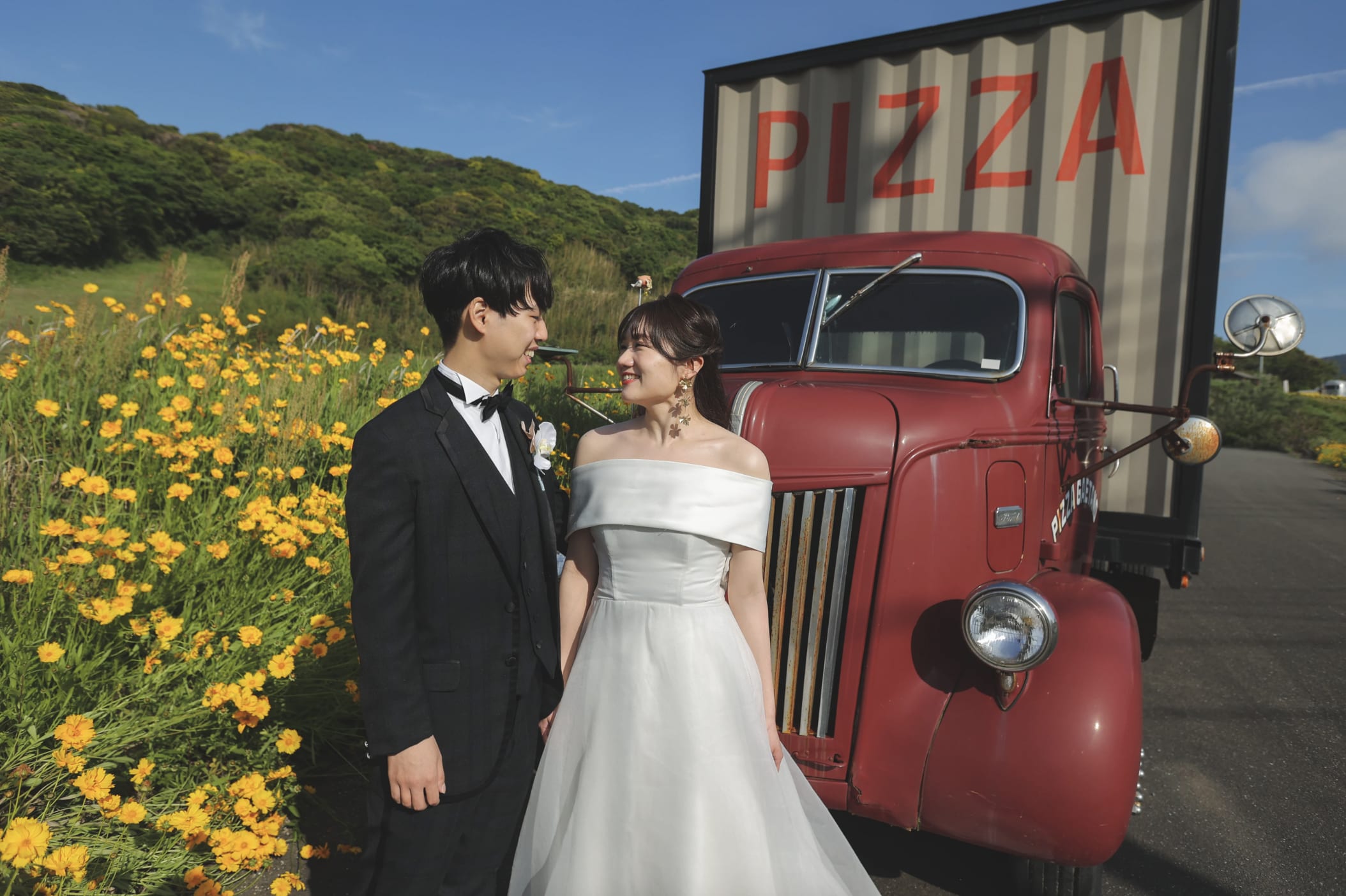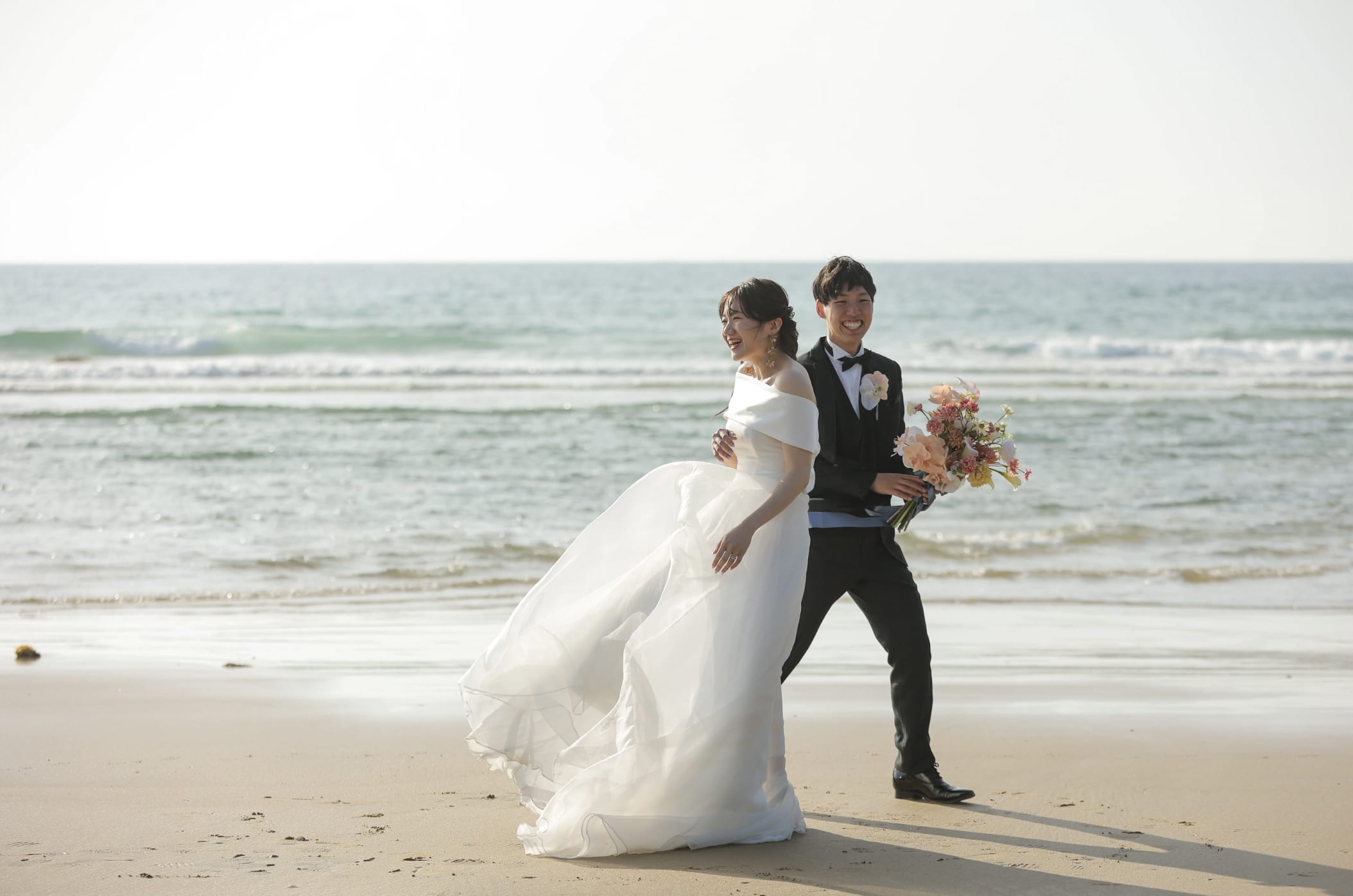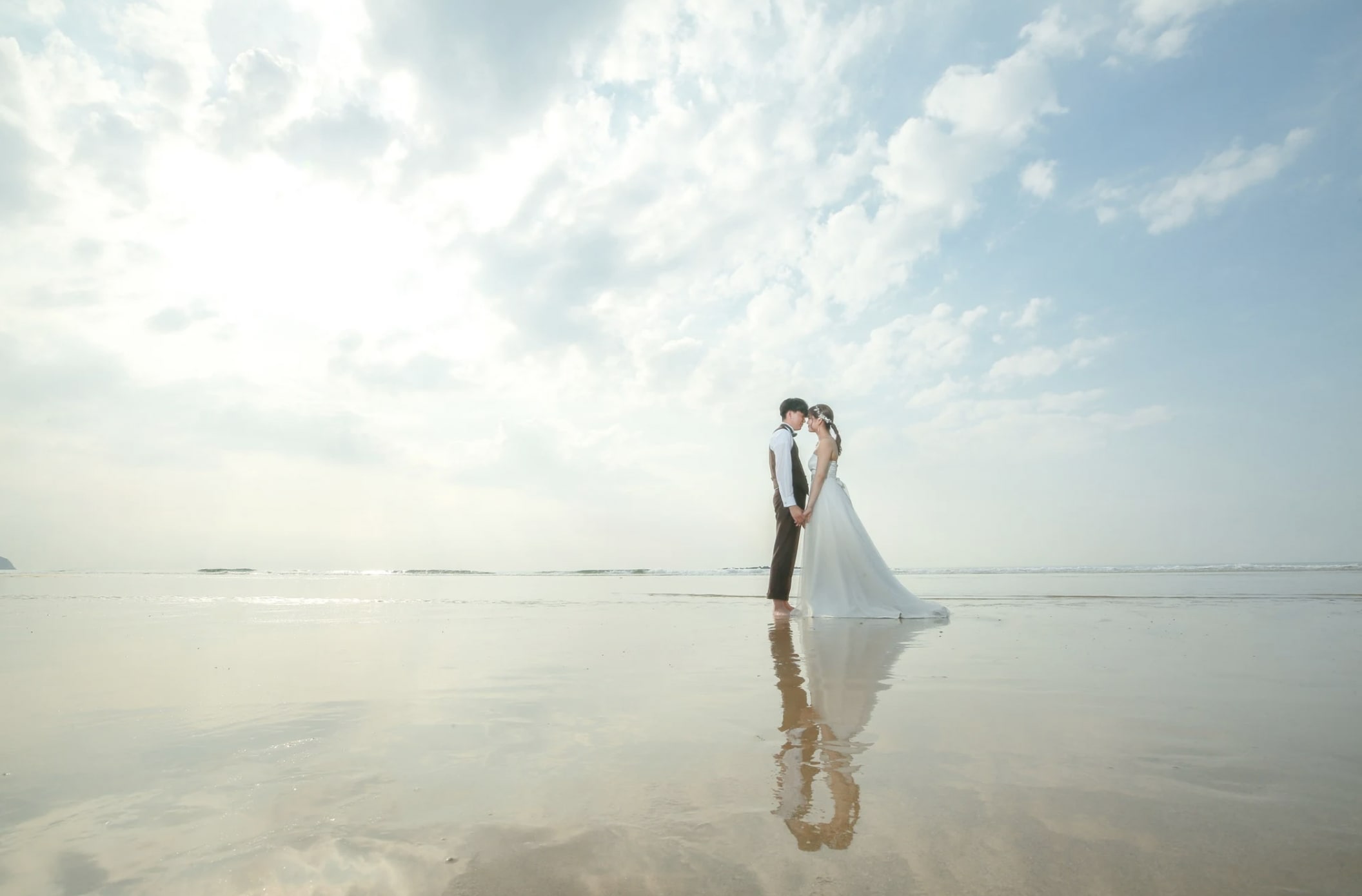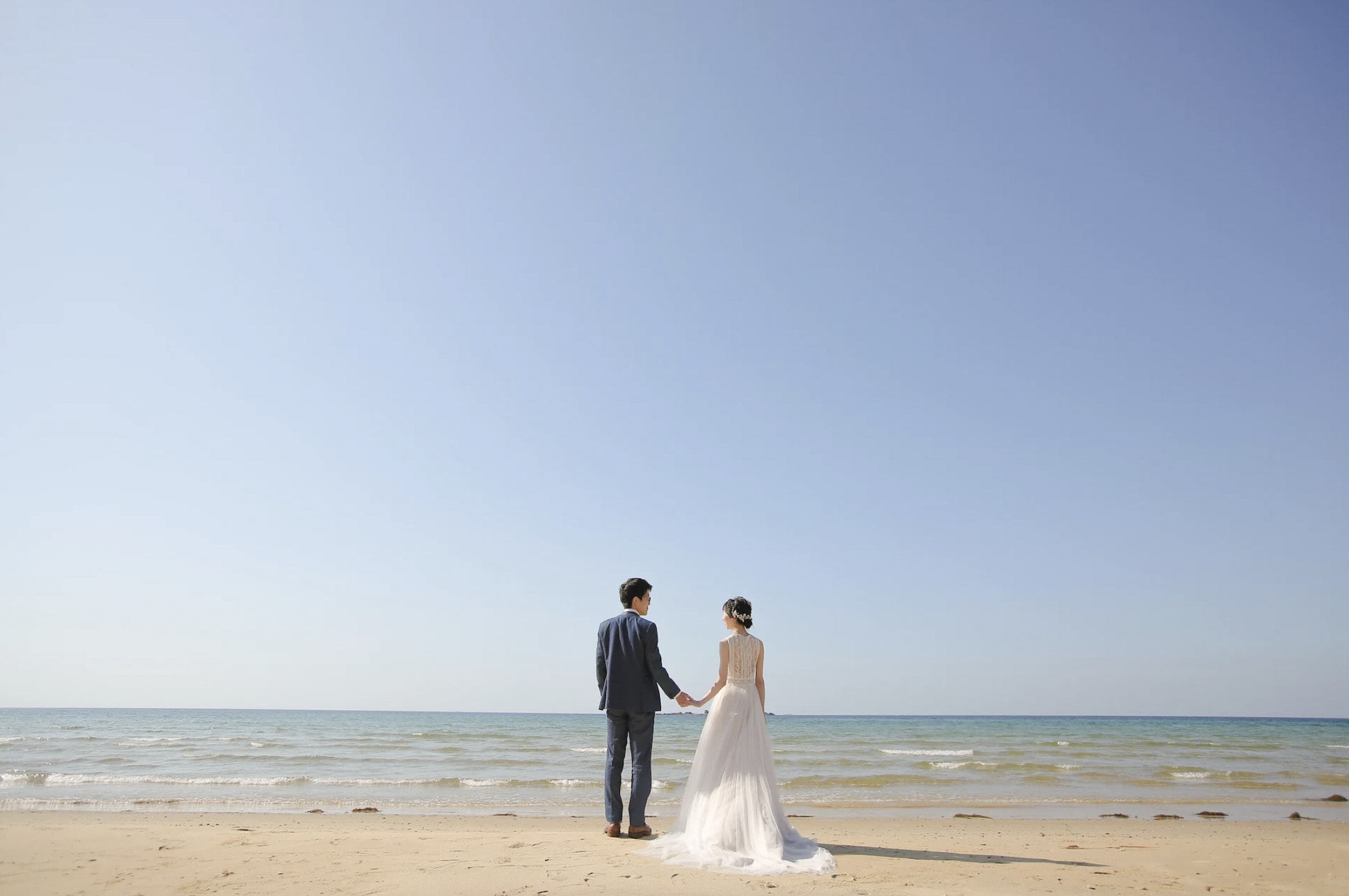 糸島以福岡近郊的自然海灘與里山景觀聞名,是理想的攝影地。夕陽染紅的海岸線與開放感海景非常適合呈現放鬆且自然的婚紗影像。
