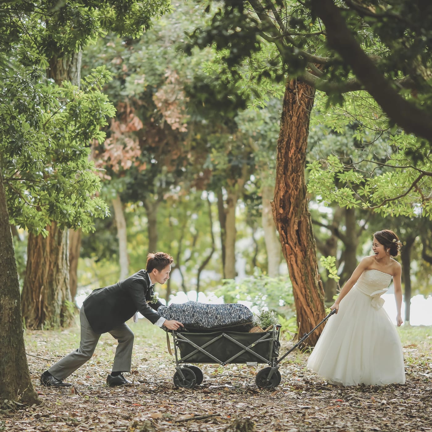 大濠公園是市區著名的綠意公園。以池水、步道與綠植為背景可拍攝出沉穩的婚紗照片,利用自然光能展現柔和表情。