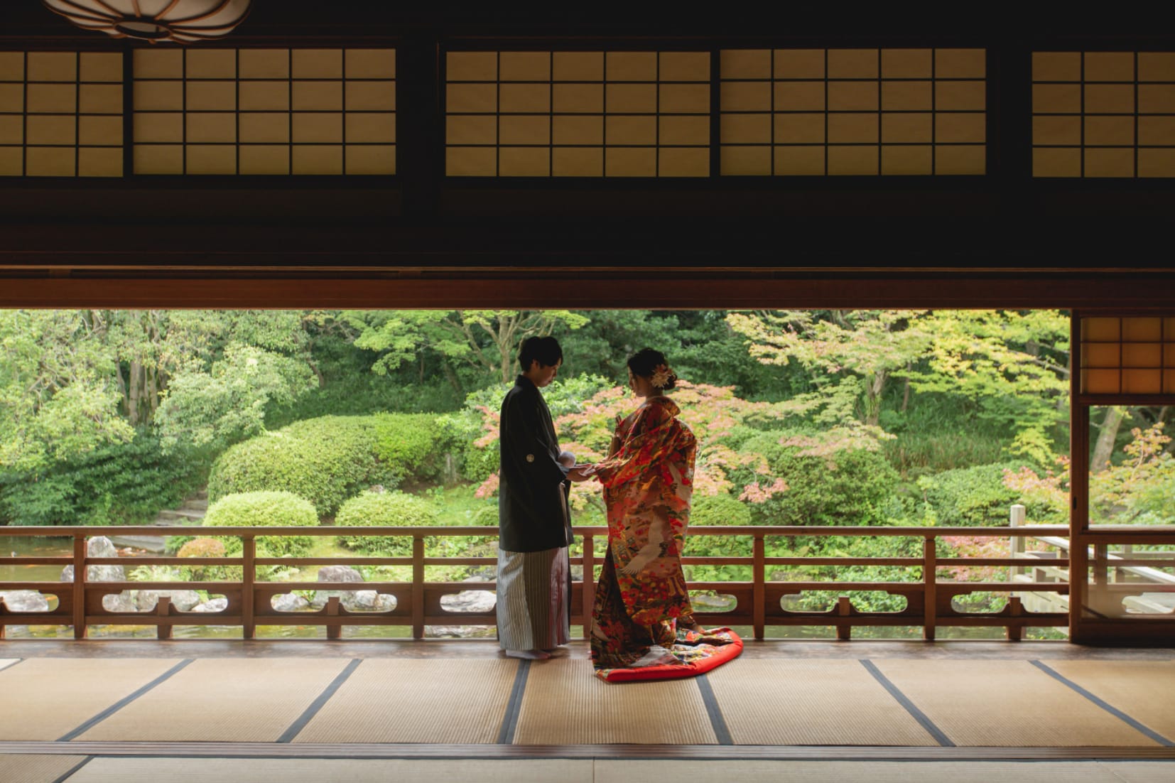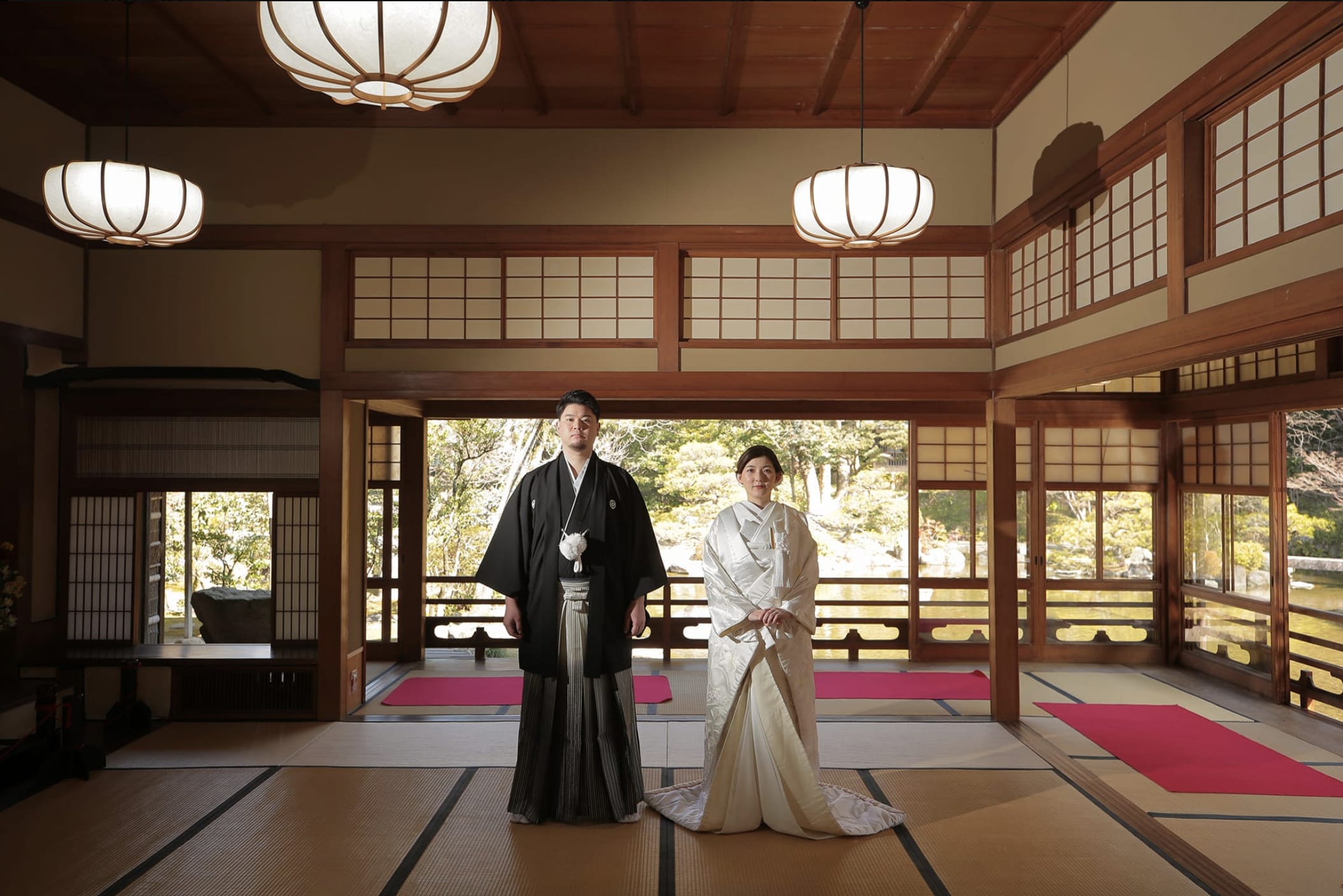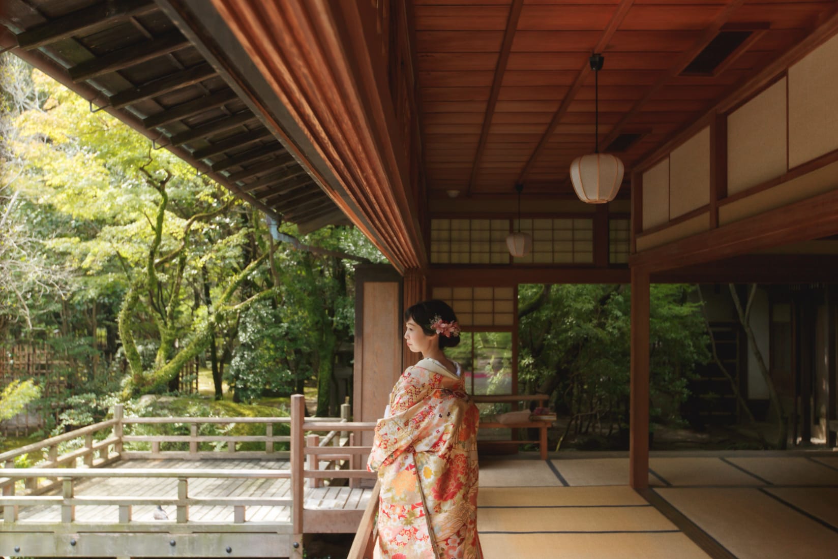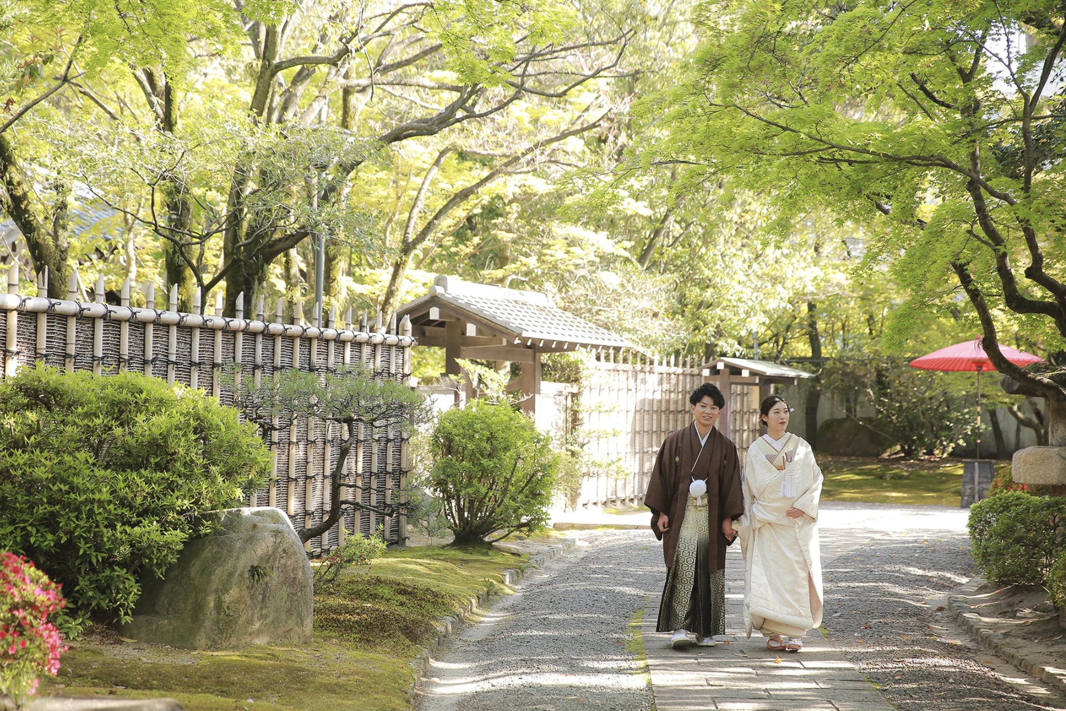 友泉亭是知名文化財日本庭園,具有靜謐池水與經典造園特色,非常適合和服拍攝,可呈現雅緻沉穩的一張。