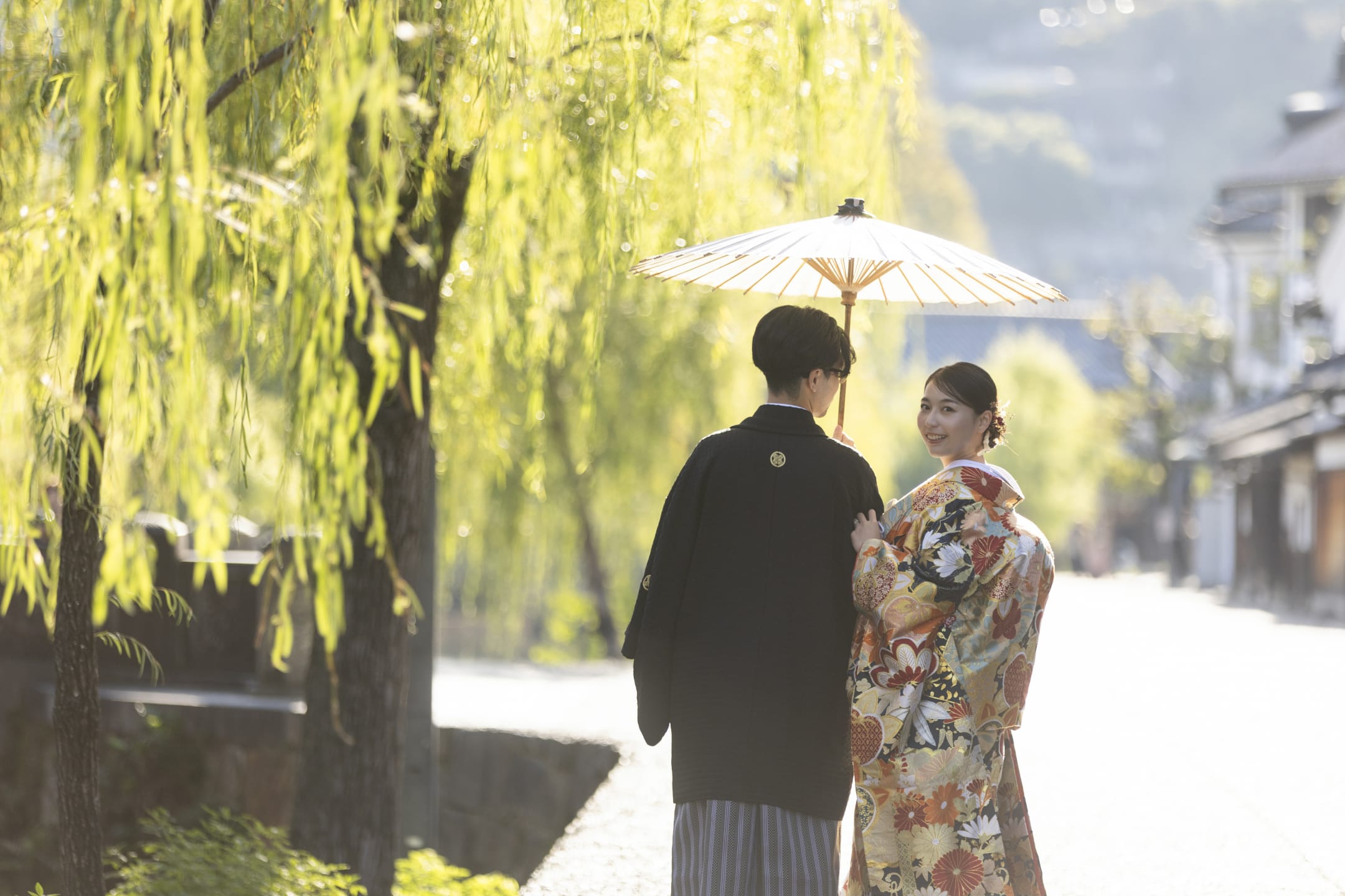 倉敷美觀地區以白壁土藏與柳樹並列的歷史街道著稱,保留濃厚的江戶時期風情。水邊倒影與古典景觀適合和服與禮服拍攝,也可搭配街拍享受多樣場景。