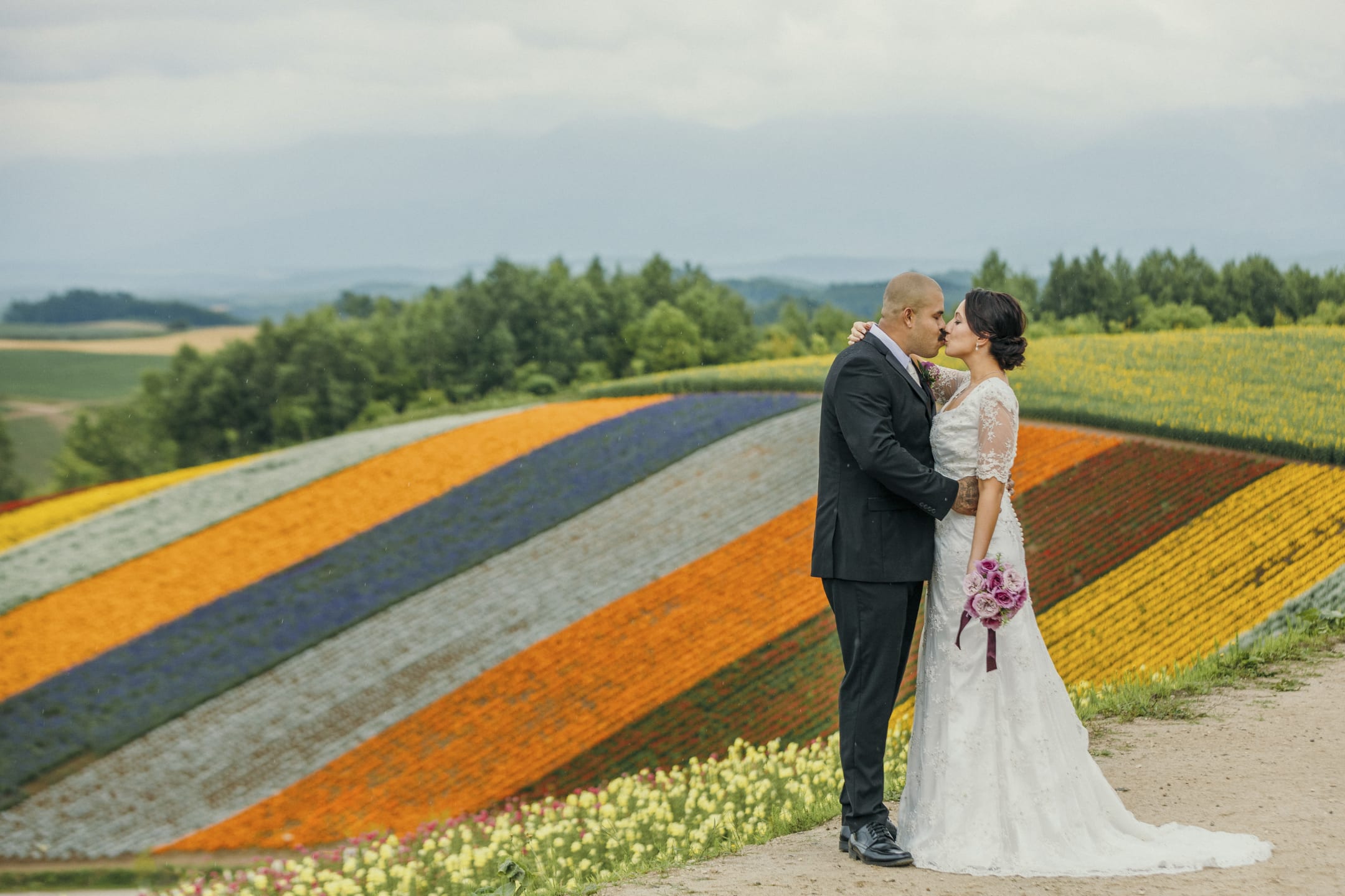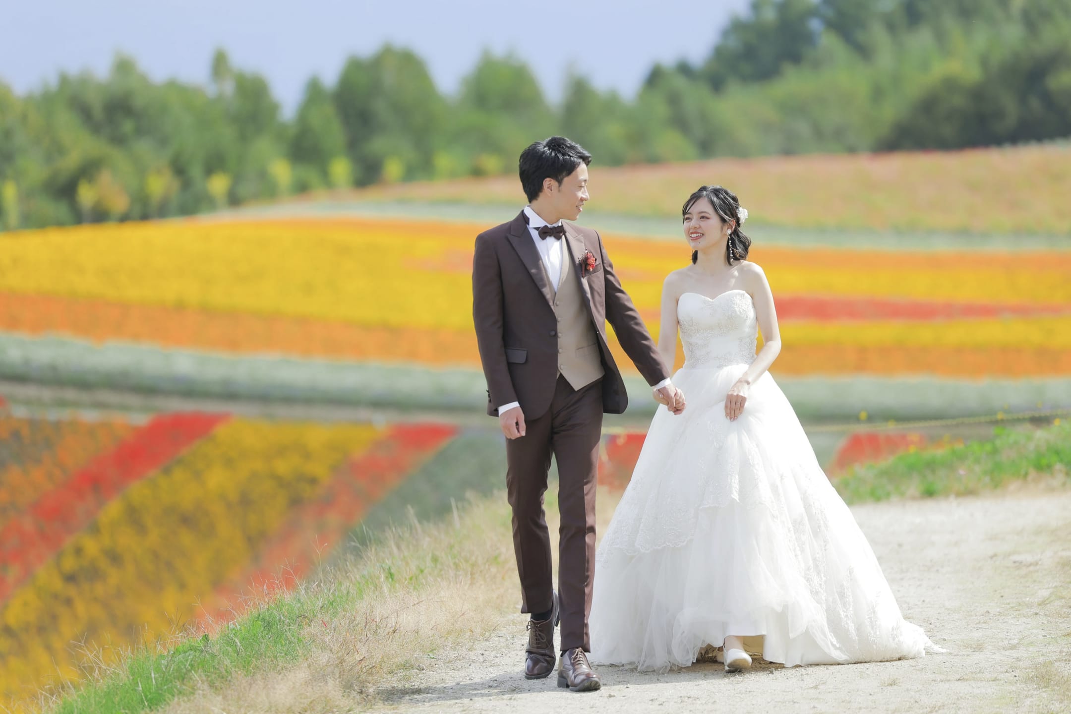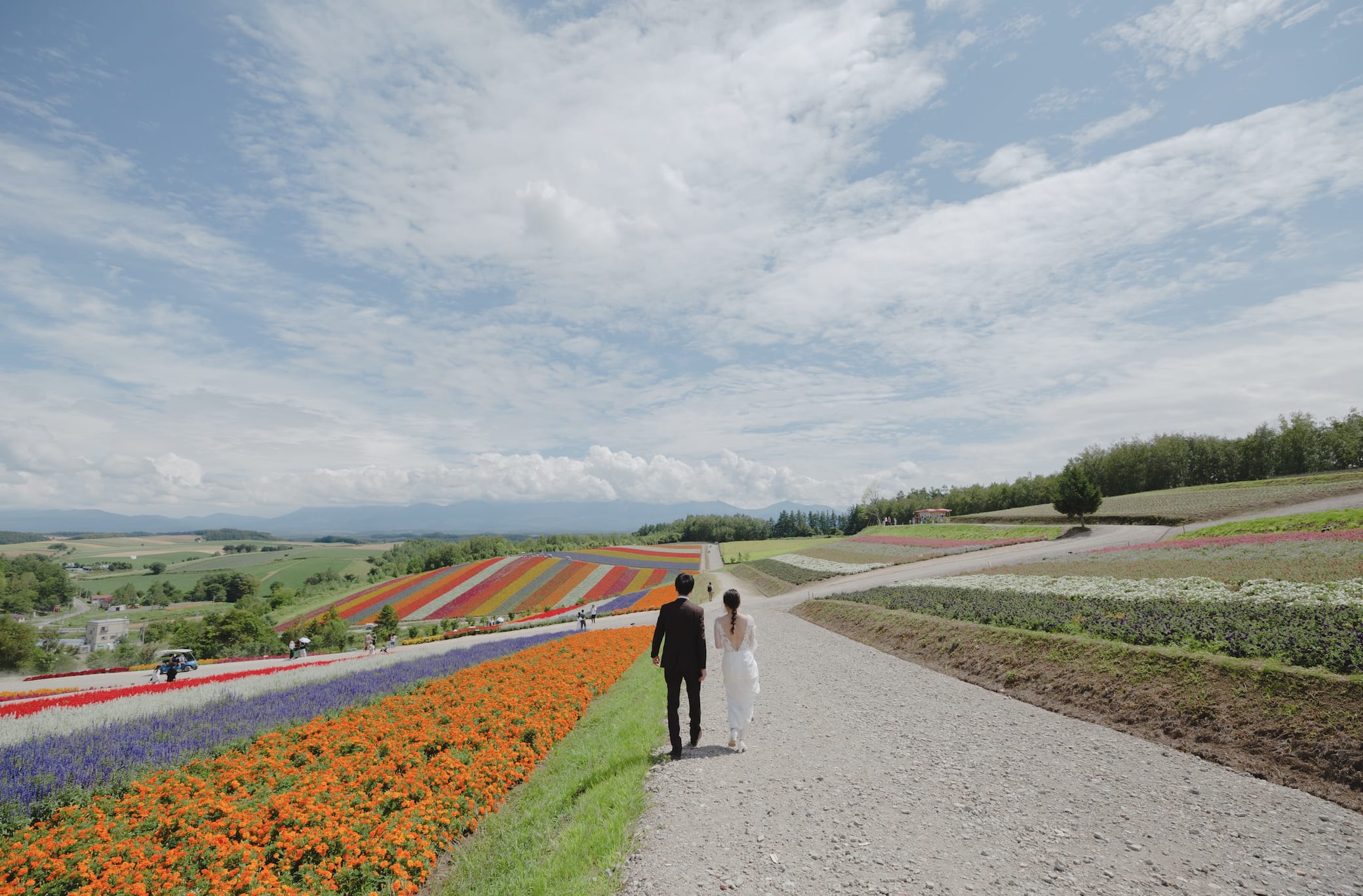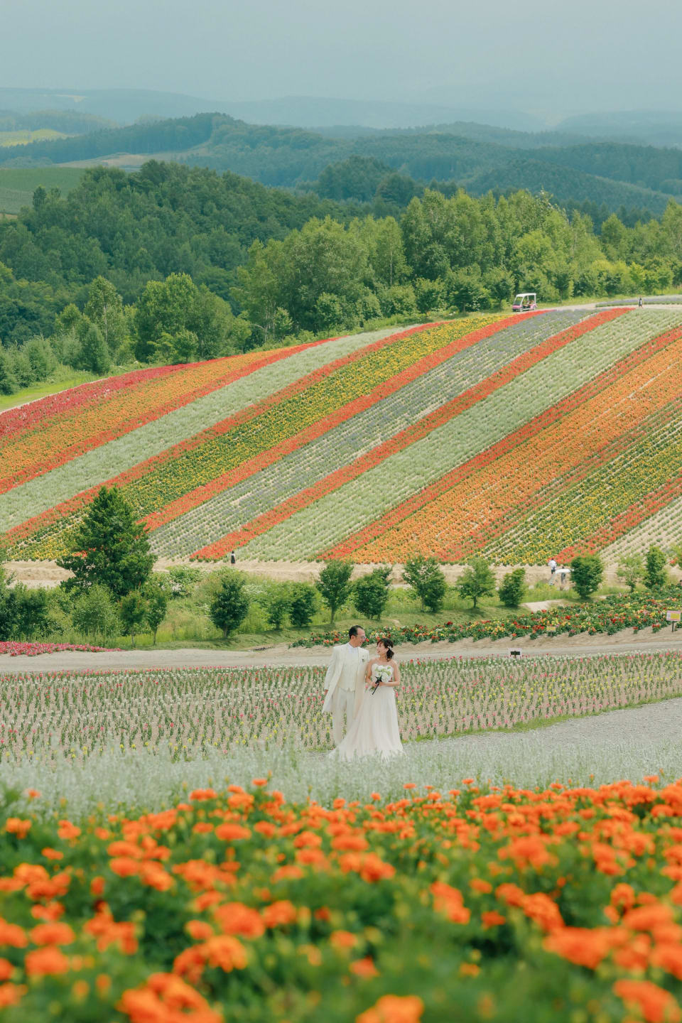 夏季北海道的薰衣草花田,以一片紫色景觀象徵浪漫。花香與柔光中,可拍出富季節感的清爽婚紗照。