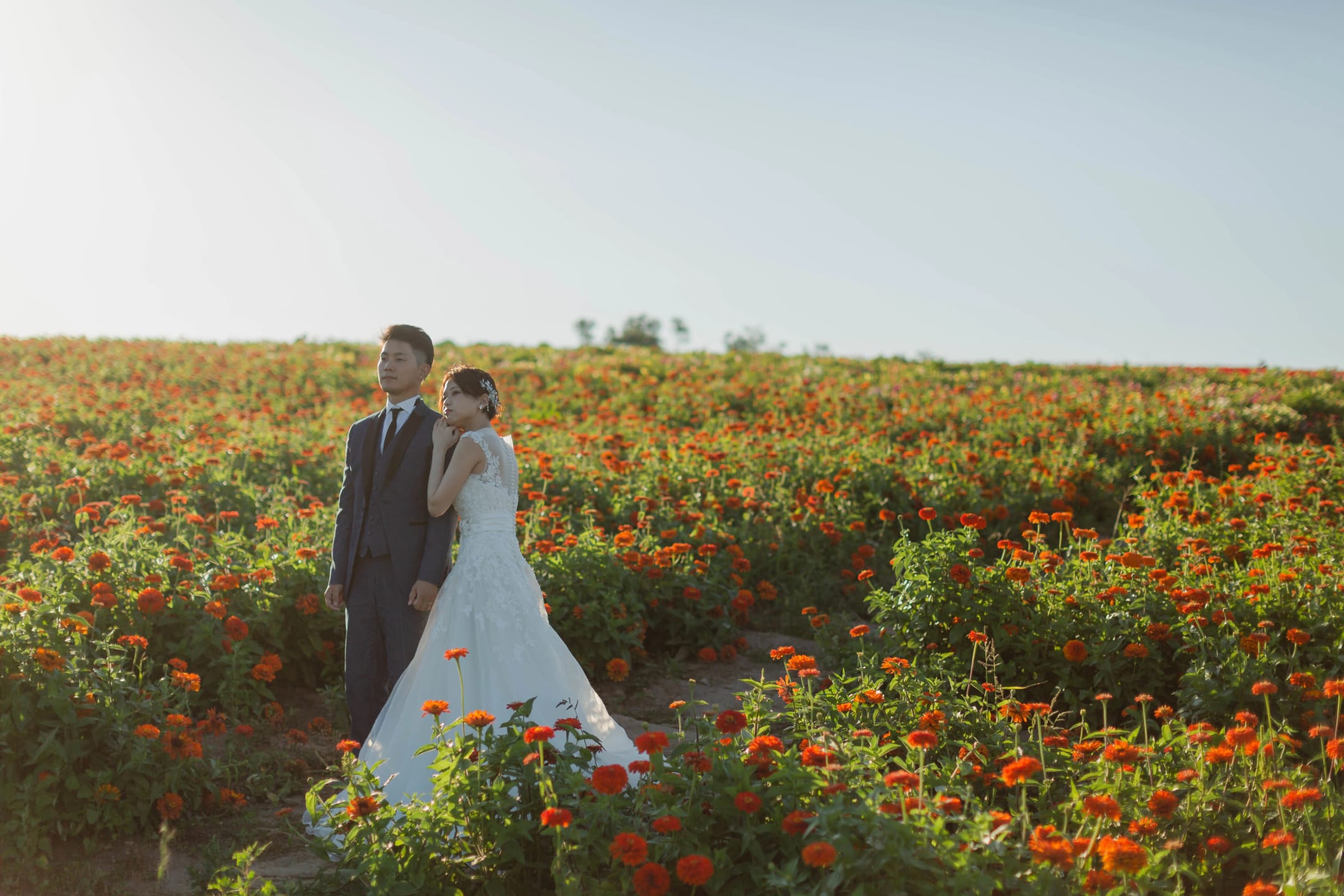 花卉種類繁多的花園,非常適合追求繽紛背景的新人。自然光與色彩對比能拍出印象深刻的一張。
