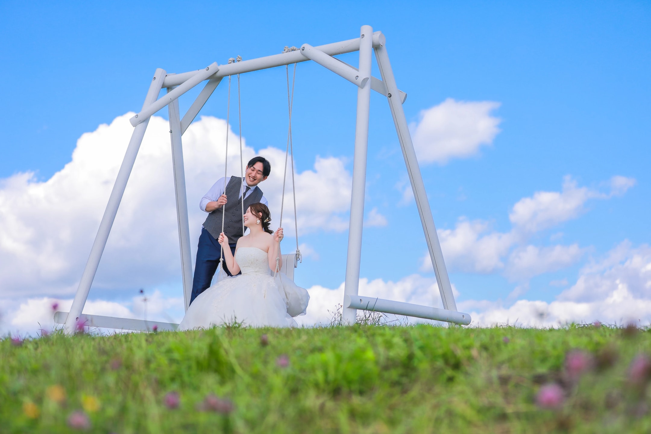 整片花田如調色盤般鮮豔,是熱門景點。花田與丘陵地形相互融合,可呈現華麗且具有戲劇性的婚紗照。
