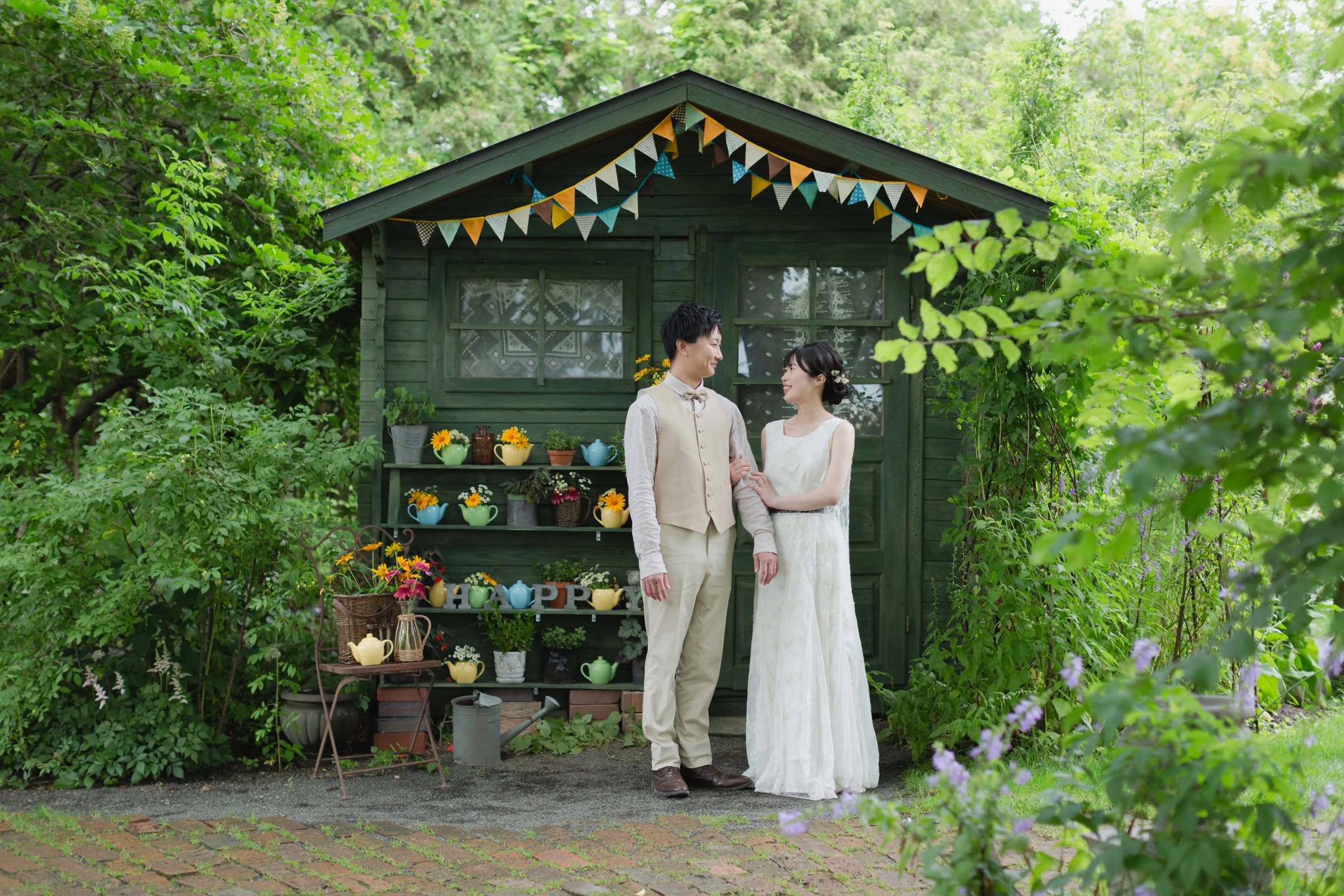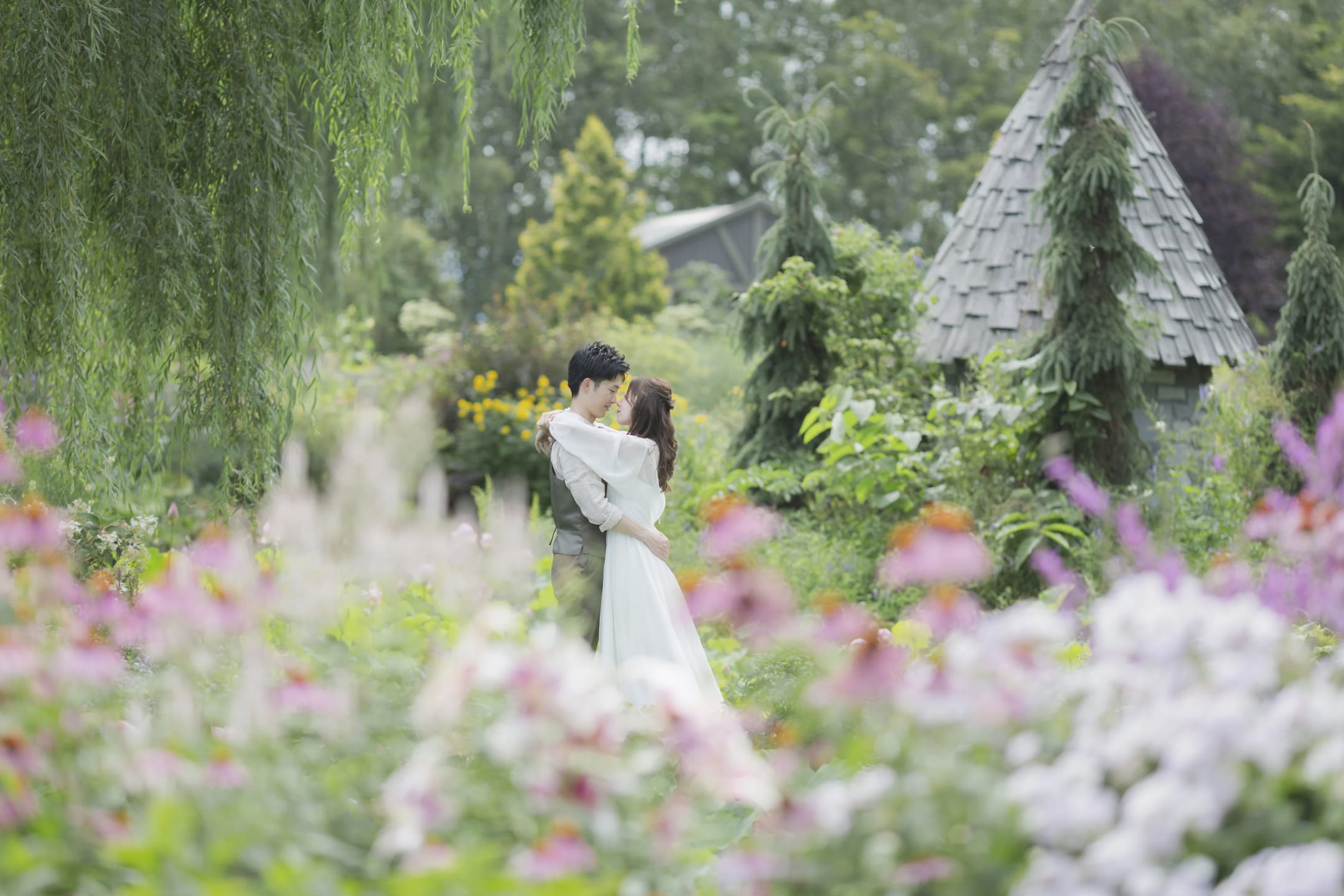 被英國風花園包圍的場景,四季色彩不同,能拍攝出具有故事性的婚紗照片。