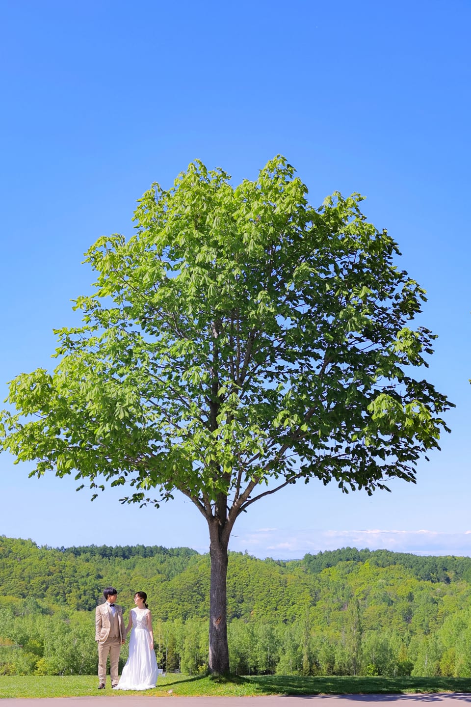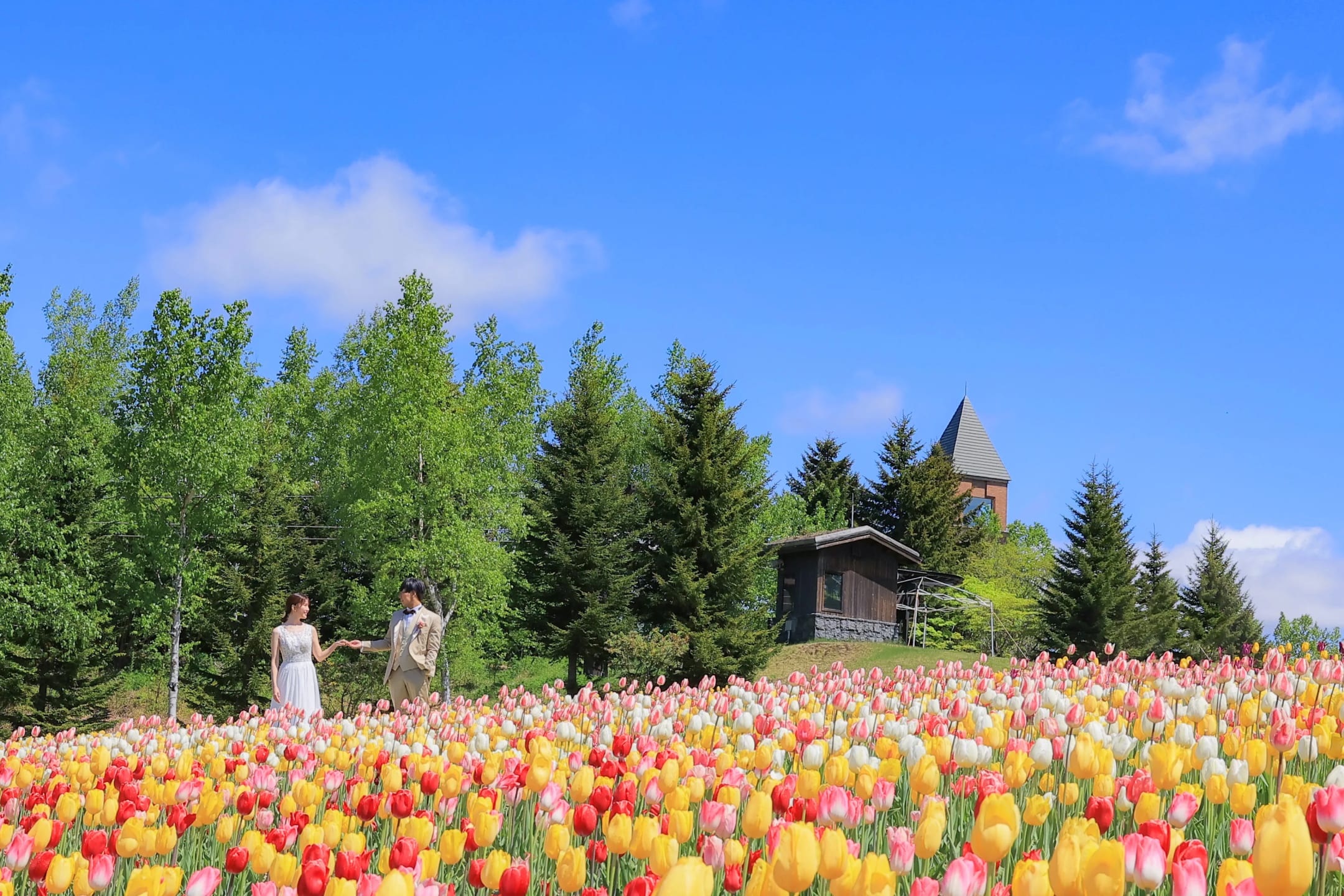 夏季北海道的薰衣草花田,以一片紫色景觀象徵浪漫。花香與柔光中,可拍出富季節感的清爽婚紗照。