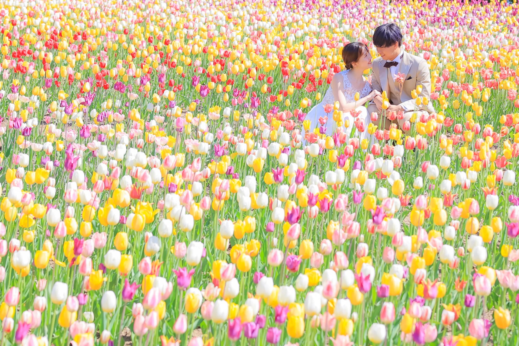 整片花田如調色盤般鮮豔,是熱門景點。花田與丘陵地形相互融合,可呈現華麗且具有戲劇性的婚紗照。