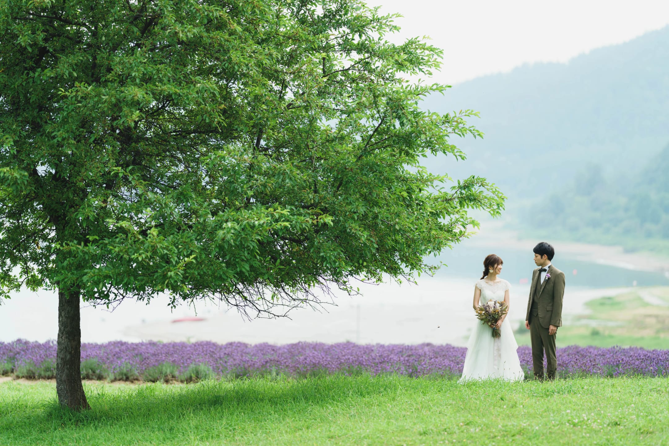 夏季北海道的薰衣草花田,以一片紫色景觀象徵浪漫。花香與柔光中,可拍出富季節感的清爽婚紗照。