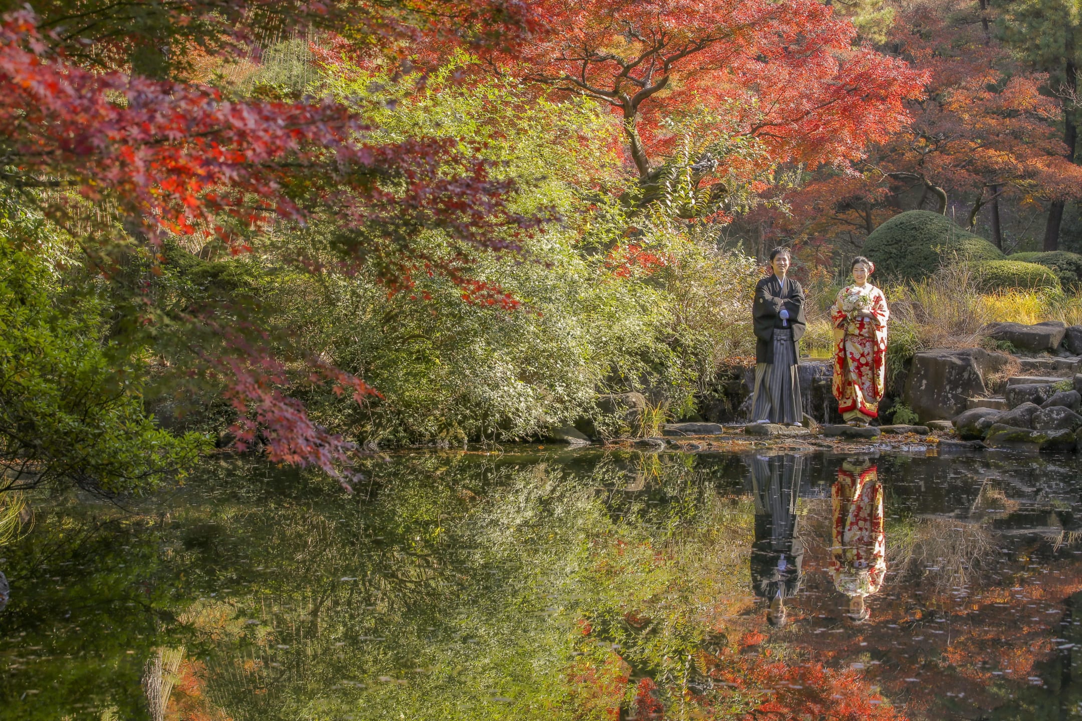 甘泉園以池畔、橋梁與四季植栽構成的日式庭園聞名。靜謐的水邊氛圍與傳統美感非常適合和服拍攝,能呈現沉穩優雅的作品。