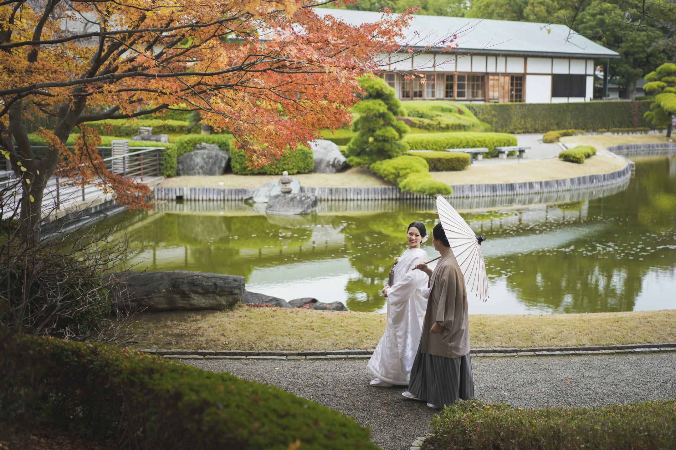 花田苑以豐富花木構成的庭園聞名,可利用多彩景觀作為背景。季節花卉使婚紗照更加華麗,並以自然光與色彩形成鮮明的對比。