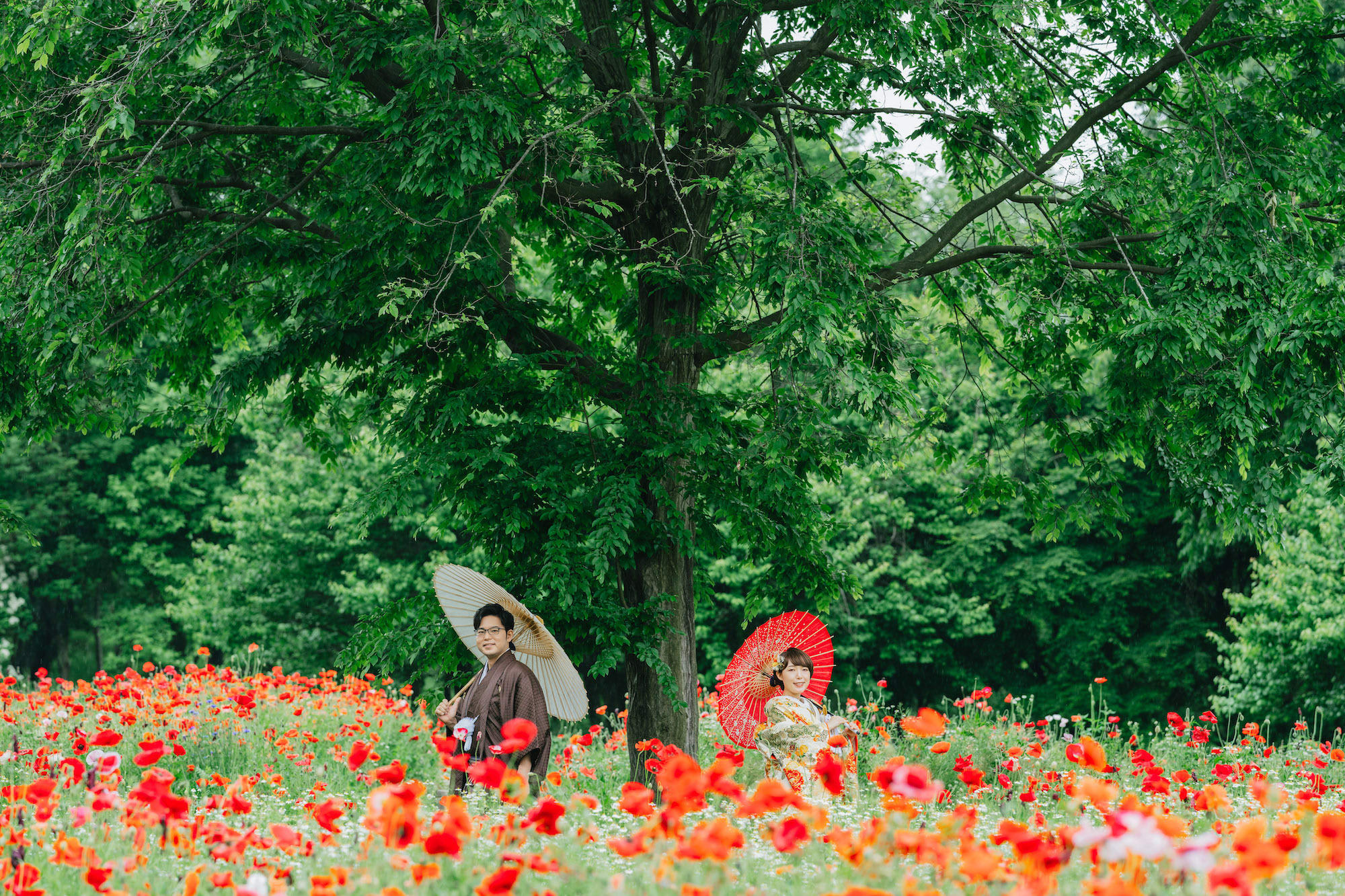 昭和紀念公園擁有四季變化的自然與廣闊草地。從春櫻、夏綠、秋楓到冬雪,都能在柔和光線下拍出具季節感的婚紗照。
