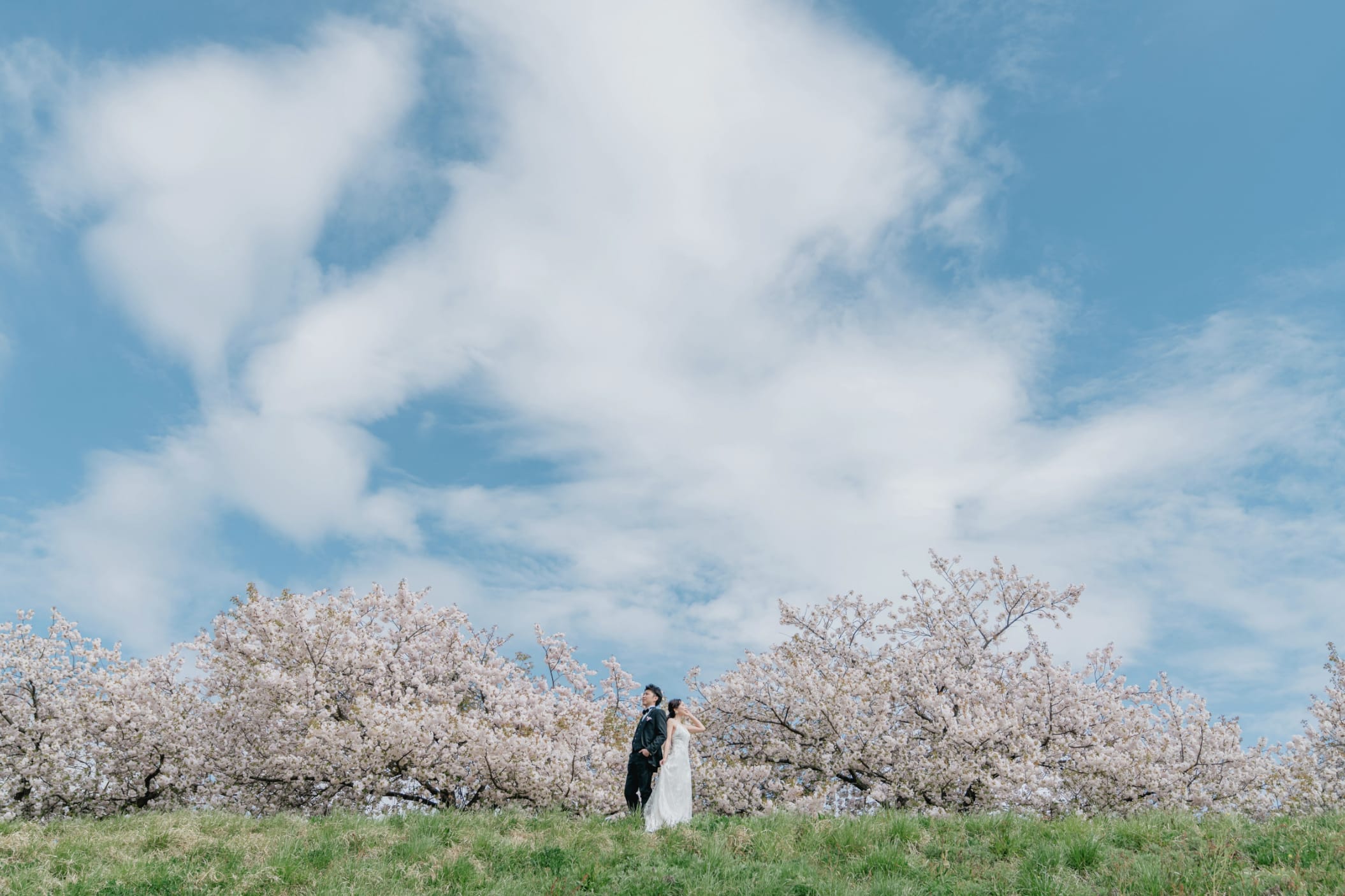 飯綱山周邊以高地視角的全景風光著稱,可將群山與天空大範圍納入背景,拍攝動感而壯闊的婚紗預拍。利用雄偉自然的開放感構圖,特別推薦給希望留下極具印象照片的新人。