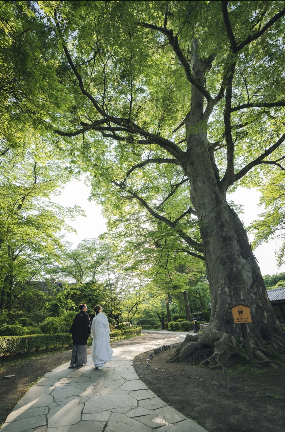 飯綱山周邊以高地視角的全景風光著稱,可將群山與天空大範圍納入背景,拍攝動感而壯闊的婚紗預拍。利用雄偉自然的開放感構圖,特別推薦給希望留下極具印象照片的新人。