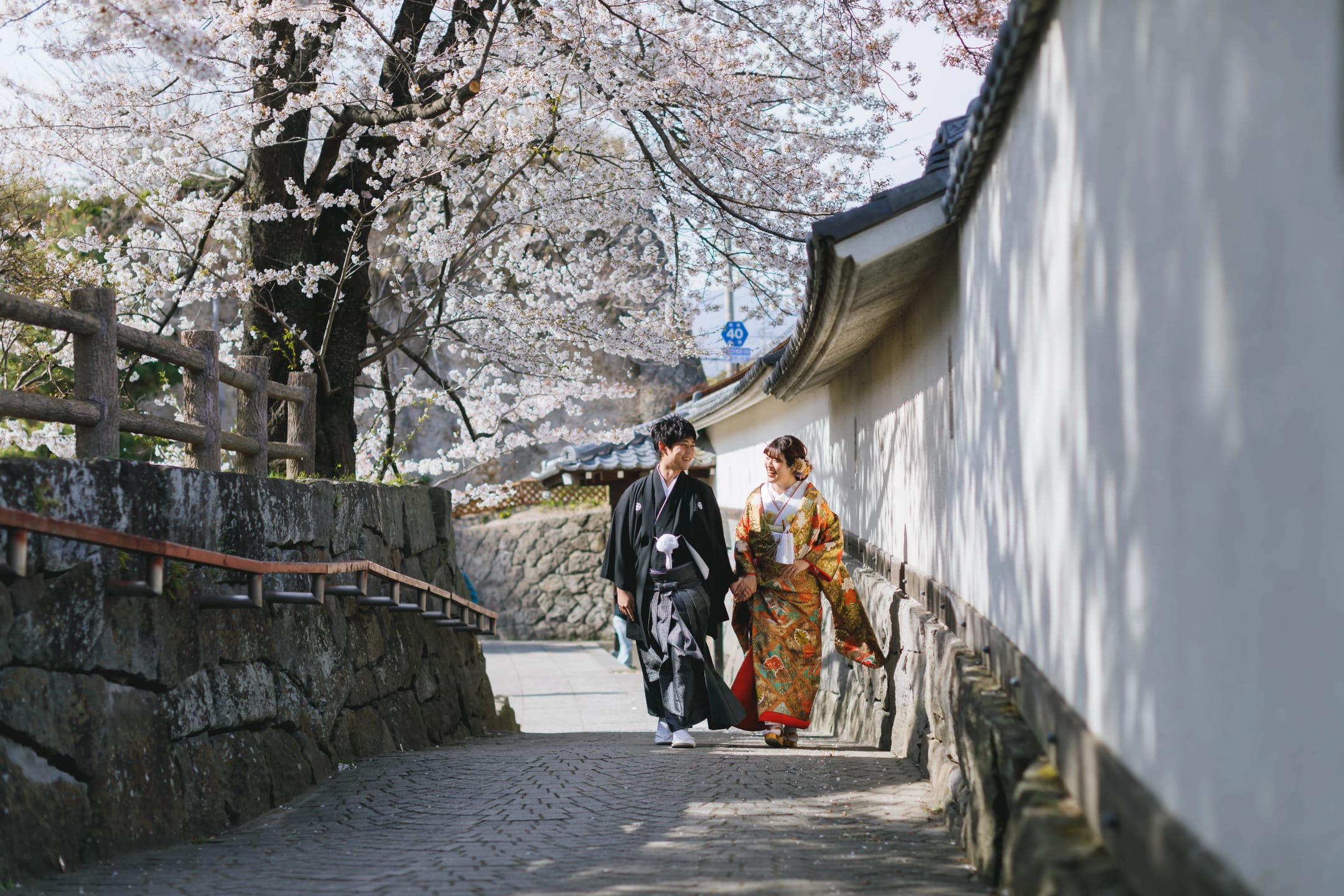 保留古色古香街景的小布施町,是歷史與文化融入背景的預拍景點。利用石板小徑與傳統建築取景,可呈現無論和服或禮服皆相稱的富有情調的照片。