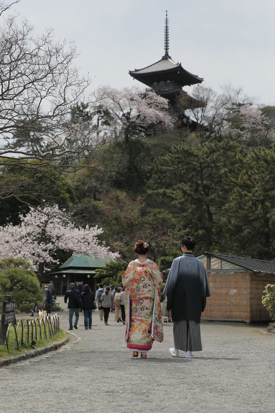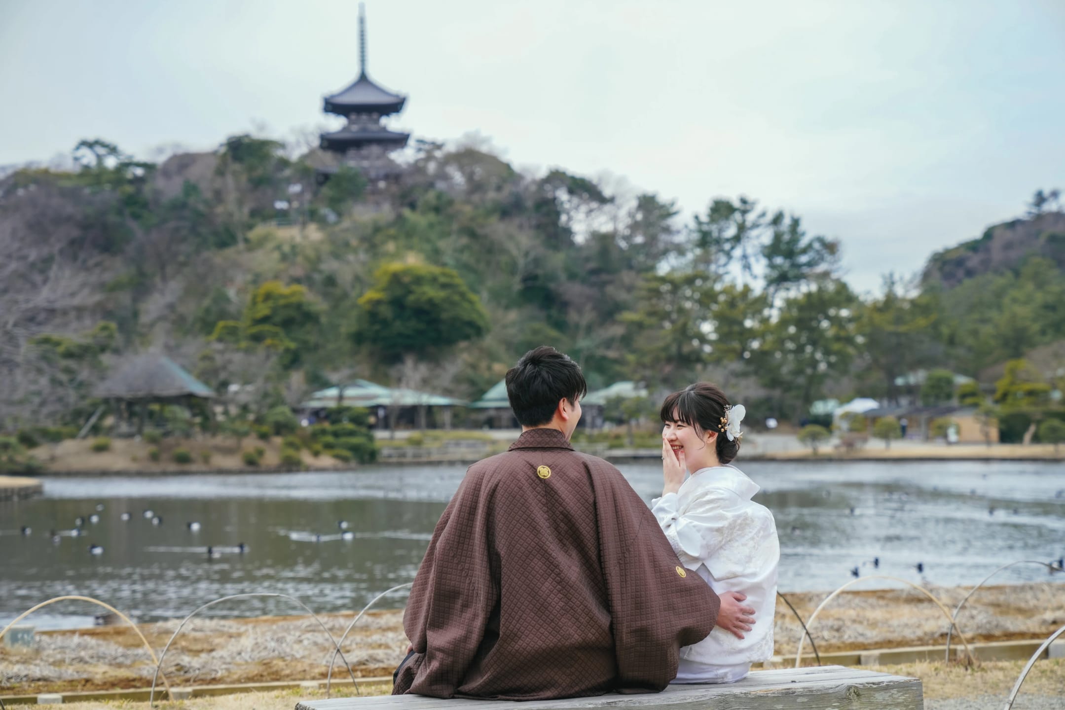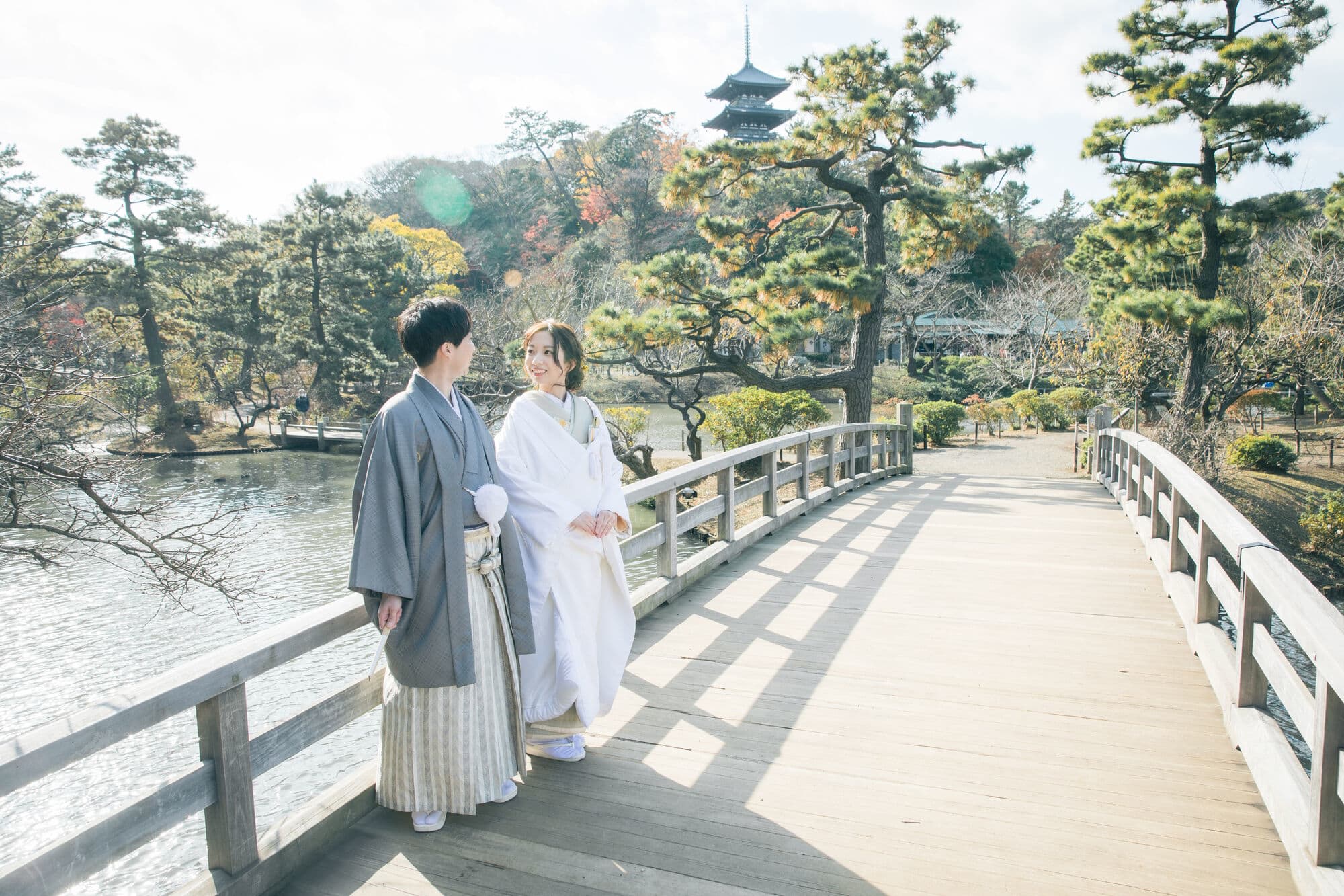 三溪園是日本庭園與歷史建築結合的文化名園。池泉、老松隨四季呈現變化,能拍攝和裝洋裝皆相宜的雅緻影像。