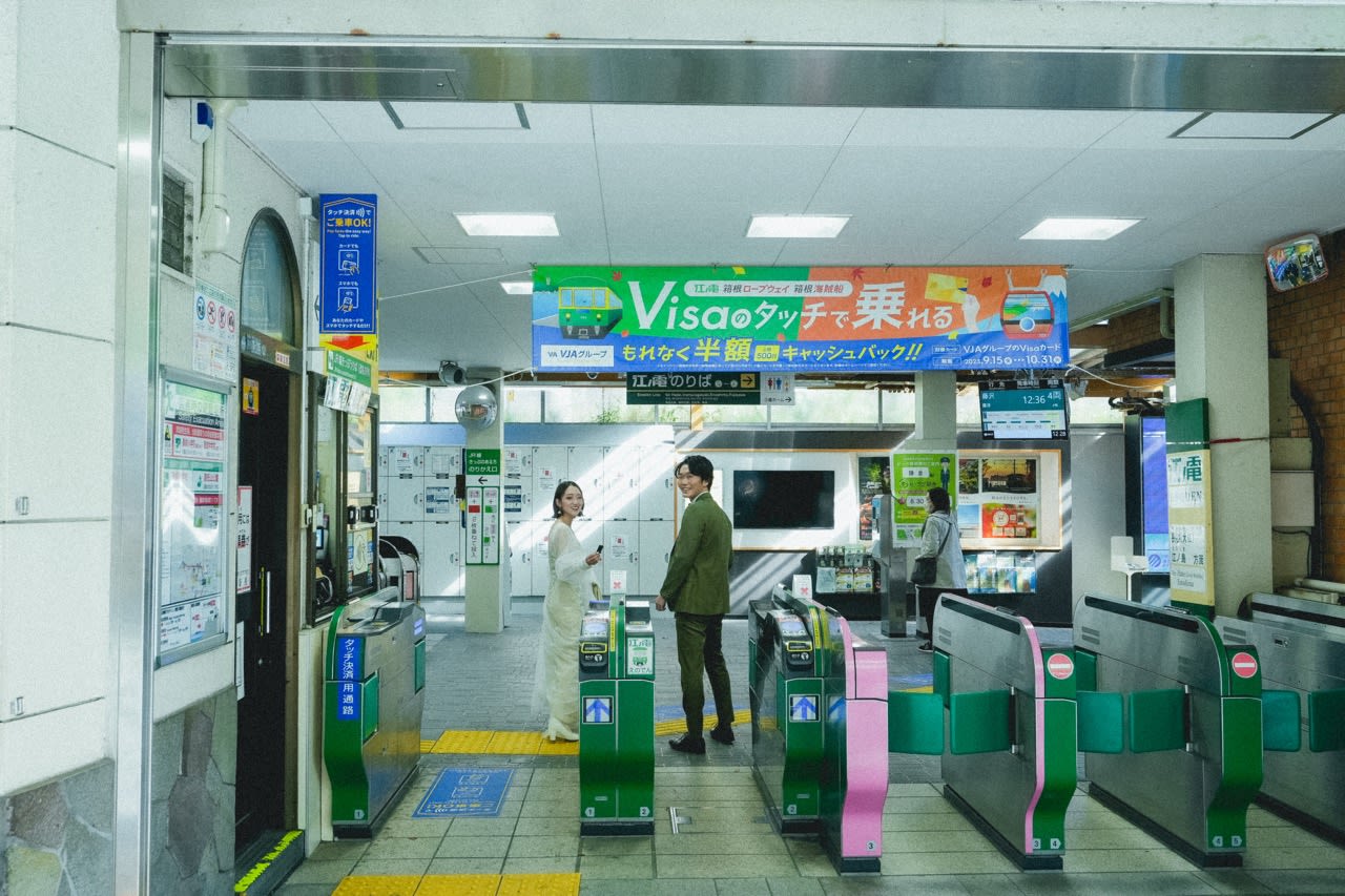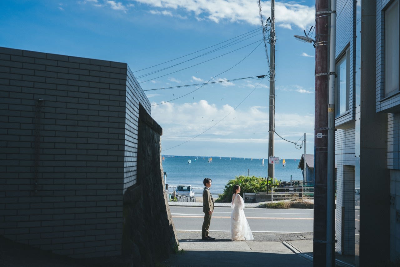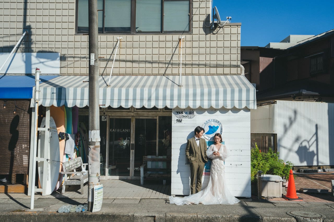 鎌倉湘南街道的景色有著濃厚的夏日氣息,除了可以到湘南海岸拍攝外,還有著名的江ノ電電車。 在擁有魅力的街道,時尚的咖啡店,拍攝出帶有生活感的婚照。