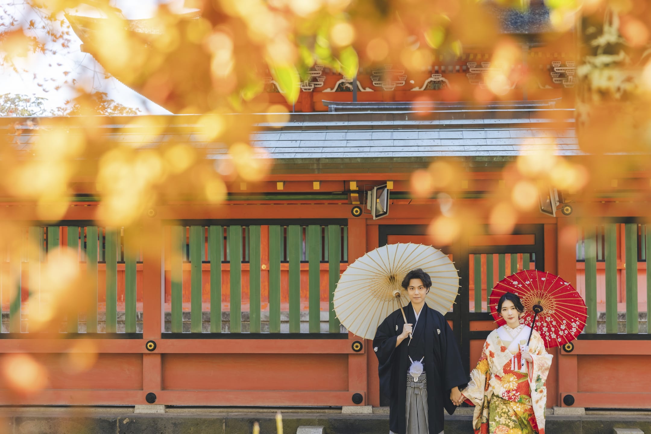 新倉山淺間神社以能眺望富士山的絕景而聞名。利用五重塔與山勢對比的構圖,能拍攝出和裝、洋裝皆具優雅與藝術感的預拍照片,與季節天空的變化亦相得益彰。