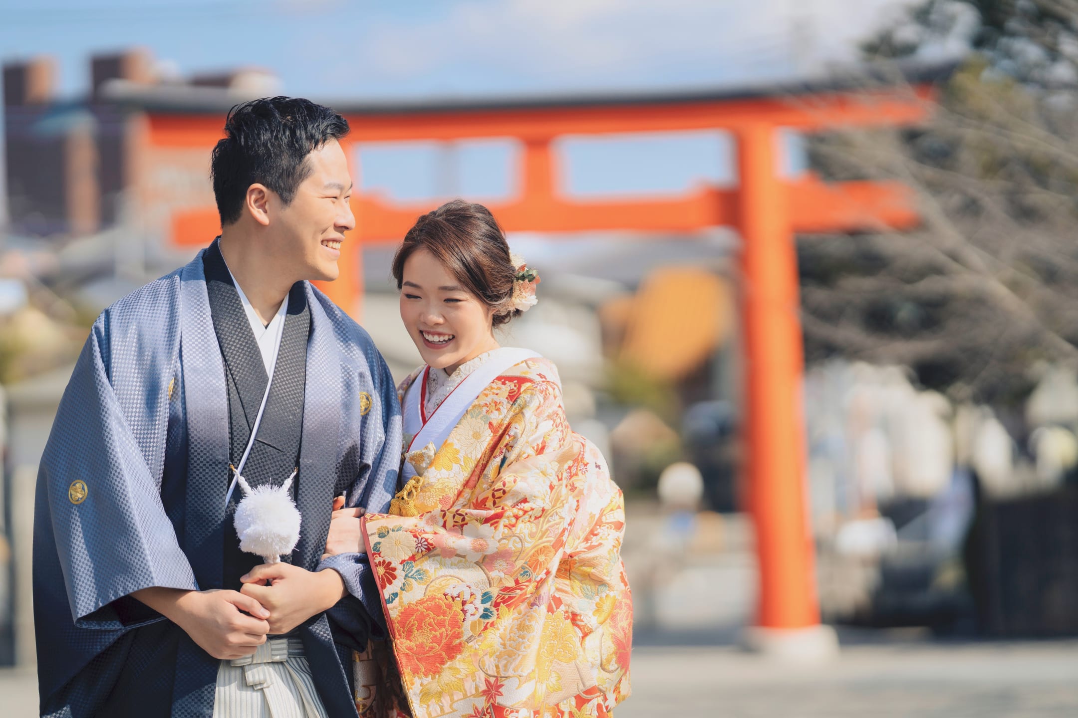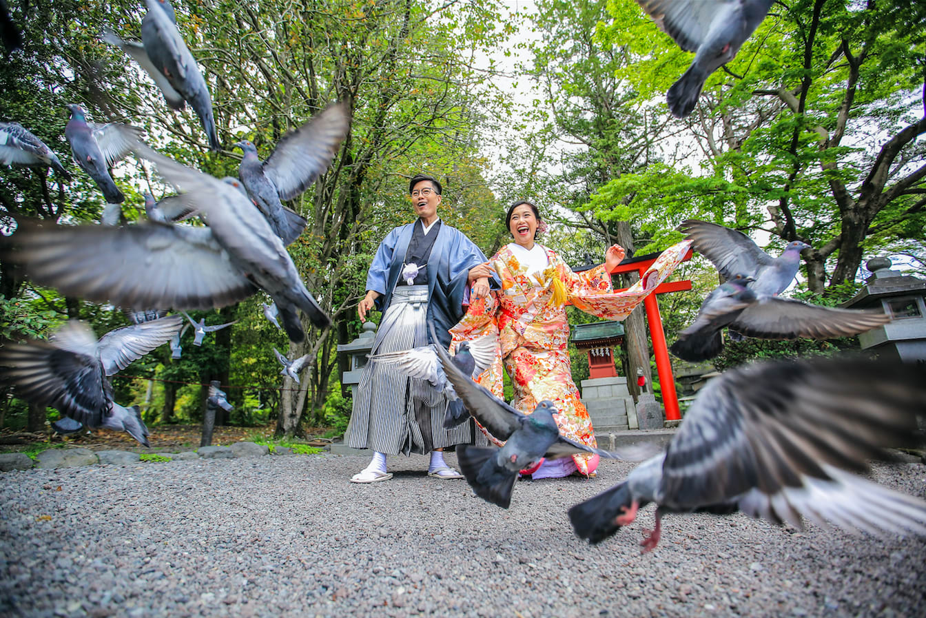 新倉山淺間神社以能眺望富士山的絕景而聞名。利用五重塔與山勢對比的構圖,能拍攝出和裝、洋裝皆具優雅與藝術感的預拍照片,與季節天空的變化亦相得益彰。
