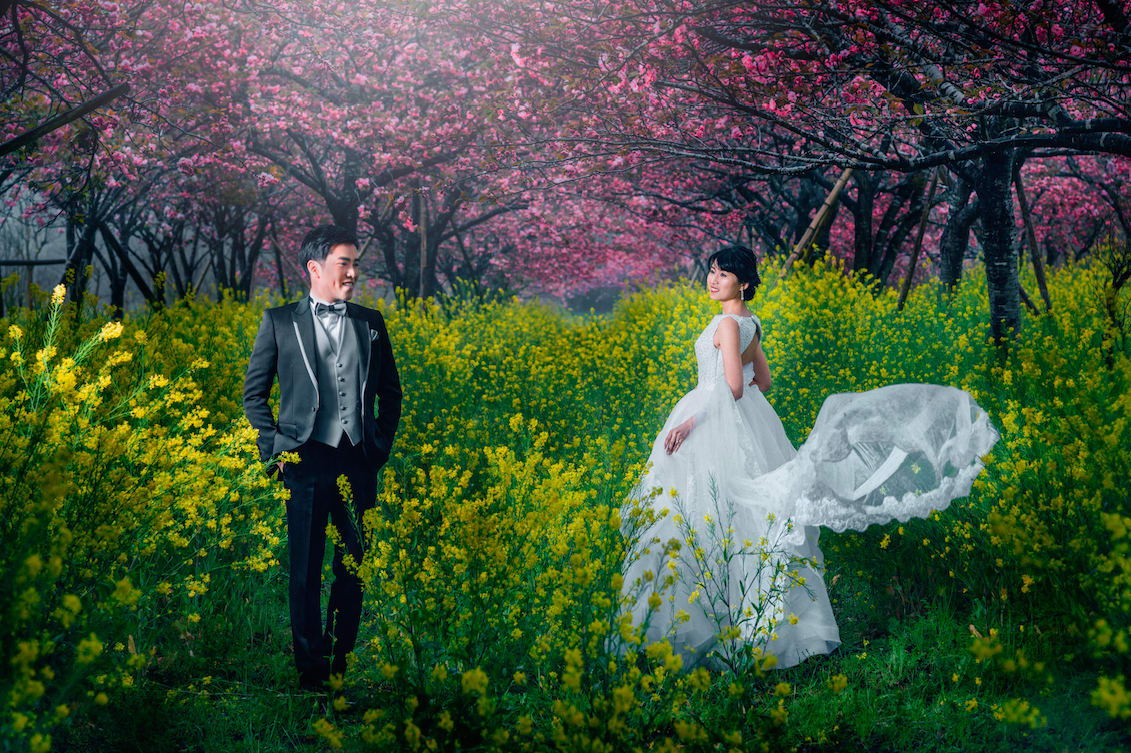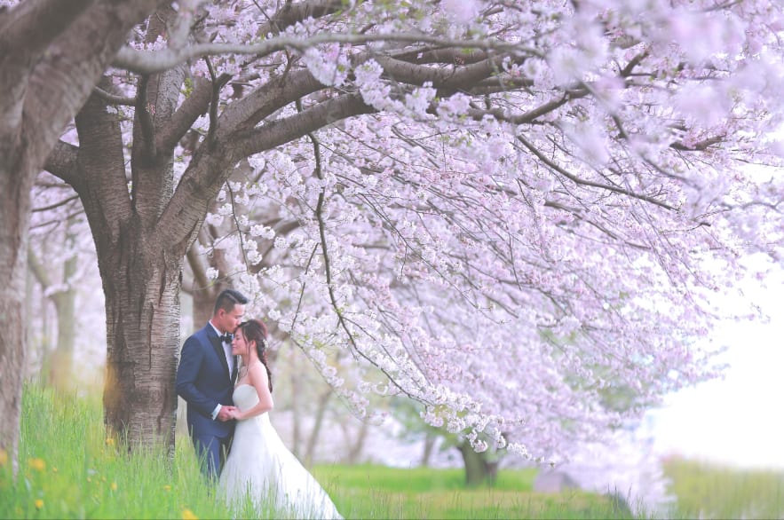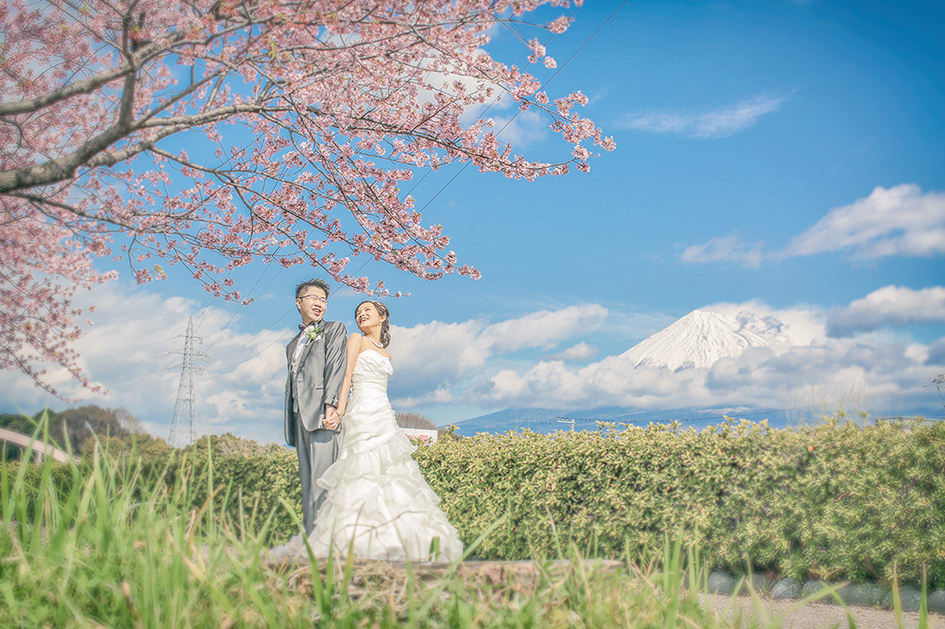 新倉山淺間神社以能眺望富士山的絕景而聞名。利用五重塔與山勢對比的構圖,能拍攝出和裝、洋裝皆具優雅與藝術感的預拍照片,與季節天空的變化亦相得益彰。