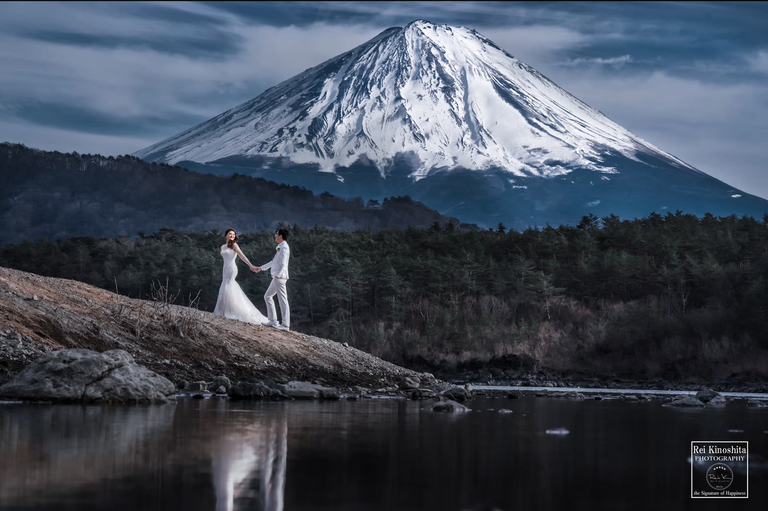 在富士山山麓進行騎馬拍攝,是能展現動態的特色預拍。廣袤大地與富士山背景營造出開放感,能捕捉新人自然的表情,形成充滿張力的照片。