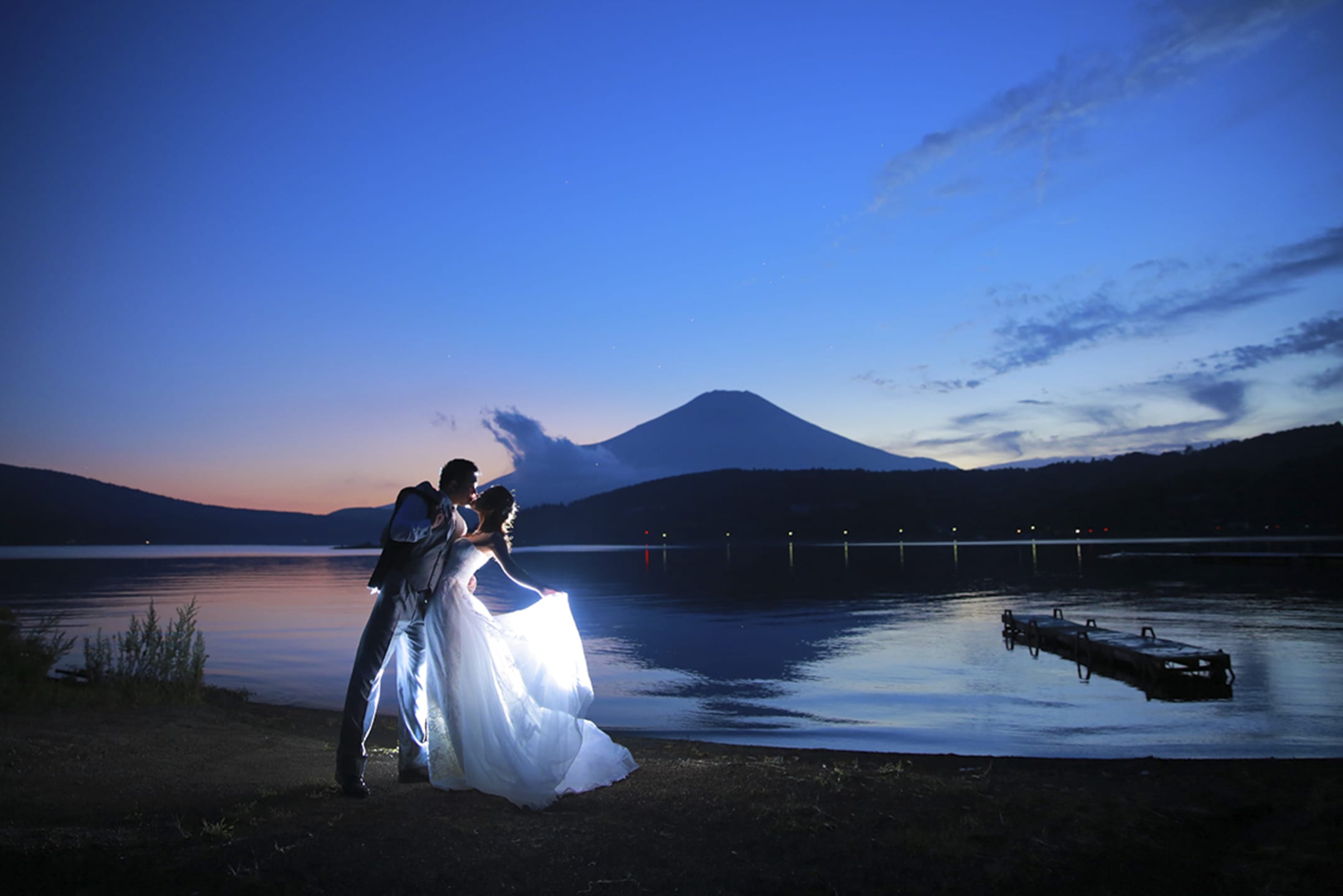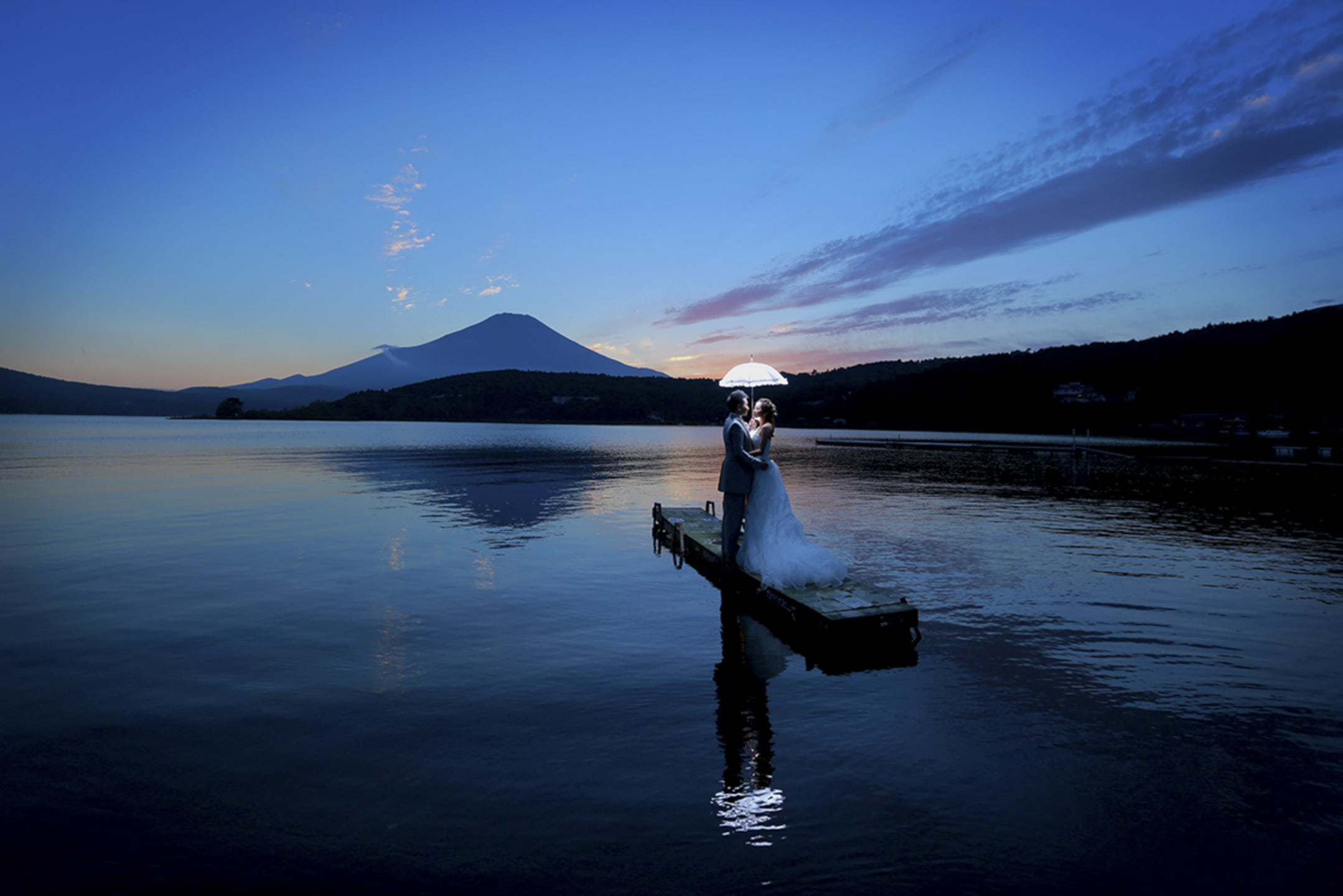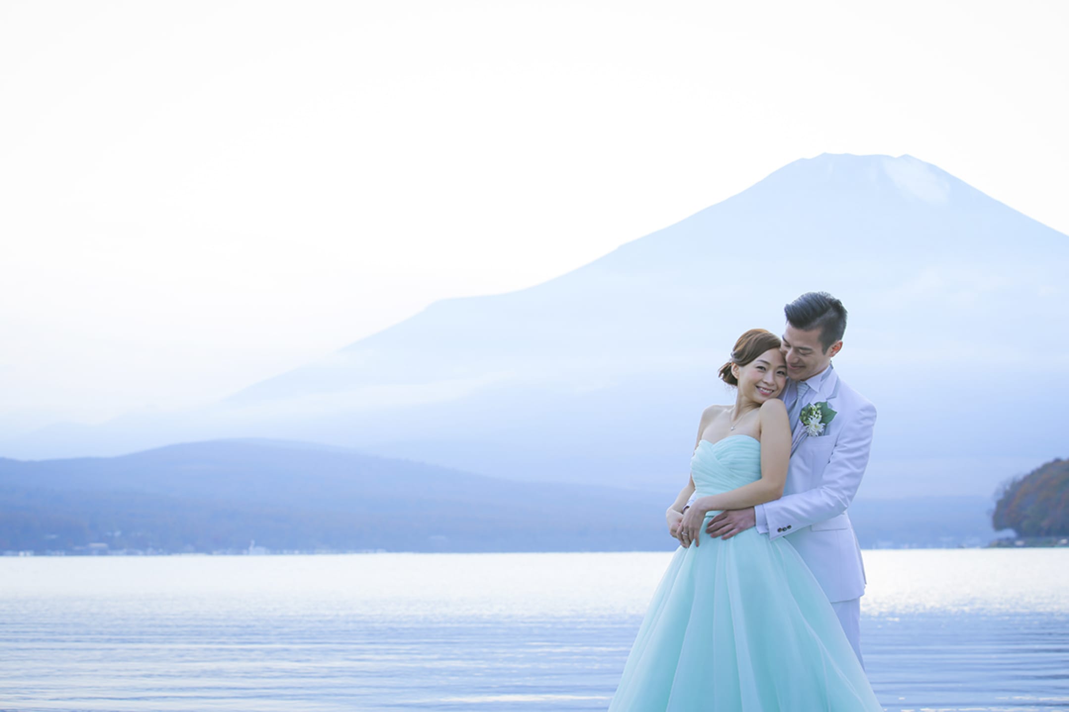 在富士山山麓進行騎馬拍攝,是能展現動態的特色預拍。廣袤大地與富士山背景營造出開放感,能捕捉新人自然的表情,形成充滿張力的照片。