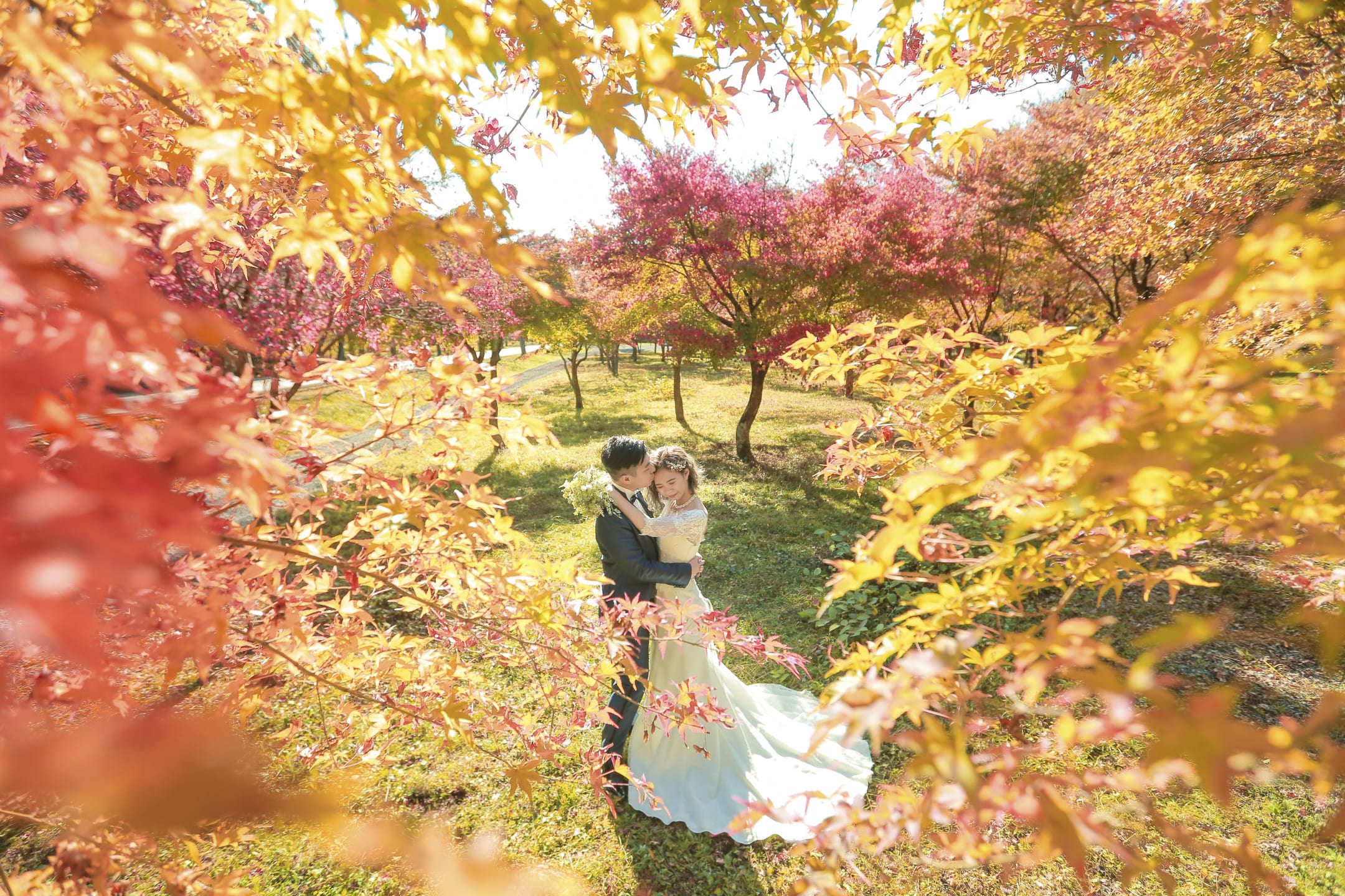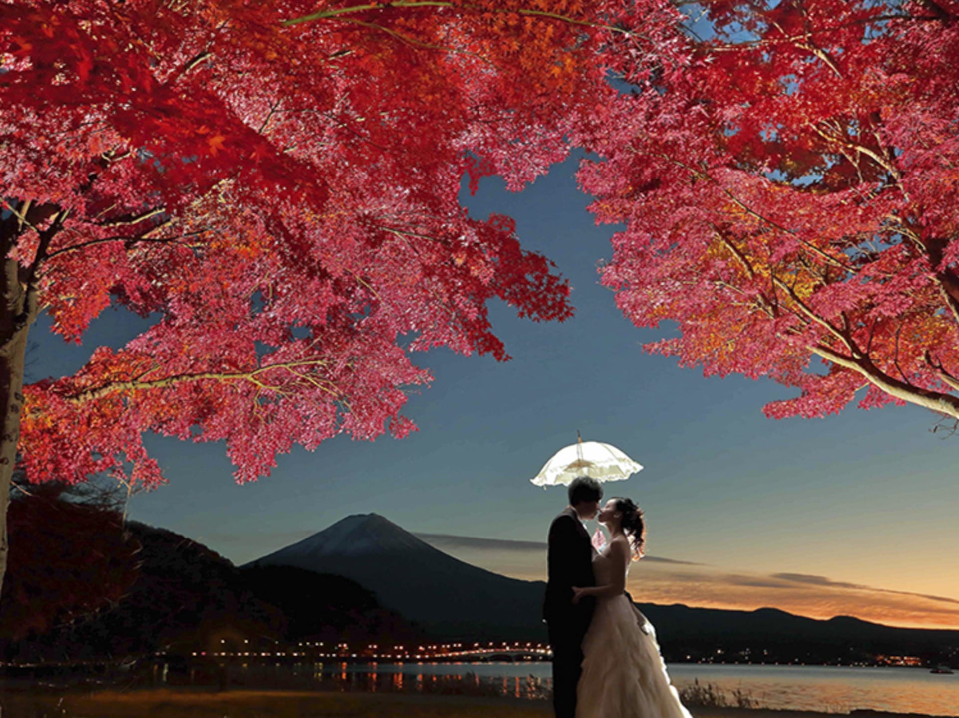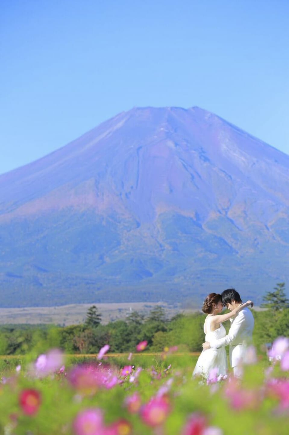 新倉山淺間神社以能眺望富士山的絕景而聞名。利用五重塔與山勢對比的構圖,能拍攝出和裝、洋裝皆具優雅與藝術感的預拍照片,與季節天空的變化亦相得益彰。