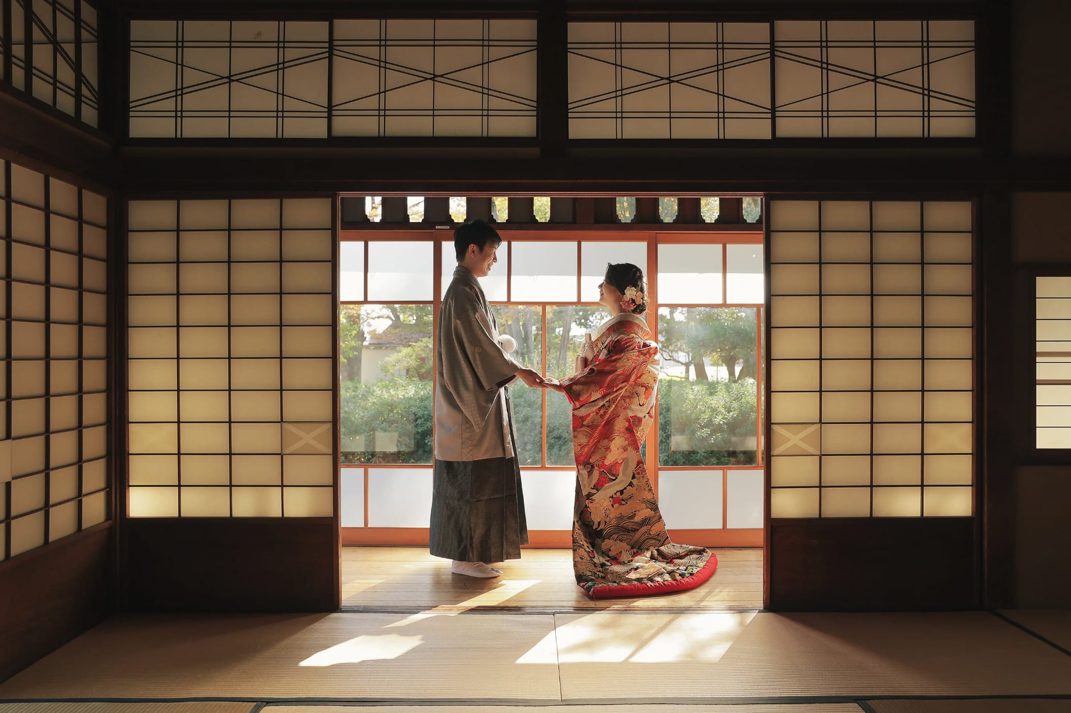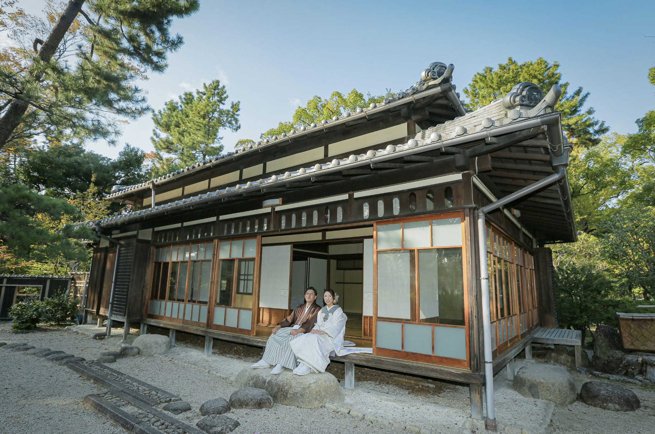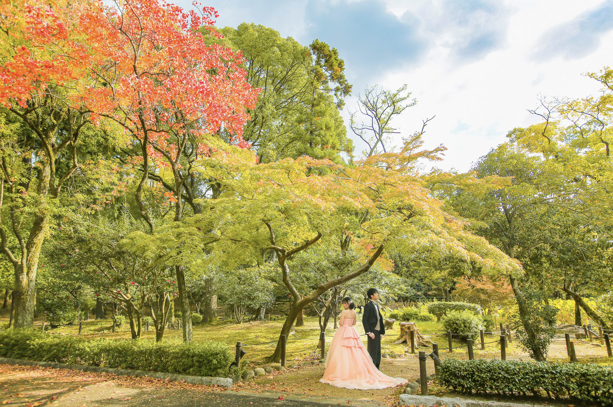 德川園是名古屋具代表性的高雅日式庭園,池泉、石橋與四季植栽交織出沉靜的景觀魅力。不僅適合和服,也能與禮服相得益彰,利用自然光拍攝出優雅的婚紗照片。