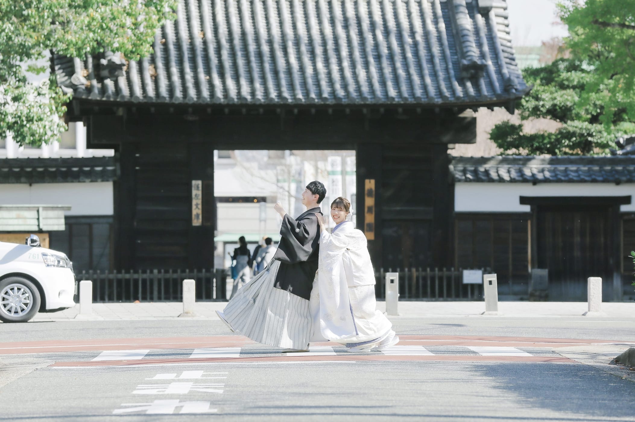 名古屋城以充滿歷史威嚴的天守閣與石牆為背景,是非常受歡迎的地點。城與公園的廣闊景色能呈現大器構圖,非常適合展現日本文化意象的婚紗攝影。