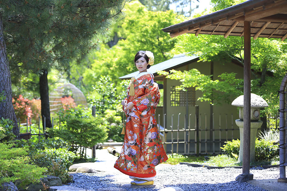 德川園是名古屋具代表性的高雅日式庭園,池泉、石橋與四季植栽交織出沉靜的景觀魅力。不僅適合和服,也能與禮服相得益彰,利用自然光拍攝出優雅的婚紗照片。