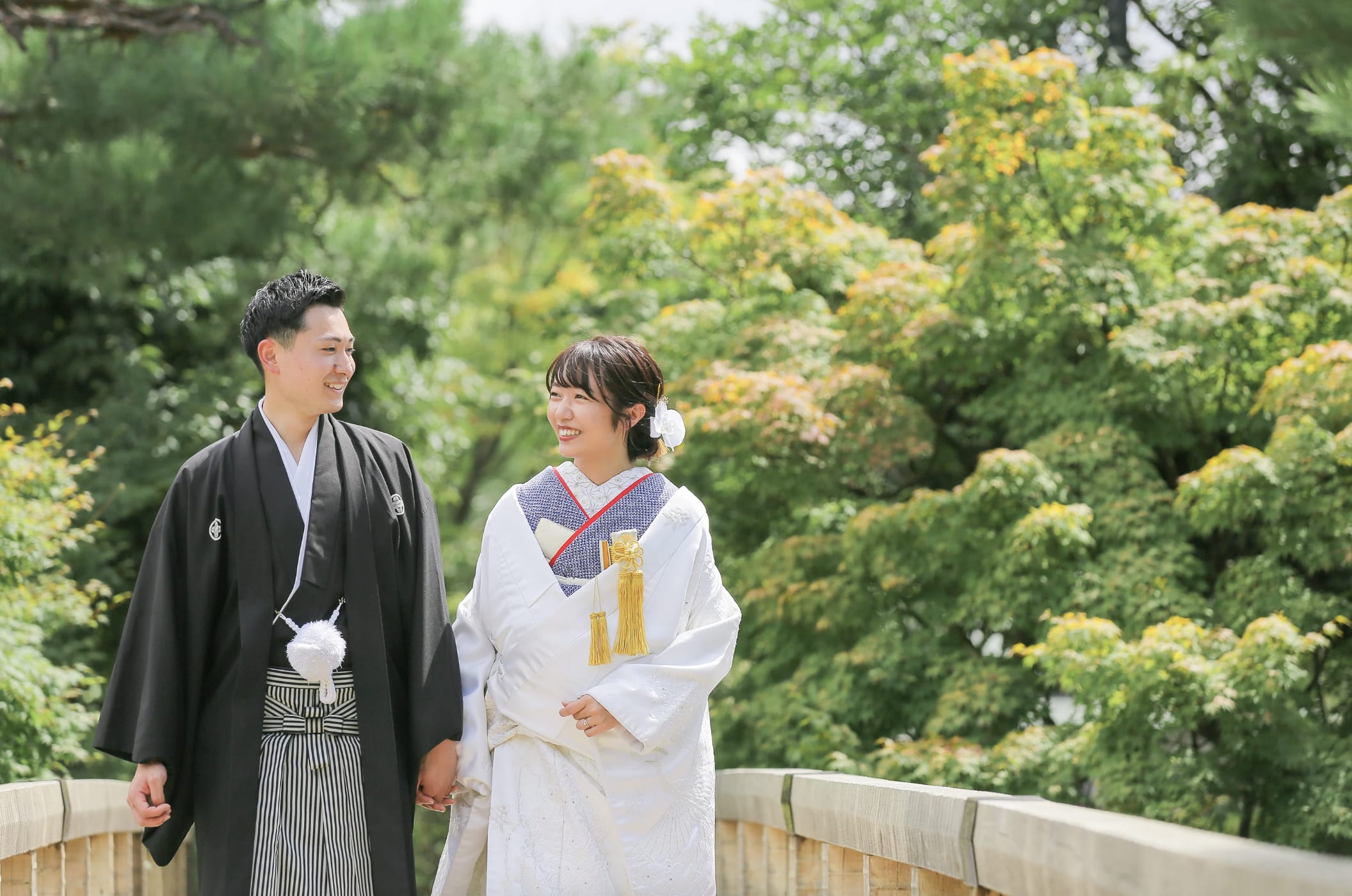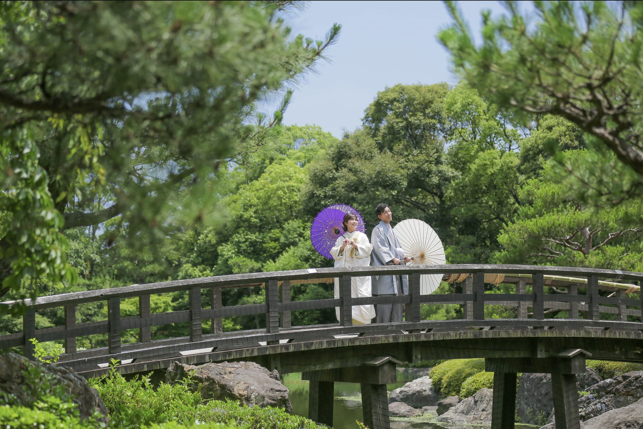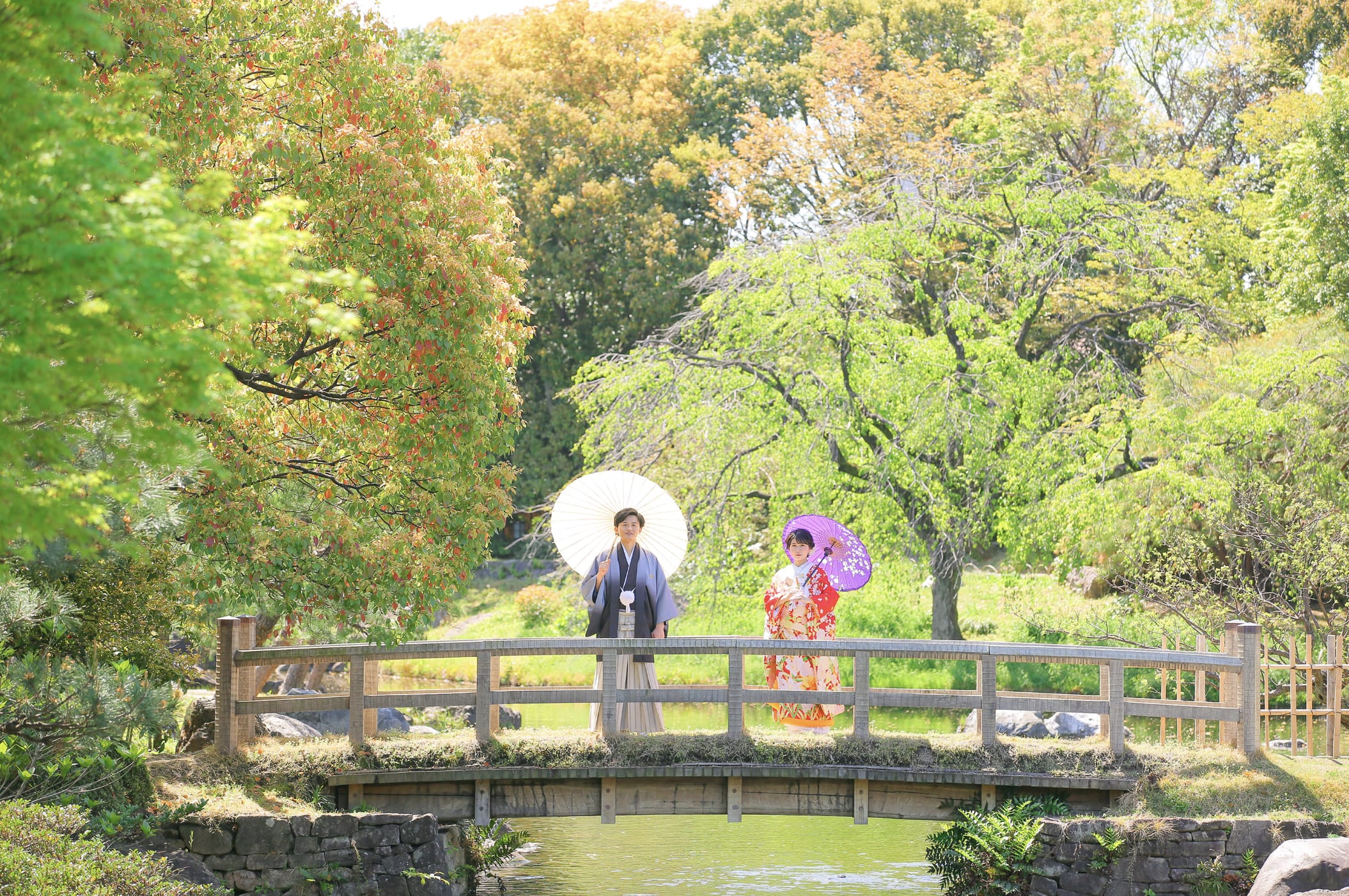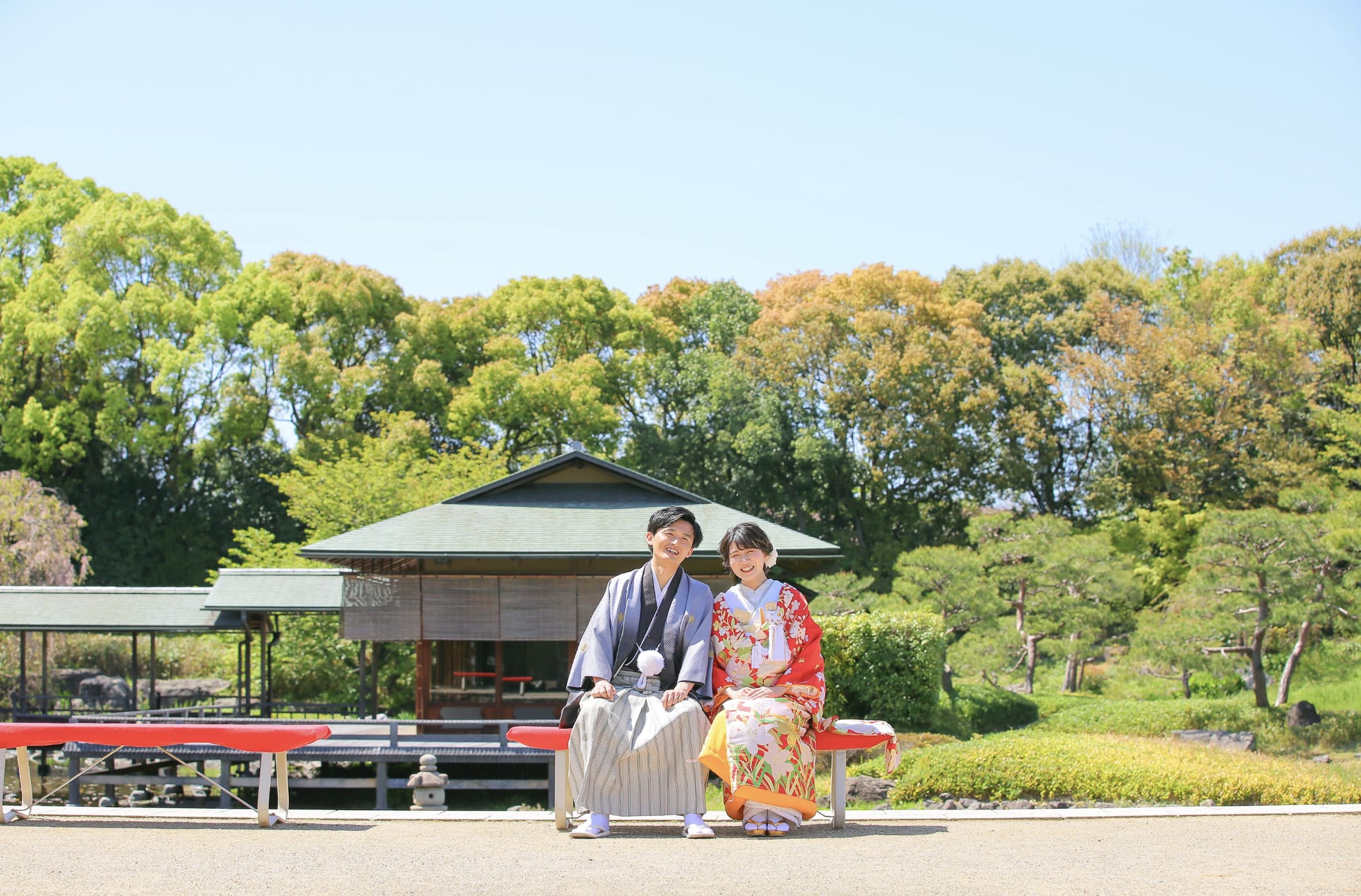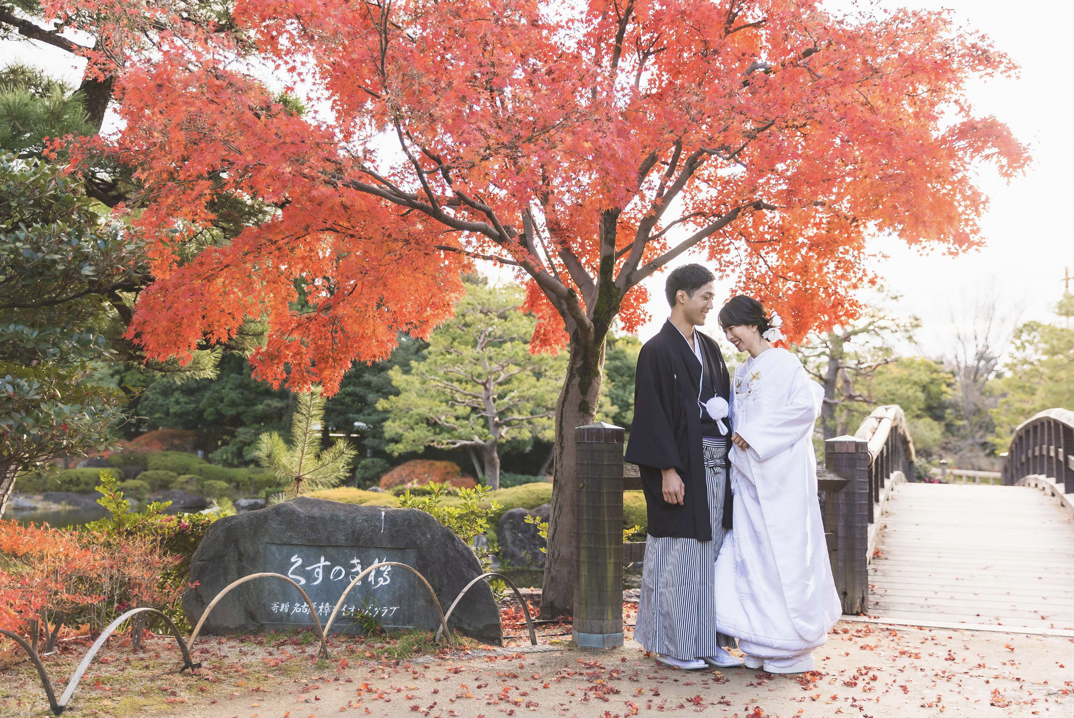 德川園是名古屋具代表性的高雅日式庭園,池泉、石橋與四季植栽交織出沉靜的景觀魅力。不僅適合和服,也能與禮服相得益彰,利用自然光拍攝出優雅的婚紗照片。