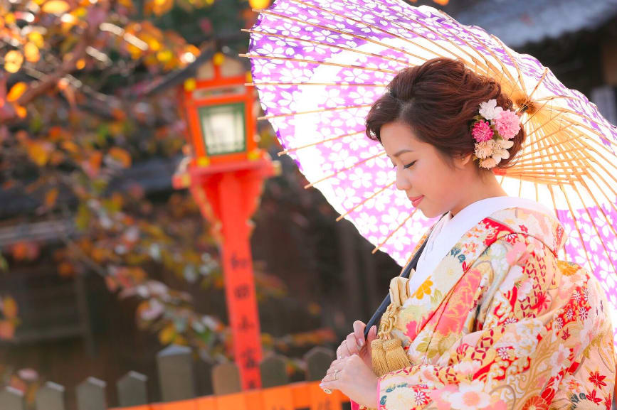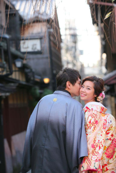 祗園擁有京都特有的石板小路與町家建築,充滿傳統風情。無論和服或洋裝,都能拍攝出展現古都情調的婚紗照。白川沿岸與巽橋周邊的景致四季皆美,是能捕捉優雅畫面的絕佳地點。