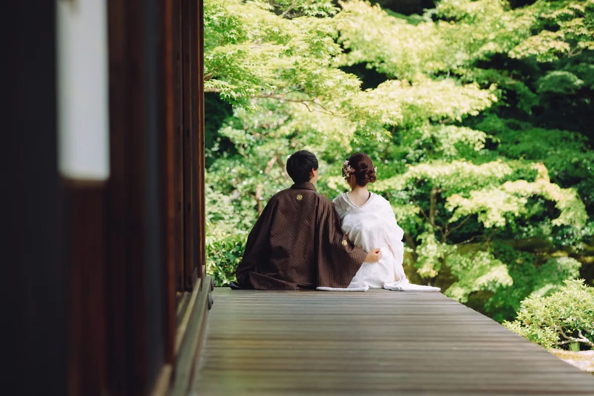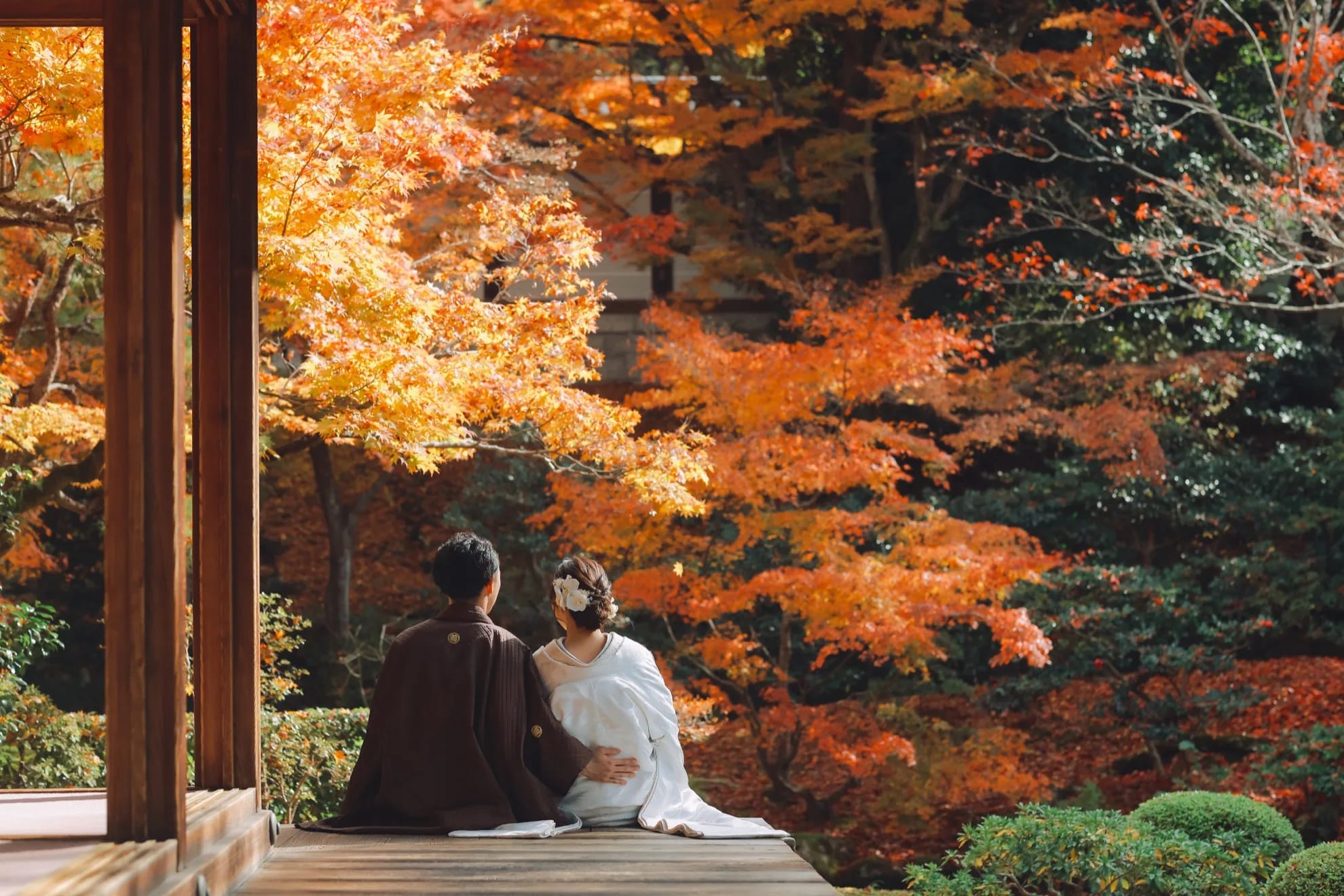嵐山的竹林步道以綠意隧道般的景觀著稱,是和服與洋裝皆適合的夢幻場景。隨著季節變化,光線的表情也不同,能拍出靜謐且自然的婚紗照。